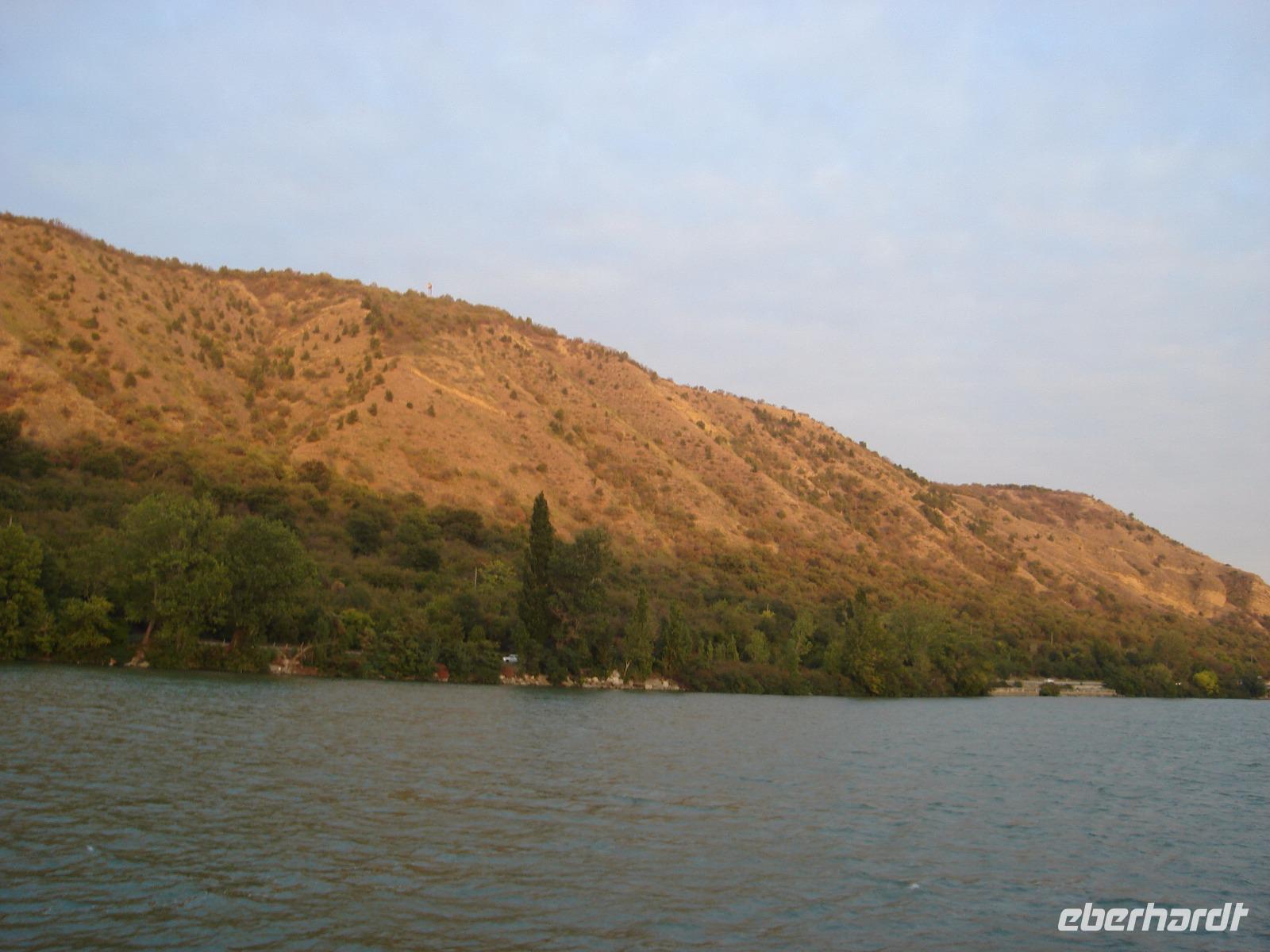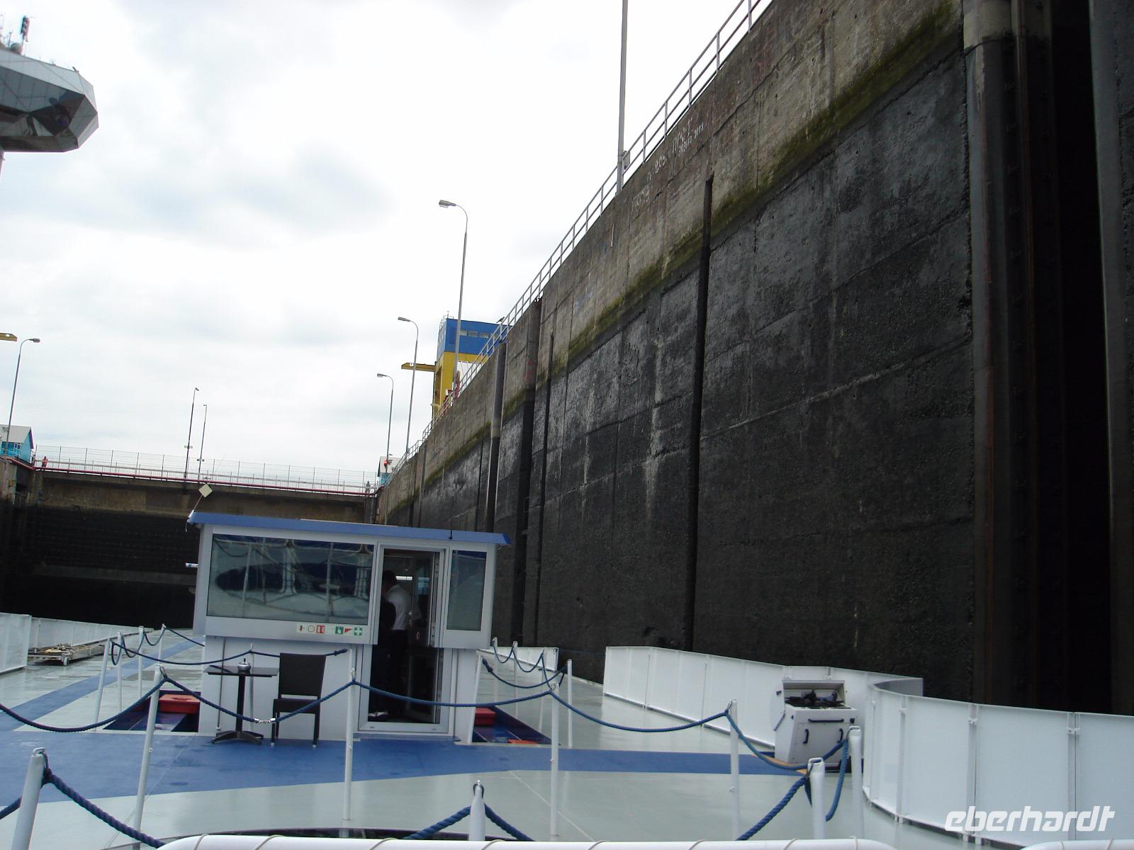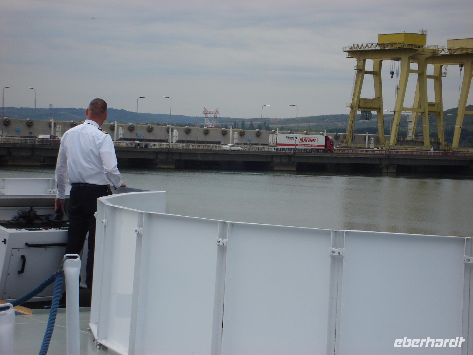 Am Vormittag gab es an Bord einen Balkanfrühschoppen. Wir passierten noch einmal die beiden Stauwerke Djerdap I und II. Das erste jugoslawisch-rumänische Gemeinschafts-Kraftwerk Eisernes Tor wurde von 1964 - 1972 errichtet. Dann folgte in den 90-er Jahren das zweite. Der Schleusungsvorgang dauerte eine Weile, dann ging die Reise weiter, und die Strecke der Katarakte nahm uns wieder gefangen.