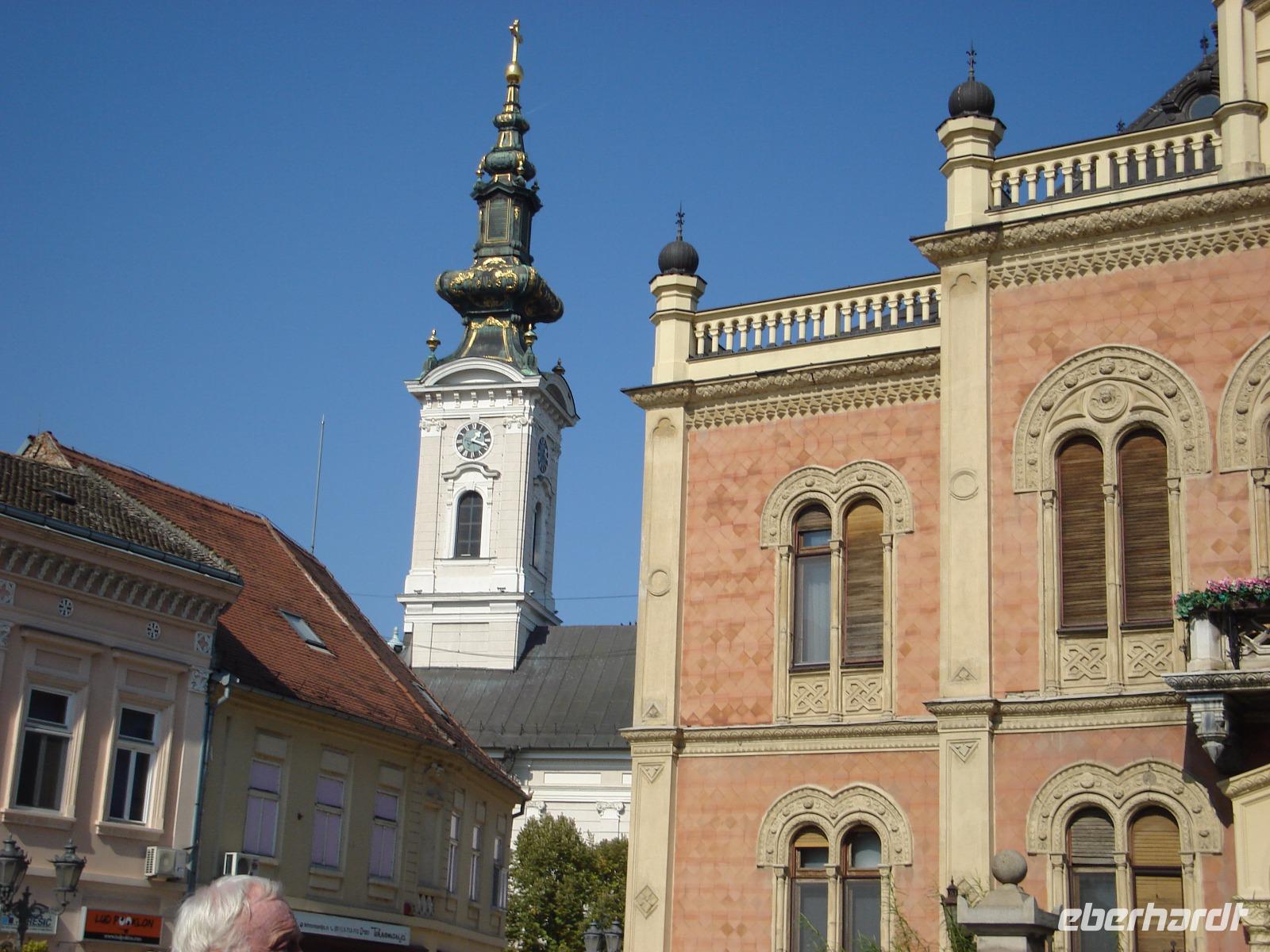 In Novi Sad begrüßte uns schon die berühmte Festung Petrovaradin [deutsch Peterwardein] über dem Ufer der Donau. Die Stilrichtungen, die uns in Novi Sad begegneten, sind vielfältig. Sie reichen von Barock über Neo-Gotik bis Neo-Klassizismus. Hier lebten auch die Donauschwaben. Wieder erfuhren wir viel aus alter und neuer Geschichte und natürlich aus der Gegenwart. Während des Krieges 1999 wurde Novi Sad stark bombardiert. Dabei wurden auch alle drei Donaubrücken zerstört und brachten den Schiffsverkehr auf der Donau für mehrere Jahre fast zum Erliegen. Seit 2005 sind alle Brücken wieder aufgebaut und für den Verkehr freigegeben. Nach Jahren des Neuaufbaus hat sich Novi Sad heute zu einer modernen Universitätsstadt entwickelt.