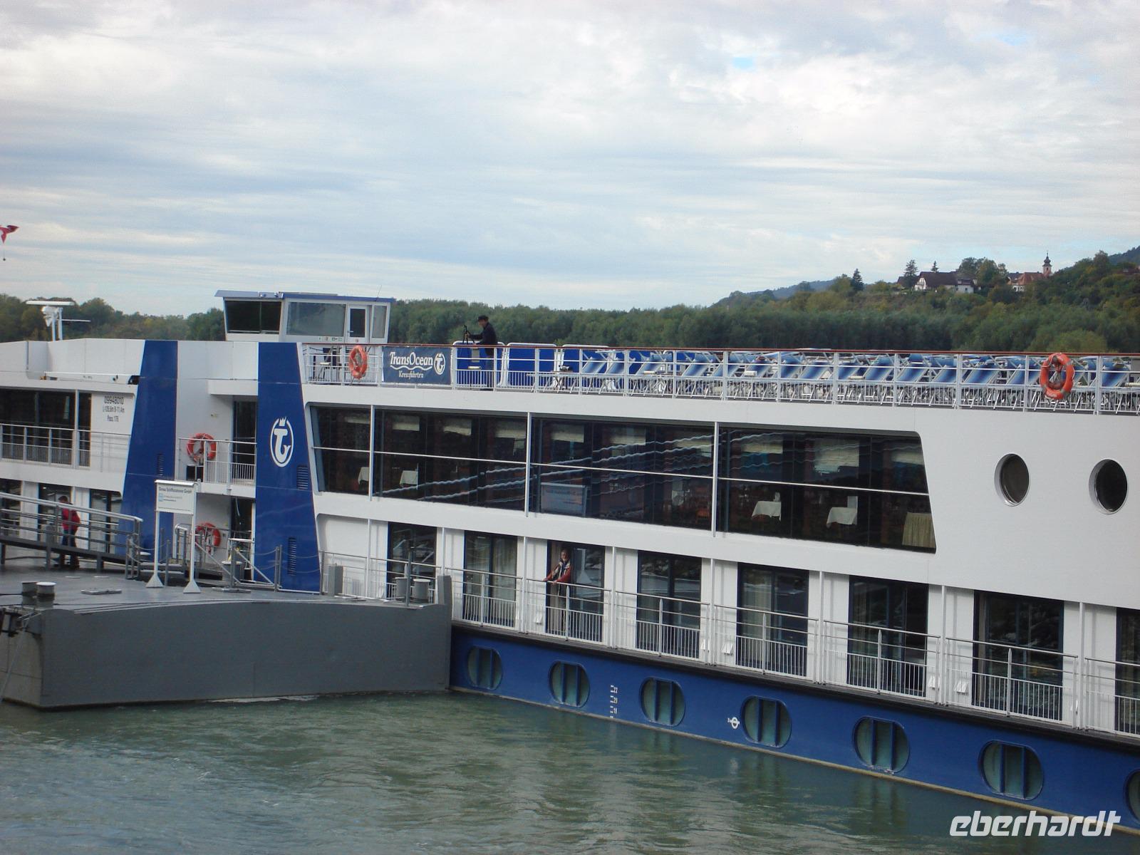 Wir starteten um 6.00 Uhr am Flughafen Dresden, und los ging es mit dem Bus in Richtung Passau. Bei allerhand Informationen, vor allem natürlich zu unserer Kreuzfahrt, verging die Zeit schnell.