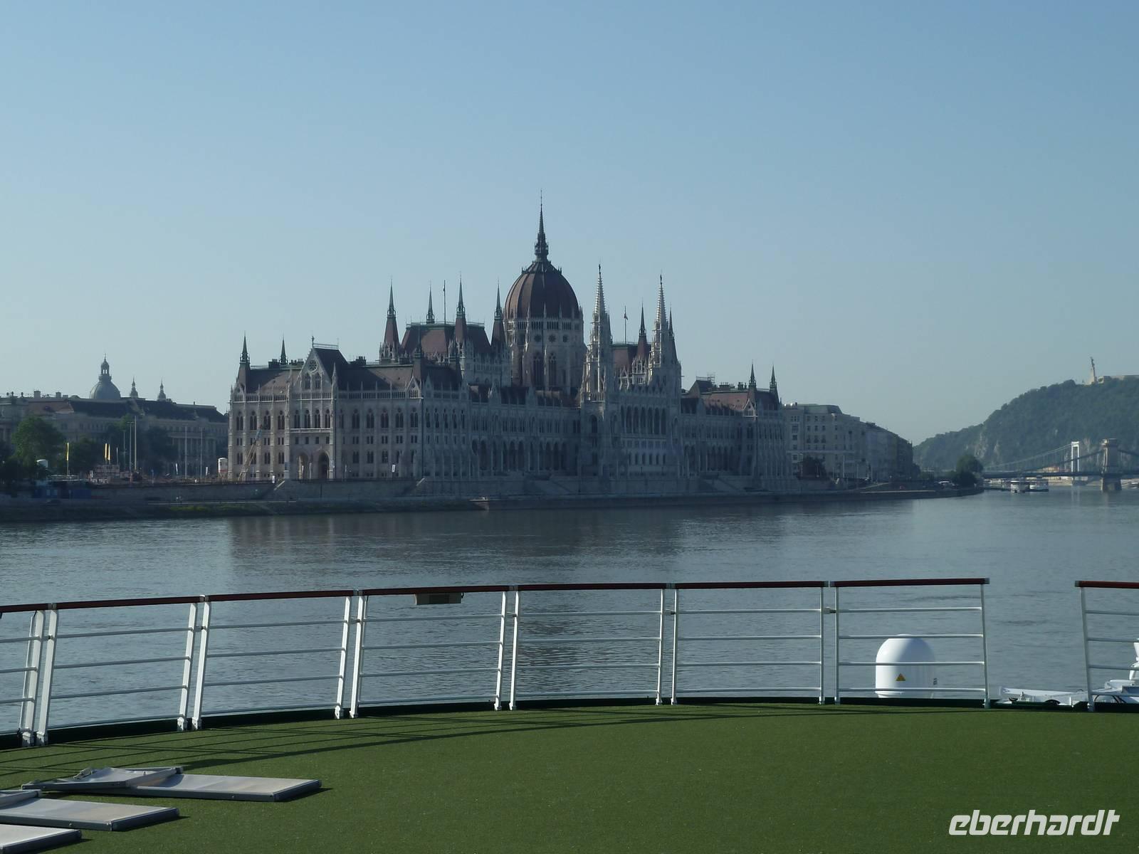 Am Morgen reisten wir mit Zustiegen in Chemnitz und Plauen nach Passau. Am Schiffsanleger der A-ROSA MIA wurden wir sehr freundlich empfangen und konnten sofort einchecken. Wir inspizierten unser zu Hause für die nächsten 17 Tage und einige nutzten das Angebot für den geführten Schiffsrundgang, dabei zeigte uns Maitre d Hotel Sebastian Stöbe die verschiedenen Bars, die Lounge, natürlich das Restaurant, das Sonnendeck und auch die Örtlichkeiten, wo alle ihre zusätzlich gewonnenen Pfunde wieder los werden könnten (SPA-Bereich mit Fitnessstudio und Sauna).