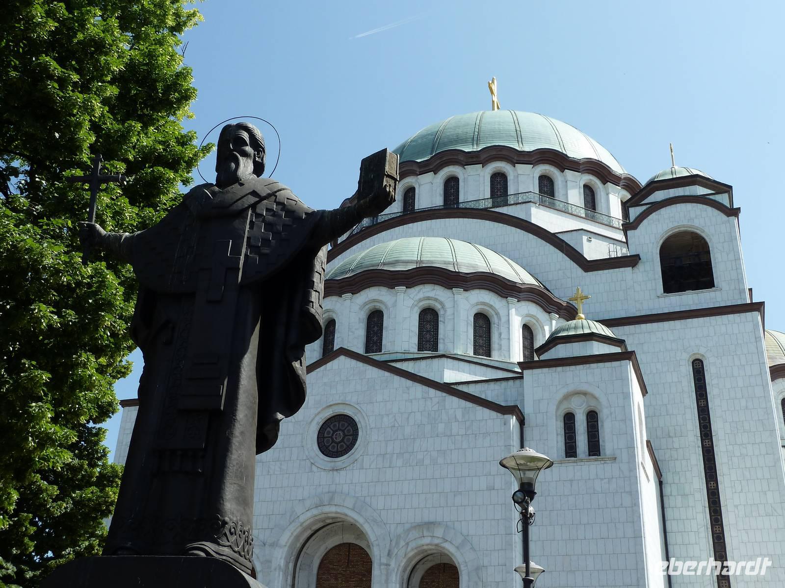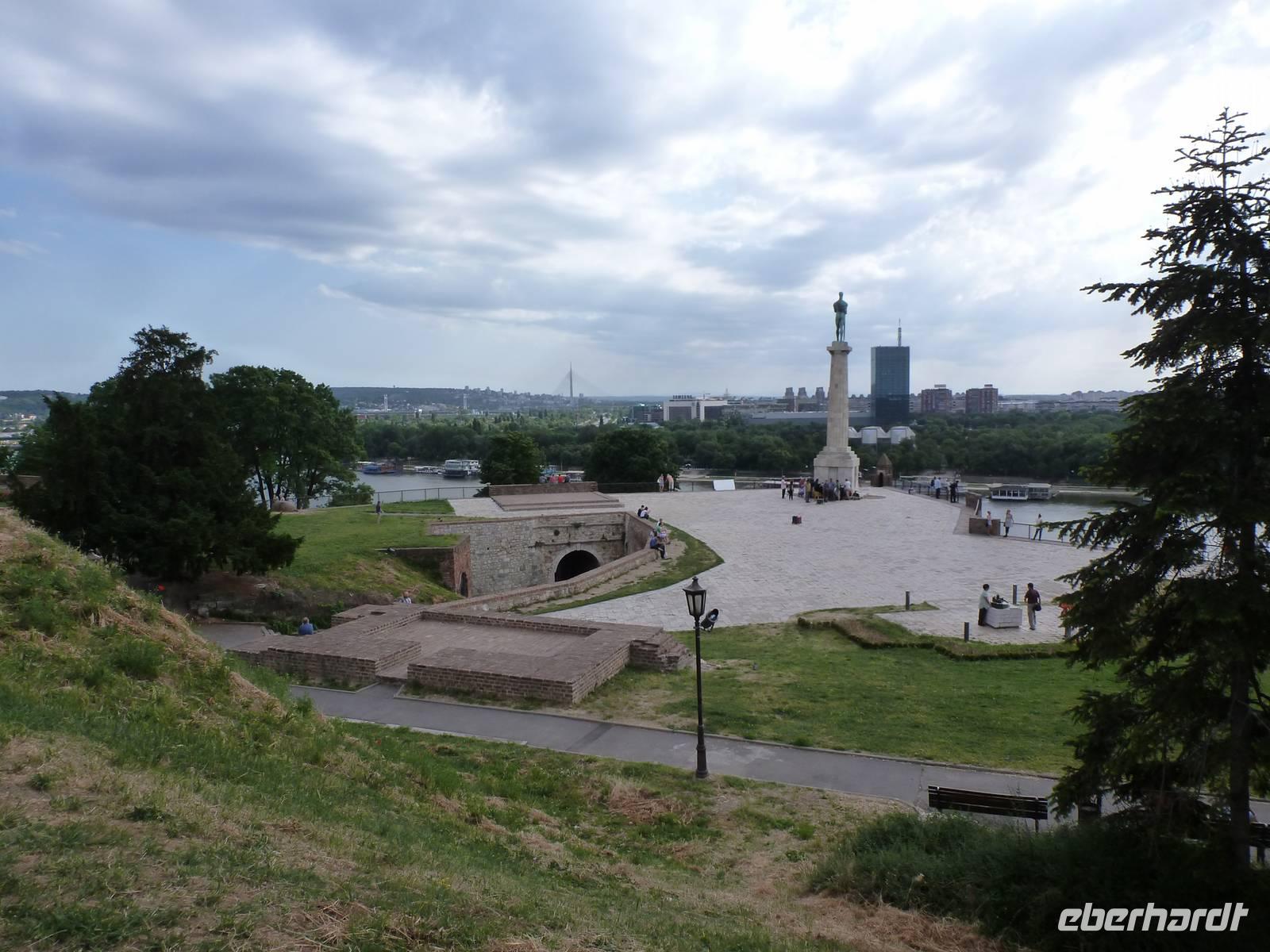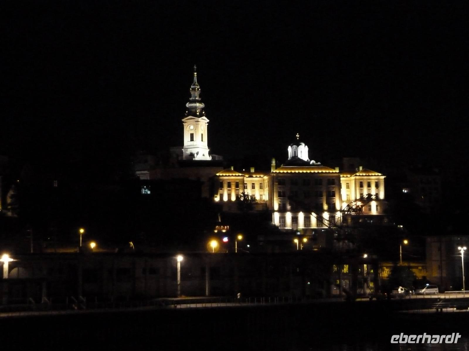Heute Morgen stießen wir mit Sekt auf eine wunderschöne Reise an. Bereits am Vormittag erreichten wir Belgrad, die serbische Hauptstadt. Gleich nach dem Mittagessen standen schon die Reisebusse und Stadtführer bereit, um uns ihre Stadt zu zeigen. Zunächst kamen wir in einen Stau - wie in jeder Großstadt. Bei der orientierenden Rundfahrt zeigte uns Dima, unser Stadtführer, unter anderem das „Alte" und das „Neue Schloss", das Haus des „Cafe Fragezeichen" und dessen Geschichte, Botschaften, Tito-Museum und -Grabstätte. Dann besuchten wir die auf einem Hügel befindliche Kathedrale des Heiligen Sava. Die Grundsteinlegung war 1939, aber erst 1995 wurde der Bau mit der gewaltigen Kuppel beendet. Die Fertigstellung der Innenausstattung wird sicher noch einige Jahre dauern. Dann zeigte uns Dima den trubeligen Platz der Republik mit Nationalmuseum und Reiterstandbild sowie die Fußgängerzone. Im Anschluss ging es zur Festungsanlage mit Park Kalemegdan, ohne Zweifel die Sehenswürdigkeit Belgrads. Beim Siegesmonument bot sich ein weiter Rundblick auf die Donau, die Save, das gegenüberliegende Novi Beograd und das weite Land.