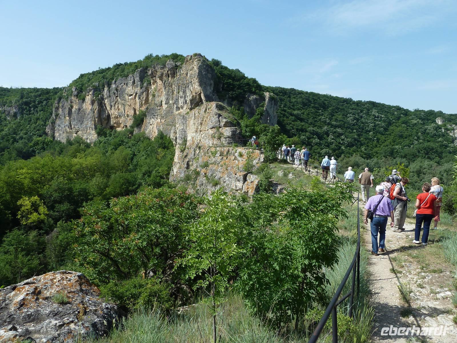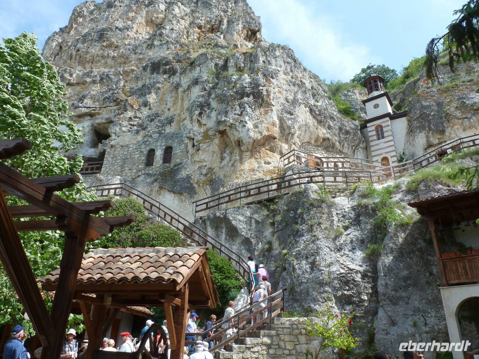 In Russe, der größten bulgarischen Donauhafenstadt, legte die Arosa Mia am Morgen an. Zum Ausflug „Die versteckten Klöster" ging es mit festem Schuhwerk los. Mit dem Bus fuhren wir ein Stück ins Landinnere zum Naturpark Russenski Lom. Hier befinden sich die Ivanovo Felsenkirchen, die als UNESCO-Weltkulturerbe gelistet sind. Über einen Wanderweg erreichten wir die Felskirche Sveta Bogoroditsa und bestaunten die berühmten Fresken an Wand und Decke. Weiter ging die Tour zum Höhlenfelsenkloster Bassarbovo. Steile Treppen galt es zu erklimmen, um in der Kapelle kostbare Ikonen zu bewundern. Das Bemerkenswerte: das orthodoxe Männerkloster ist immer noch tätig. Am Nachmittag startete die Erkundung der Stadt Russe per Bus und auch per Fuß. Im Zentrum gibt es viele historisch sehenswerte Gebäude, wie auch ein Opernhaus, und wir können nun nachvollziehen, warum die Stadt " Kleines Wien" genannt wird. Im Museum der städtischen Kultur wurden wir überraschend mit einer Klavierdarbietung in Russes Blütezeit Anfang des 19. Jahrhunderts versetzt. Am Abend brachte eine bulgarische Folkloregruppe jede Menge gute Stimmung an Bord, sie wurde mit viel Beifall bedacht.