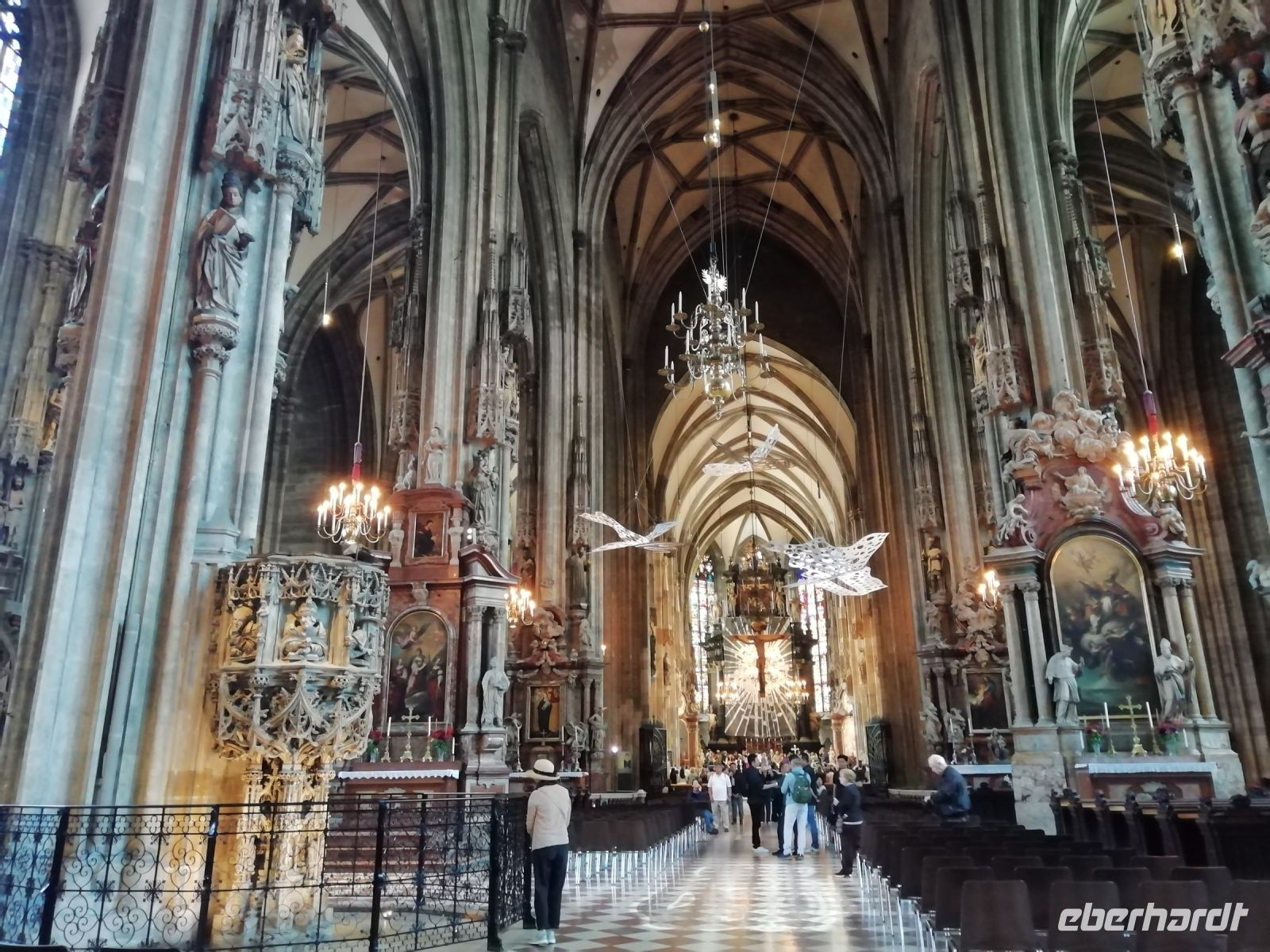 Der heutige Tag steht ganz im Zeichen der österreichischen Hauptstadt. Bereits am Morgen hat das Schiff in Wien-Nussdorf angelegt und wir sehen hoch über uns auf dem Leopoldsberg die kleine gleichnamige Kirche. Nach dem Frühstück sind wir bereit für unsere Entdeckertour durch die Donaumetropole. Der Bus bringt uns zum Zentrum, wobei sich auf der gegenüberliegenden Donauseite die Skyline der UNO-City präsentiert. Vorbei am Prater, wo wir das historische Riesenrad sehen, und am Wohnhaus von Johann Strauß gelangen wir zum Donaukanal. Nun biegen wir auf die Ringstraße ab. Sie wurde nach dem Niederreißen der alten Stadtmauern und Festungswerke 1858 rund um die Innenstadt angelegt, ist 6 Kilometer lang, zählt zu den attraktivsten Prachtstraßen der Welt und wird von zahlreichen monumentalen Bauten und schönen Parkanlagen gesäumt. Unsere köpfe gehen hin und her, denn es gibt viel zu sehen: die Kunstakademie, die Karlskirche, die Wiener Oper, die Hofburg, das Kunst- und das Naturhistorische Musem, das Parlament, die Votivkirche und das Rathaus. Am Burgtheater verlassen wir den Bus und unser örtlicher Reiseleiter Peter führt uns mit Wiener Charme zuerst zum Volksgarten. 3300 Rosenstöcke von über 300 Arten präsentieren sie hier in voller Blüte und verbreiten einen angenehmen Duft. Zudem steht hier, etwas versteckt, das Sisi-Denkmal. Über den Heldenplatz mit den Denkmälern von Prinz Eugen und Erzherzog Karl gelangen wir zum Innenhof der Hofburg und dann auf den Michaelerplatz. Weiter geht es über den Kohlmarkt und den Graben zum Stephansdom. Nun ist Freizeit und wir schauen uns den Dom von Innen an oder lassen uns Sachertorte und eine der zahlreichen Wiener Kaffeespezialitäten schmecken. Danach fahren wir zurück zum Schiff, wo es - passend zum heutigen Ausflug - beim Mittagsmenü u.a. Wiener Schnitzel und Kaiserschmarrn gibt.