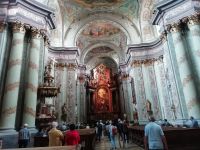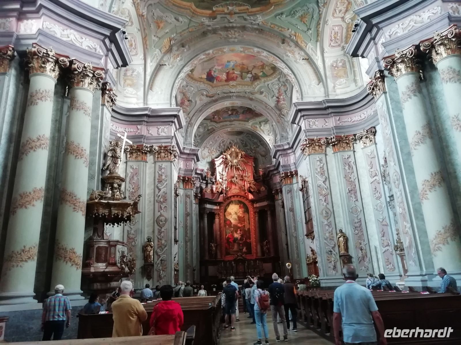 Nach einem Abstecher ins Kulturviertel mit den unterschiedlichsten Museen geht es über die Ringstraße zum Wahrzeichen des Ortes, dem Steiner Tor. Hier verlassen wir den Bus und spazieren durch die Fußgängerzone, wo wir die schmucken Renaissance-Häuser bewundern. Weiter geht es vorbei am Dominikanerkloster zum sogenannten 3-Kirchen-Blick. Hier besuchen wir die Pfarrkirche St. Veit. Wieder zurück in der Fußgängerzone bleibt Zeit für einen Bummel durch die Geschäfte. Die meisten Gäste kommen dann mit den verschiedensten Marillenprodukten zum Bus zurück. Dieser bringt uns ins Traisental. Hier befindet sich das Augustiner-Chorherrenstift Herzogenburg, das bereits 1112 gegründet wurde. Während einer Führung lernen wir den barocken Bildersaal, den Festsaal, die Chor-Kapelle und die beeindruckende Bibliothek, die rund 18.000 Bände umfasst, kennen. Den Abschluss des Rundgangs bildet ein Besuch der prunkvollen Stiftskirche. Hier können wir auch eine der bedeutendsten Orgeln Niederösterreichs bewundern.