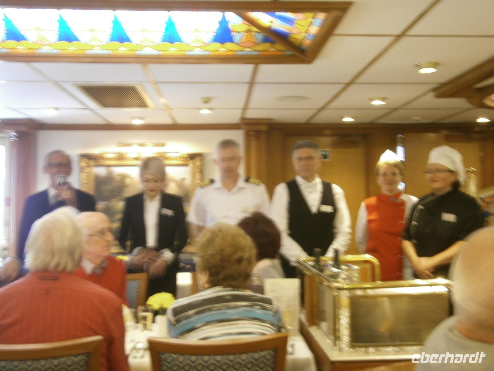 Heute lernten wir Dürnstein, das wohl schönste Örtchen in der Wachau kennen. Der Spaziergang mit unsrer Stadtführerin führte uns zunächst an einen Weinberg,dann zur Burgruine und in die anheimelnden Gassen von Dürnheim. Hier ist man ganz auf den Wachauer Wein und allerlei Leckereien aus den heimischen Marillen eingestellt. Überall kann man Marillenkonfitüre, -schokolade oder -likör kosten und natürlich auch als Souvenir erwerben. Mit vollen Tüten trafen wir wieder an Bord ein. Beim Nachmittagskaffee fuhren wir am Benediktinerstift Melk vorbei. Da dieser Abend unser letzter an Bord der „ Princess de Province" war, waren wir zum Kapitänsdinner mit Verabschiedung durch den Kapitän und seine Mannschaft eingeladen. Bei einem Glas Sekt verabschiedeten wir uns von allen, die uns auf unserer Donaukreuzfahrt verwöhnt haben und auch von der- auch bei Hochwasser- schönen aber so gar nicht blauen-Donau.