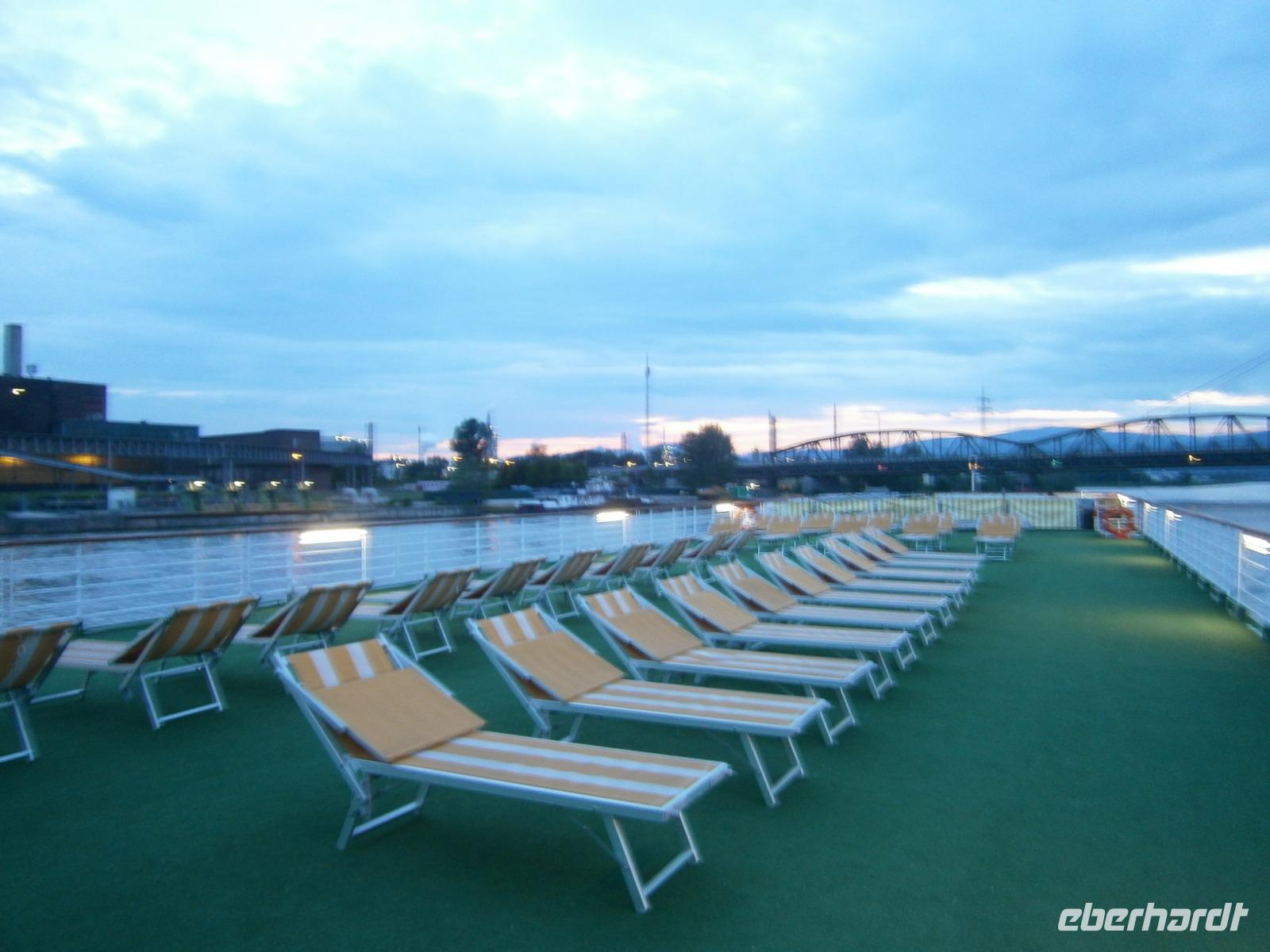 Am frühen Morgen holte uns der Bus in Dresden und an den anderen Zustiegsstellen ab. Durch die grünen Landschaften des Fichtelgebirges und Oberpfälzer Waldes näherten wir uns unserem Ziel, dem Hafen von Passau.Dort erwartete uns die Mannschaft der „Princess de Provence" mit einem nachmittäglichen Kaffee und Kuchen. Nach einem Begrüßungscocktail wurde uns die Mannschaft vorgestellt und wir erhielten einige Informationen über das Schiff und den Tagesablauf.Dann legten wir auch schon ab und nahmen Kurs auf die Slowakei. Bevor wir uns in unseren Kabinen zur Ruhe legten,verwöhnte man uns noch mit einem leckeren mehrgängigen Abendessen. Wer noch nicht müde war, konnte sich in der Bar noch an Bordmusikerin Nedas Gesang erfreuen oder das Tanzbein schwingen.