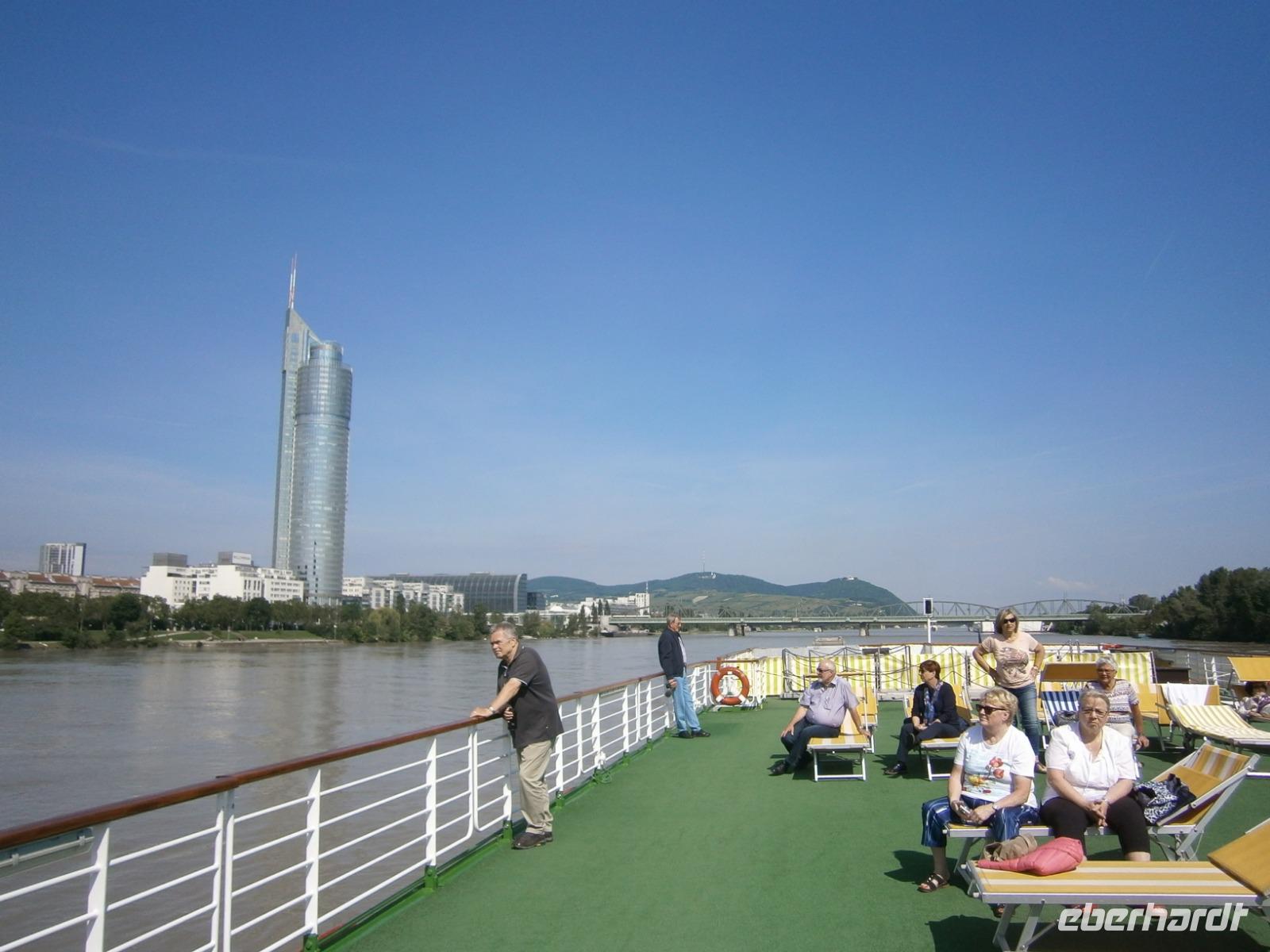 Wieder gehört ein ganzer Tag einer Weltstadt: Wir sind in Wien.Während der vormittäglichen Stadtrundfahrt, mit einem Spaziergang in der Innenstadt,lernten wir das Hundertwasserhaus, die Leopoldtsburg, die Hofburg mit dem Denkmal Maria Theresias, den Stephansdom kennen. Natürlich wusste unsere Stadtführerin auch Geschichten aus dem alten Wien und über die Sehenswürdigkeiten der Stadt zu erzählen. Die Freizeit am Nachmittag verbrachten nur wenige Reisegäste an Bord. Die Anderen erkundeten weiter die Sehenswürdigkeiten der Stadt oder ließen sich ein Wiener Schnitzel oder die Sachertorte schmecken. Erst spät am Abend legte unser Schiff in Wien- Nussdorf ab.