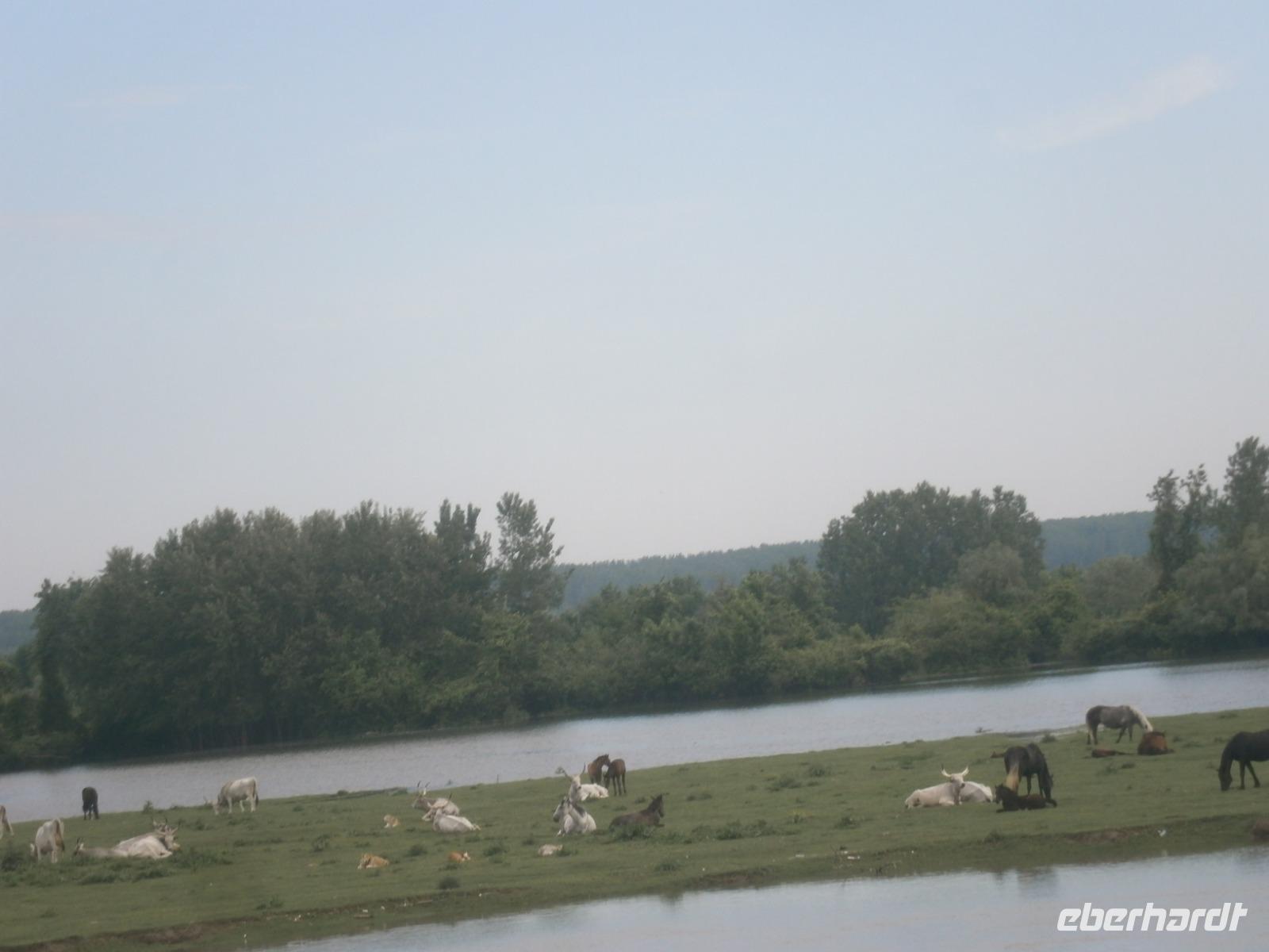 Vormittags ließen wir die Flußlandschaft entspannt an uns vorbeiziehen. Dabei entdeckten wir vielerlei Wasservögel und auch Nutztiere wie Rinder, Pferde und Schweine, die auf ihren - wegen des Hochwassers wie kleine Inseln ausschauenden Weiden- grasten, als wäre diese „Sintflut" ganz normal. Am Mittag erreichten wir den Zusammenfluss von Donau und Save in Belgrad. Dort waren die alte Festung und die Kathedrale des Heiligen Sava mit ihren wunderschönen an byzantinische Vorbilder erinnernden Mosaiken besonders beeindruckend. Auch die Altstadt beginnt nach ihrer Zerstörung wieder in altem Glanz zu erstrahlen.