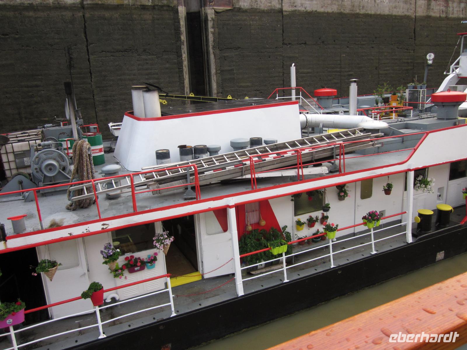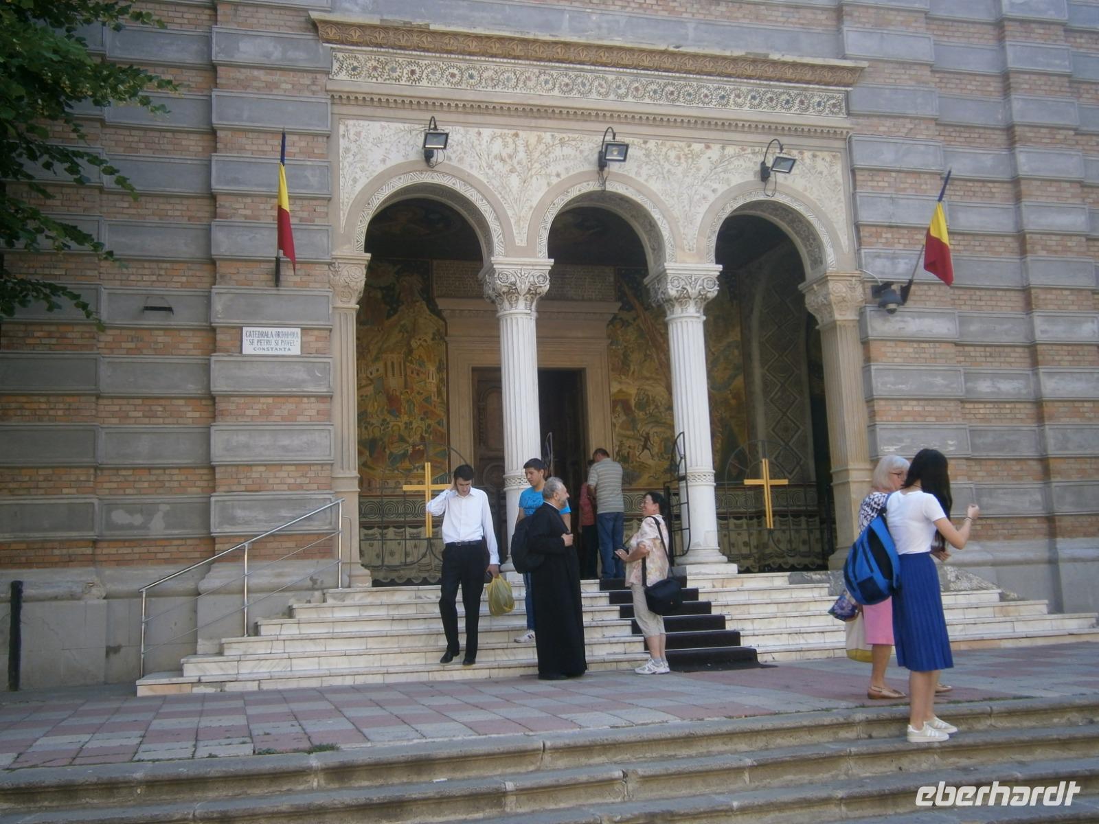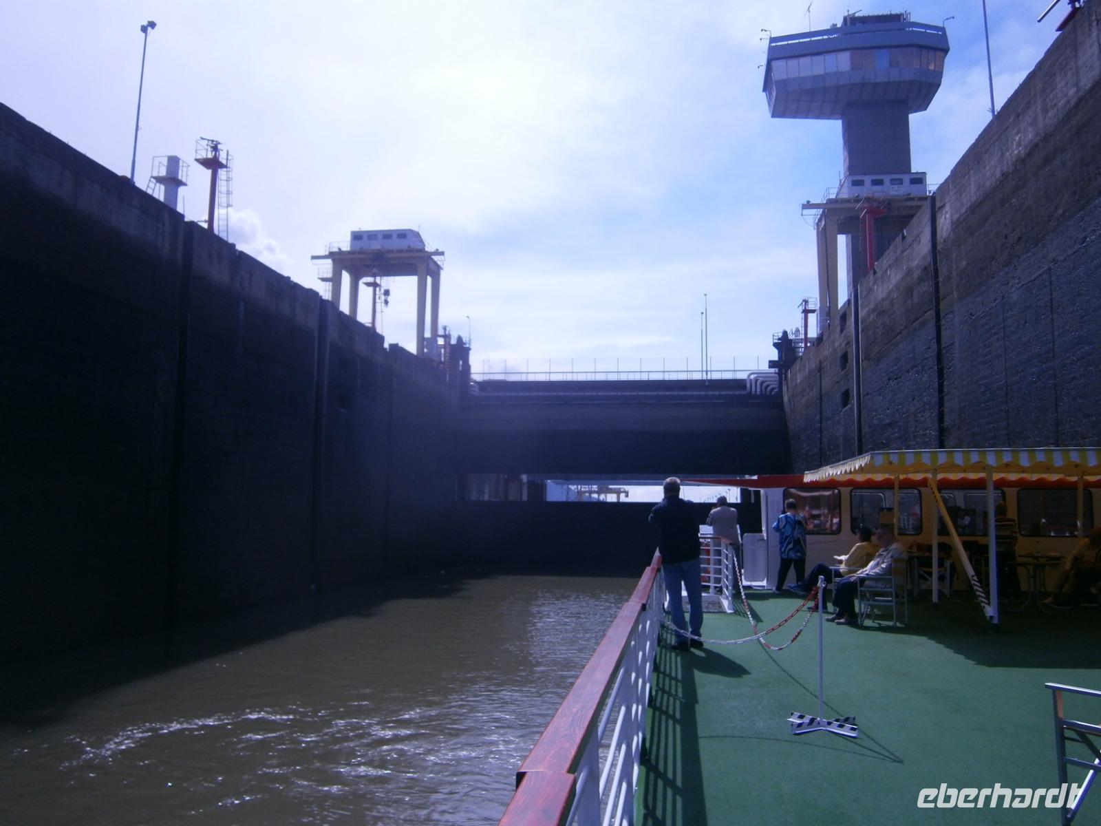 Da die Donau noch immer Hochwasser führte, verlief die Fahrt stromauf natürlich langsamer als vor Tagen. So konnten wir den ganzen Vormittag entspannt die Sonne und die Landschaft vom Oberdeck aus genießen. Nach dem Mittagessen zeigte uns der örtliche Reiseleiter während eines Spaziergangs in Turnu Severin die Markthalle, die beeindruckende Kathedrale und den Wasserturm seiner Stadt. In der Freizeit erkundeten wir das Stadtzentrum weiter und fotografierten die Sehenswürdigkeiten, wie zum Beispiel den reizvollen Blick zur Festung von Drobeda. Gegen Abend fuhr unsere" Prinzessin"wieder in die Schleusen Djerdab 1 und 2 ein. Erneut war es ein beeindruckendes Erlebnis, die enormen Wassermassen der angeschlossen Kraftwerke so aus unmittelbarer Nähe zu schauen.