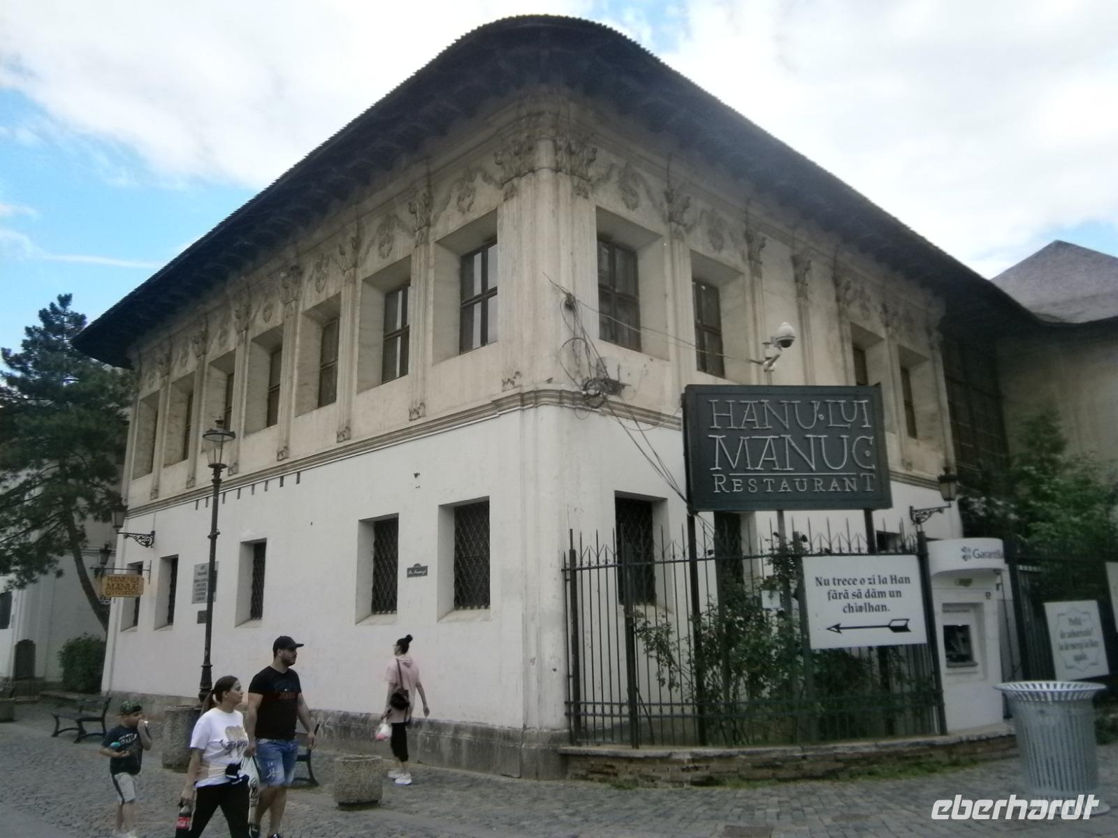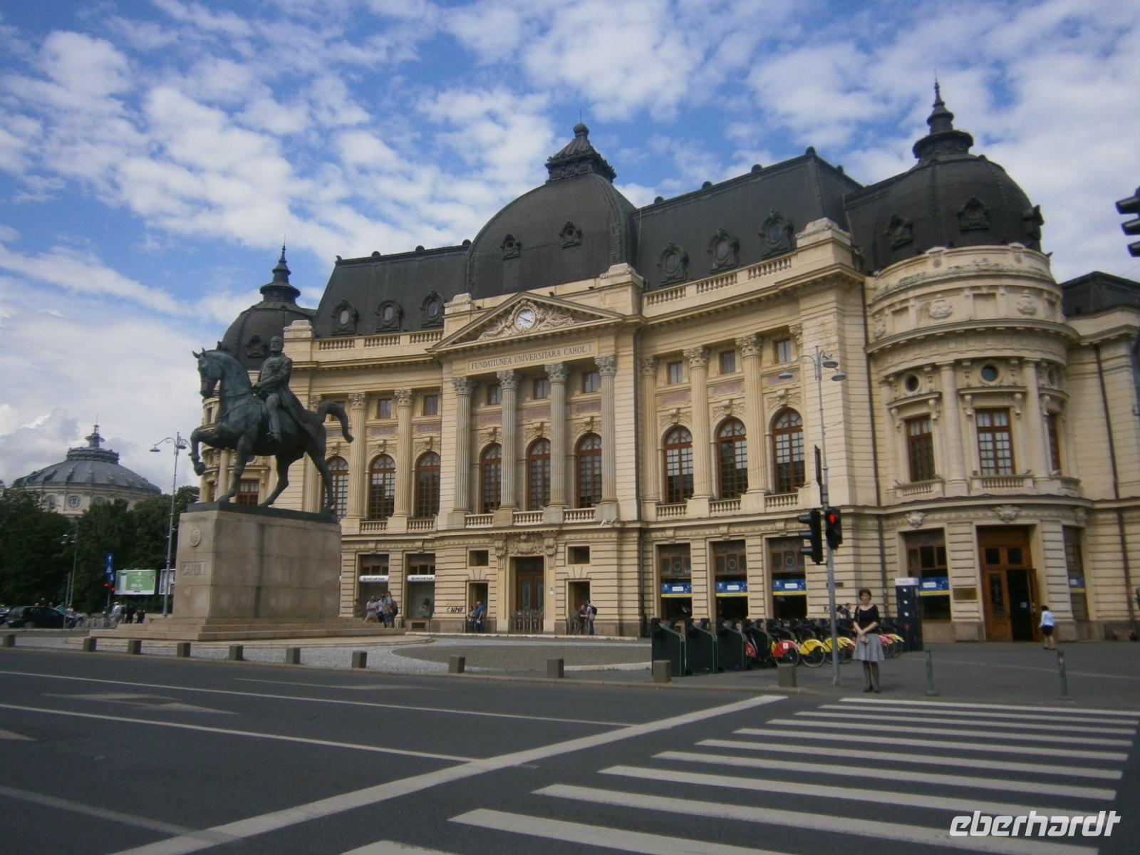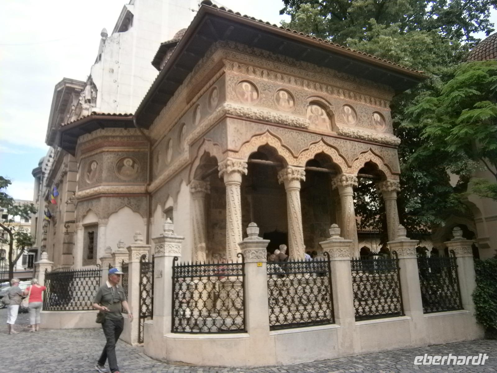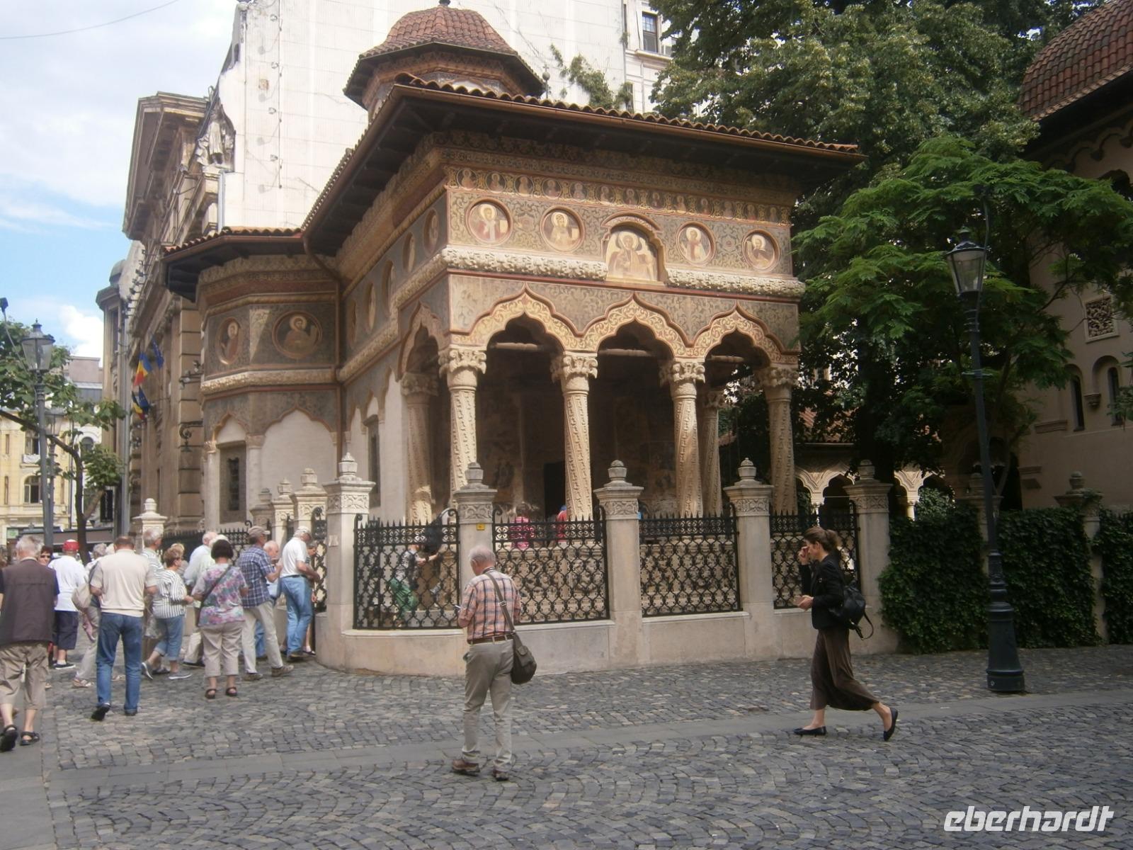 Bei herrlichem Wetter verbrachten wir den Vormittag auf dem Sonnendeck. Da der Fluss hier die natürliche Grenze bildet, glitt an der rechten Seite ein Teil Bulgariens und links Rumäniens vorbei, wo wir dann auch im kleinen Hafen Giurgiu anlegten. Nach dem- wie immer- sehr leckeren Mittagessen brachte uns ein Bus in die rumänische Hauptstadt, nach Bukarest. Während der Stadtrundfahrt und einem Rundgang durch die Altstadt sahen wir außer dem Parlamentsgebäude noch viele sehr prächtige altehrwürdige und palastartige Gebäude. In der Altstadt beeindruckten besonders die älteste Kirche der Stadt und die ehemalige Karawanserei.