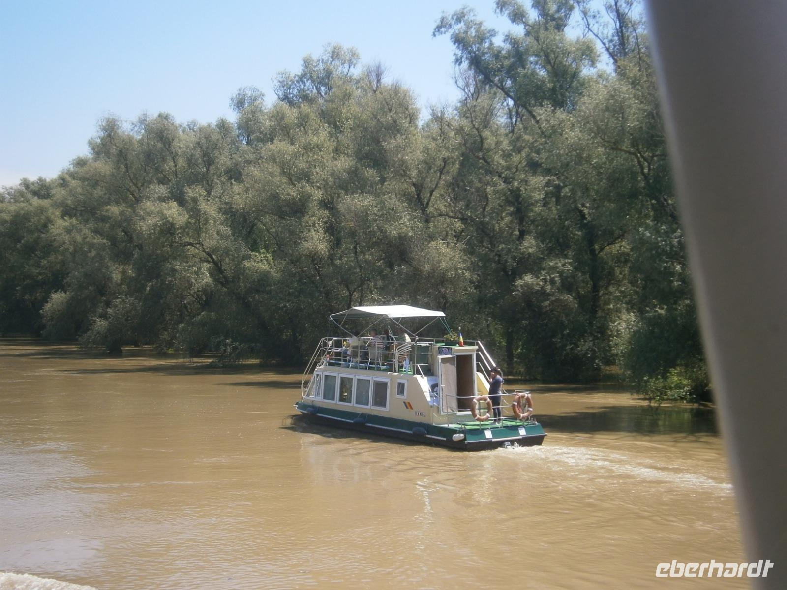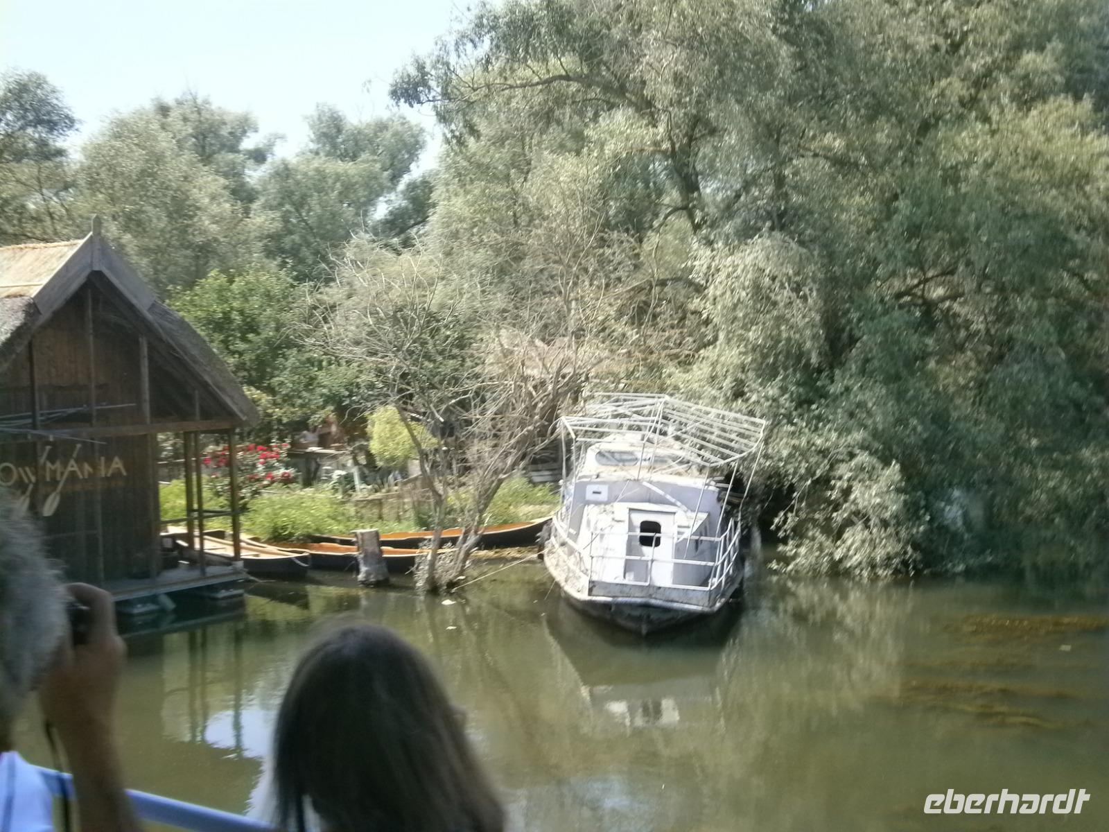 Am frühen Morgen begann unser Ausflug mit einer Busfahrt in Richtung Murfatlar, über den Donau-Schwarzmeer- Kanal und durch das Steppengebiet von Cernavoda. Unterwegs waren riesige Felder voll goldfarbigen Getreides, junge Maispflanzen und Sonnenblumen zu sehen. In Tulcea wartete unser Ausflugsschiff, welches uns dann in verschiedene Arme des Deltas brachte. Wir konnten im Dickicht und Schilfrohr die unterschiedlichsten Vogelstimmen hören-mehr als 300 Vogelarten leben hier-, auch verschiedene Kranicharten beobachten. Sogar Pelikane flogen über uns hinweg und ließen sich dann in gebührender Entfernung auf einem See nieder. Aufgrund des Hochwassers der Donau wirkte die dschungelartige Wasserlandschaft besonders unberührt, nur die urwüchsigen im Dickicht versteckten Hütten der Vogelkundler ließen menschliche Anwesenheit vermuten.
