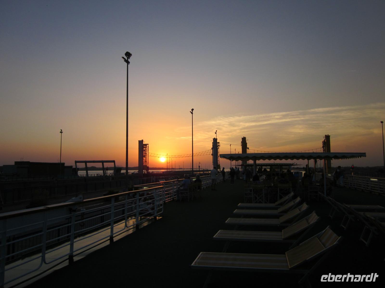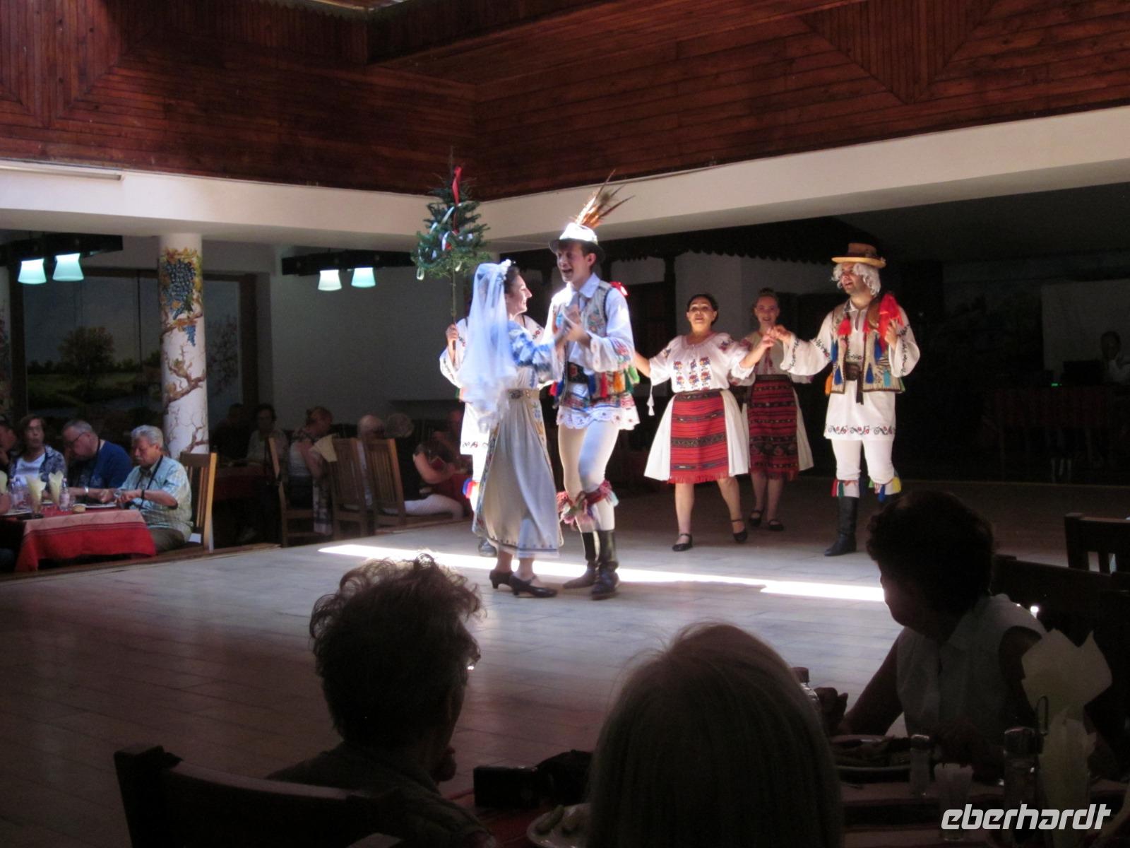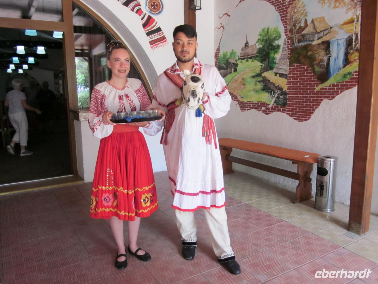 Heute waren wir schon den dritten Tag mit unserem rumänischen Reiseleiter Teri unterwegs, der uns sein Heimatland mit all seinen vielfältigen Facetten näher brachte. Zunächst lernten wir die Hafenstadt Constanta und später das Seebad Mamaia kennen. Natürlich mussten wenigstens unsere Füße auch einmal ins Schwarze Meer eintauchen, ehe wir uns eine Erfrischung, ein Eis oder eine Fahrt mit der Hochbahn „ gönnten". Weiter ging es in ein Restaurant mit typisch rumänischem Essen und einer Folklorevorstellung mit Musik und Tanz. Einige Reisegäste versuchten sich auch mit viel Freude in dieser Kunst. Am Nachmittag brachte uns der Bus nach Calarasi, wo unsere „Princess" schon mit dem Abendessen auf uns wartete. Leider hieß es auch Abschiednehmen von „unserem" Teri, da es ja morgen weiter nach Bulgarien geht.