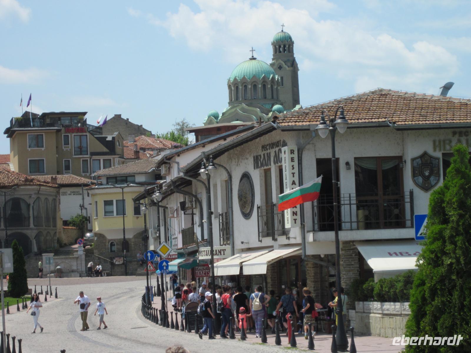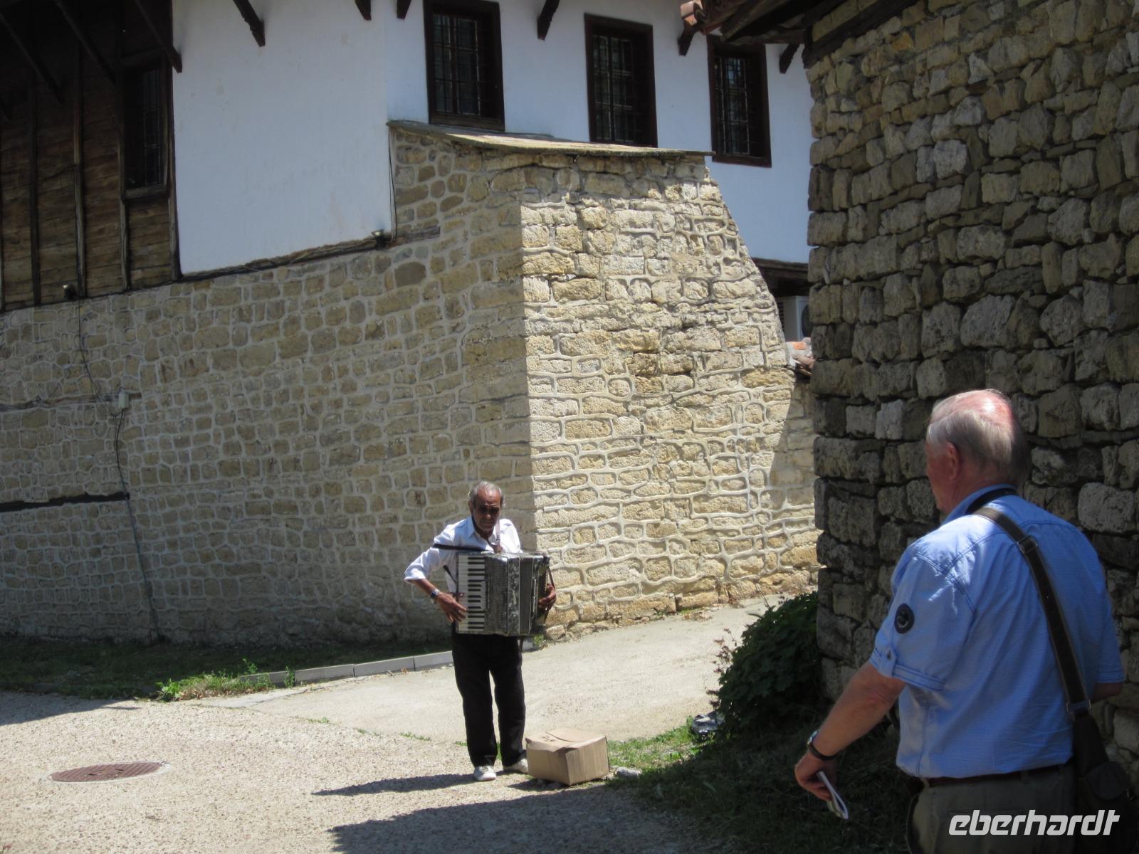 Von der bulgarischen Stad Ruse wird uns wohl vor allem der großzügig angelegte Park mit seinem intensiven Duft nach frischen Lindenblüten in Erinnerung bleiben. Als Höhepunkt dieses Tages erwies sich der Besuch der Christi- Geburts- Kirche in Arbanasi, eine der ältesten orthodoxen Sakralbauten. Sie wirkt äußerlich völlig unscheinbar und besitzt keinen Turm. Doch im Inneren eröffnet sich uns ein wahres Schatzkästchen mit über 3000 ikonografischen Wandmalereien aus dem 15./16. Jahrhundert,die bei Restaurierungsarbeiten wiederentdeckt und uns während einer fachkundigen Führung erläutert wurden. In einem typisch bulgarischen Restaurant wurden wir danach mit Brot und Salz zu einem landestypischen Mittagessen, natürlich auch mit dem passenden Wein, eingeladen. Weiter ging es nach Veliko Tarnovo, der zweitgrößten Stadt Bulgariens. Die Stadtführerin spazierte mit uns zur Festung und zeigte uns die Handwerkerstrasse, in deren Geschäften wir in der anschließenden Freizeit die vielfältigsten Mitbringsel aus den für Bulgarien so typischen Rosendüften entdeckten. Am späten Nachmittag kehrten wir dann in Nikopol wieder auf unser Schiff zurück.