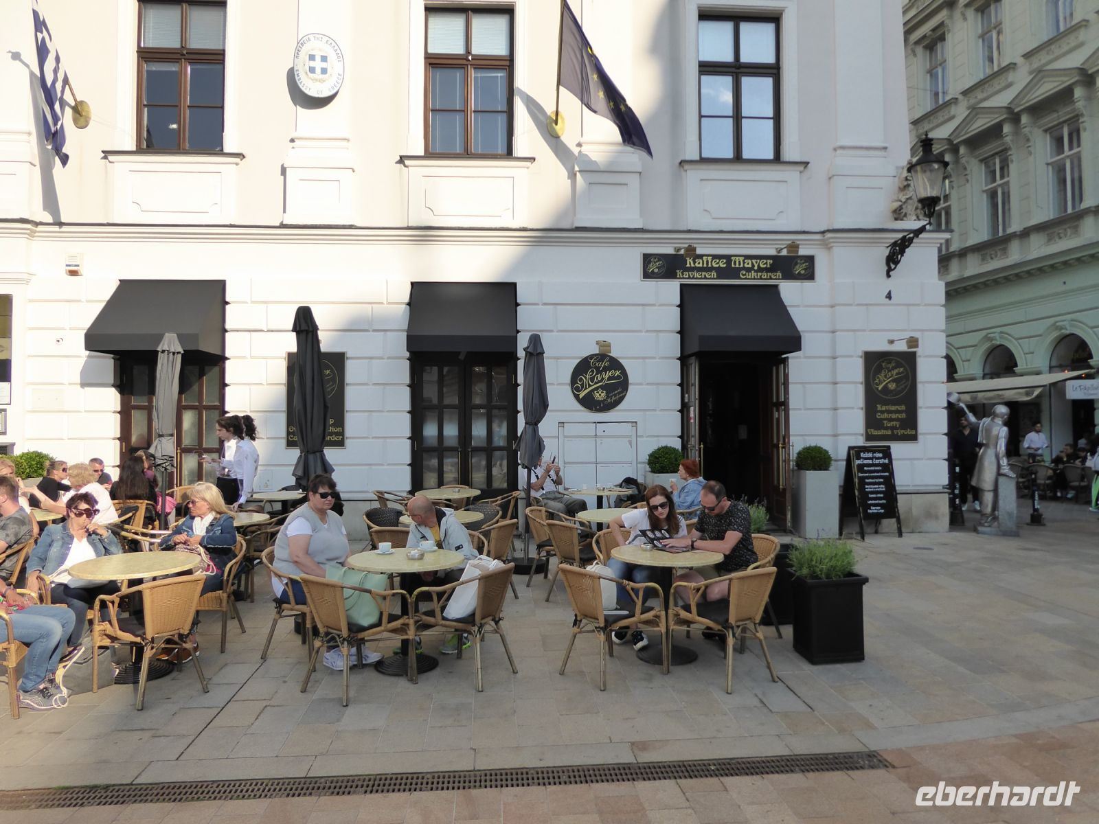 An Bord gabe es am Nachmittag wieder Kaffee und Kuchen und am Abend Abendessen. Einige hatten sich abgemeldet, waren noch in Wien, andere konnten wieder mit der Straßenbahn ins Stadtzentrum fahren, da unser Schiff erst um 24.00 h ablegen sollte, dann mussten aalle an Bord sein.
