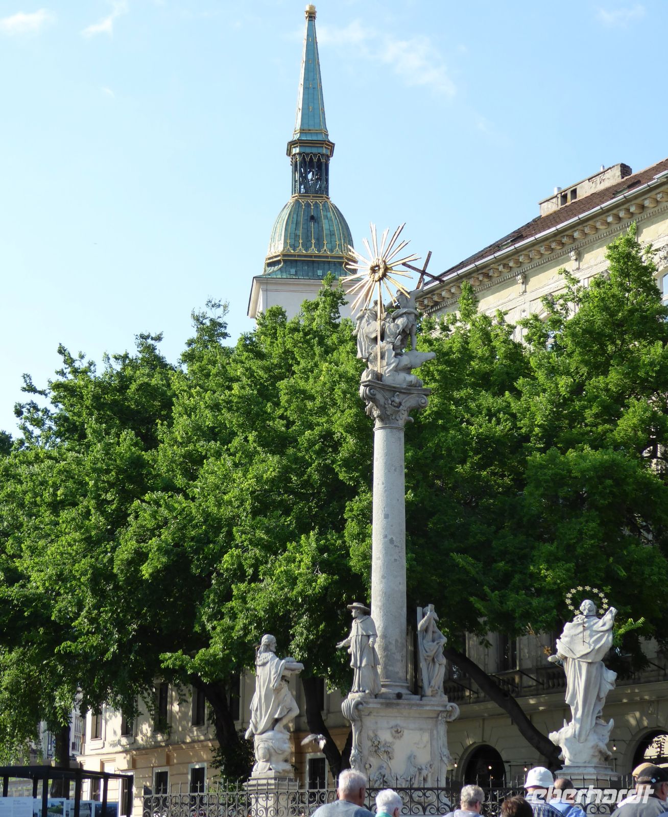 Führerin, dann Freizeit zur intensiveren Besichtigung der Bischofskirche. Die Kirche fasziniert in ihrer wahren Größe und der Ausstattung mit Statuen, Fresken und kostbaren Altarbildern. Von der Aussichtsterrasse aus haben wir einen schönen Blick auf die Donau, die Stadt Esztergom und auf der anderen Donauseite das slowakische Sturovo. Anschließend bringt uns der Bus wieder zum Anleger, dann ablegen und Weiterfahrt Richtung Wien.