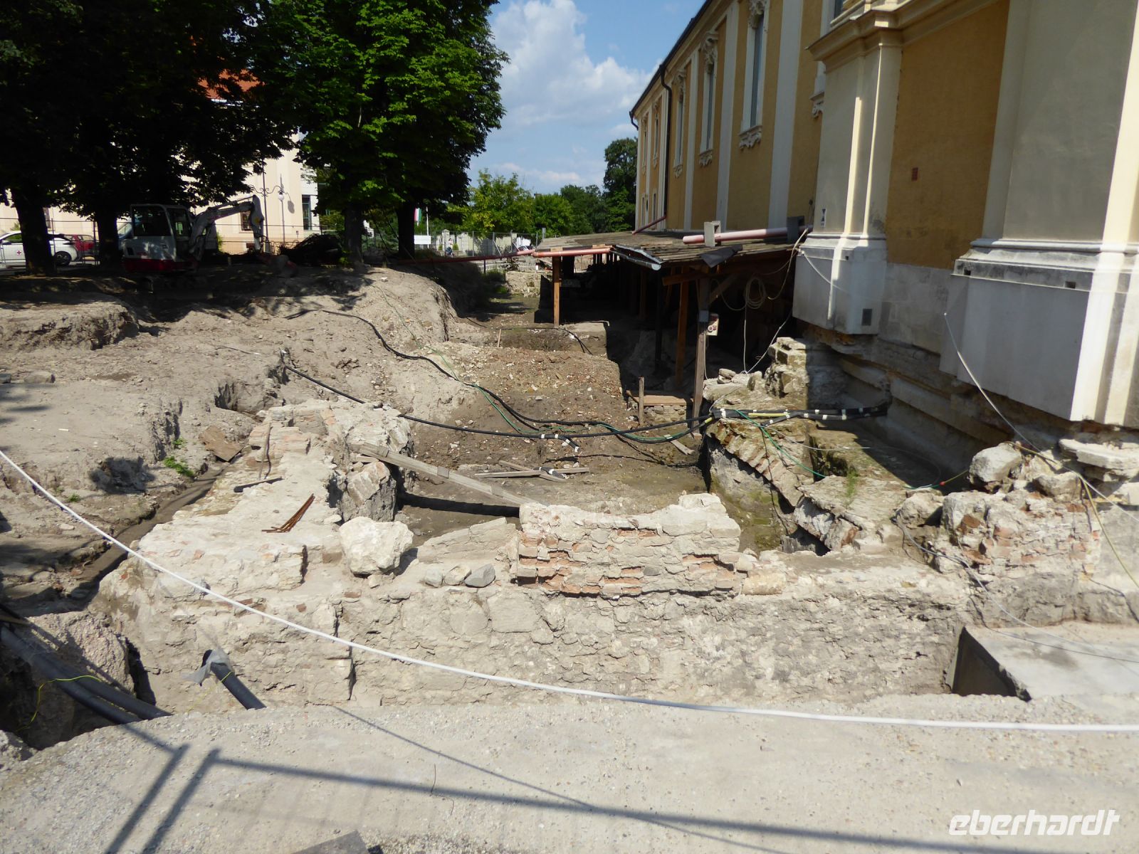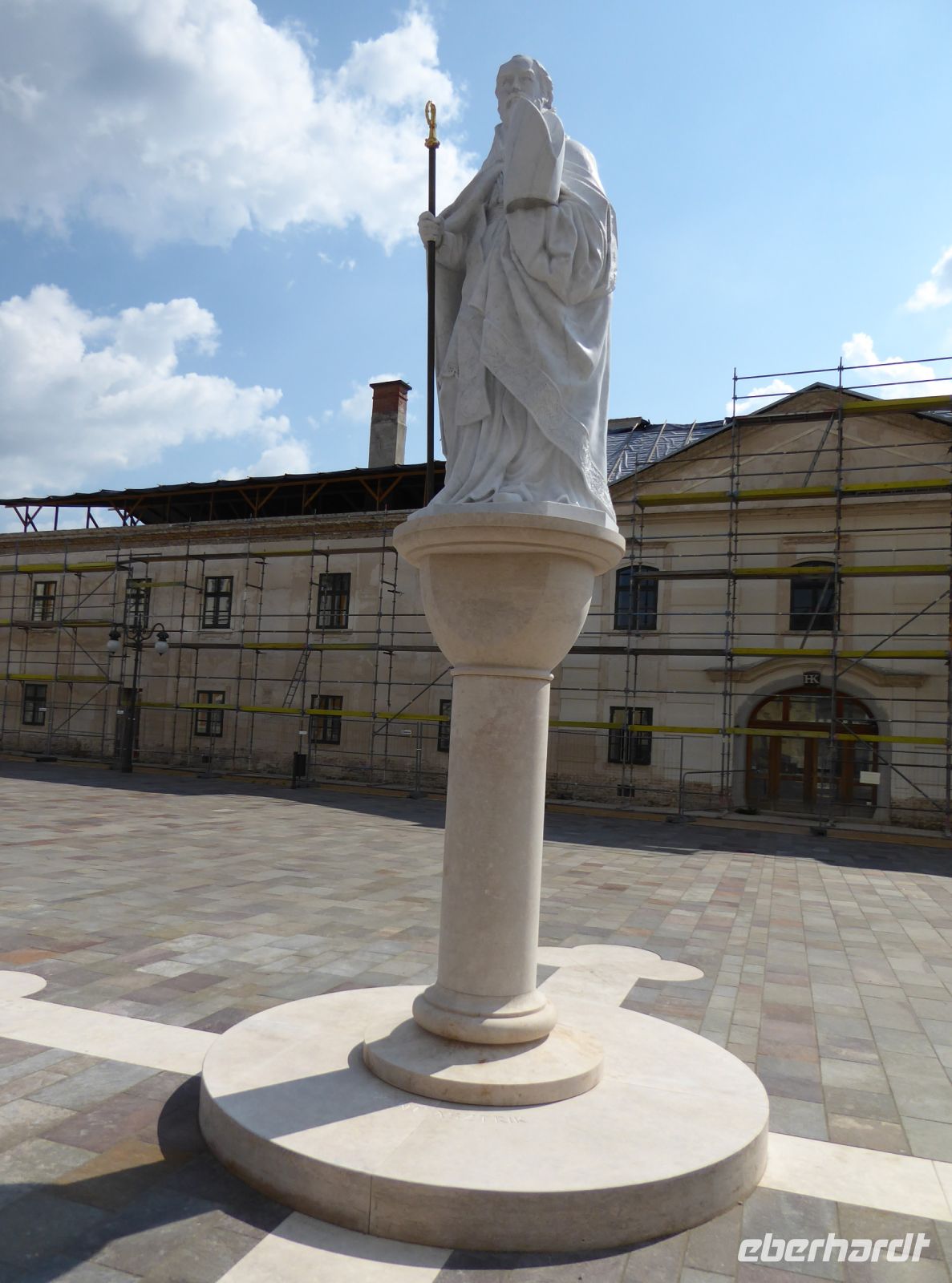 Um 12.30 h gab es Mittagessen, während dessen das Schiff die Anlegestelle bei Kolosca erreicht. Um 14.00 h Ausflug wieder mit zwei Bussen, zuerst nach Kalosca in eine Paprika-Verarbeitung mit kleinem Museum und Verkauf. Dann ging es weiter zum Domplatz, wo uns einer der Guides den Dom von weitem erklärte und über die Ausgrabungs-stätten beim Dom berichtete, in denen Reste der ersten Bischofskirche gefunden wurden, und menschliche Gebeine aus dem 11. Jahrhundert n.Chr. identifiziert werden konnten, die wohl dem ersten Bischof von Kalosca zugeschrieben werden.