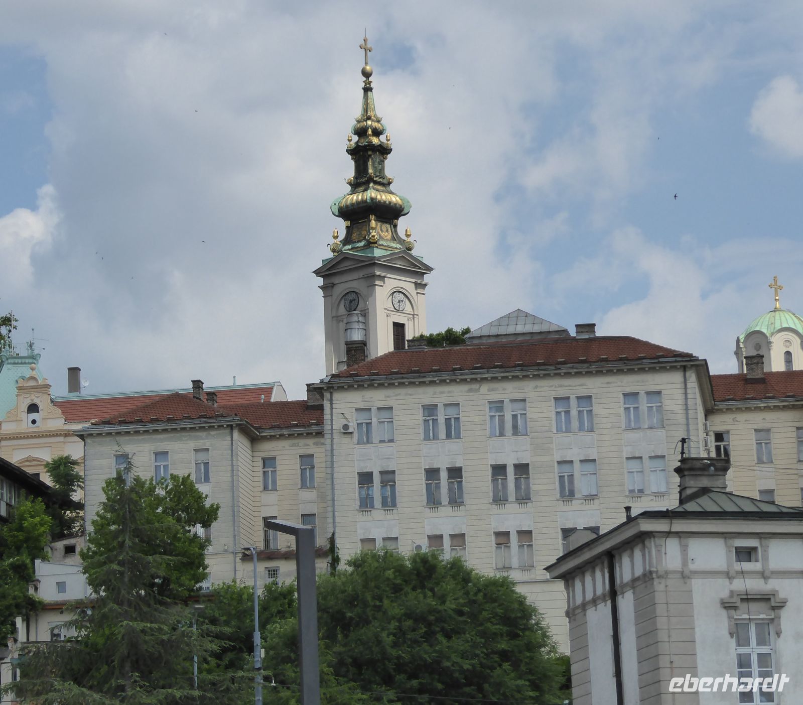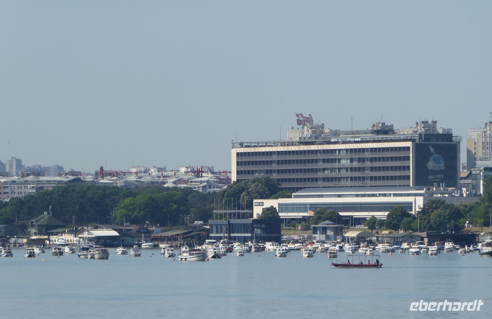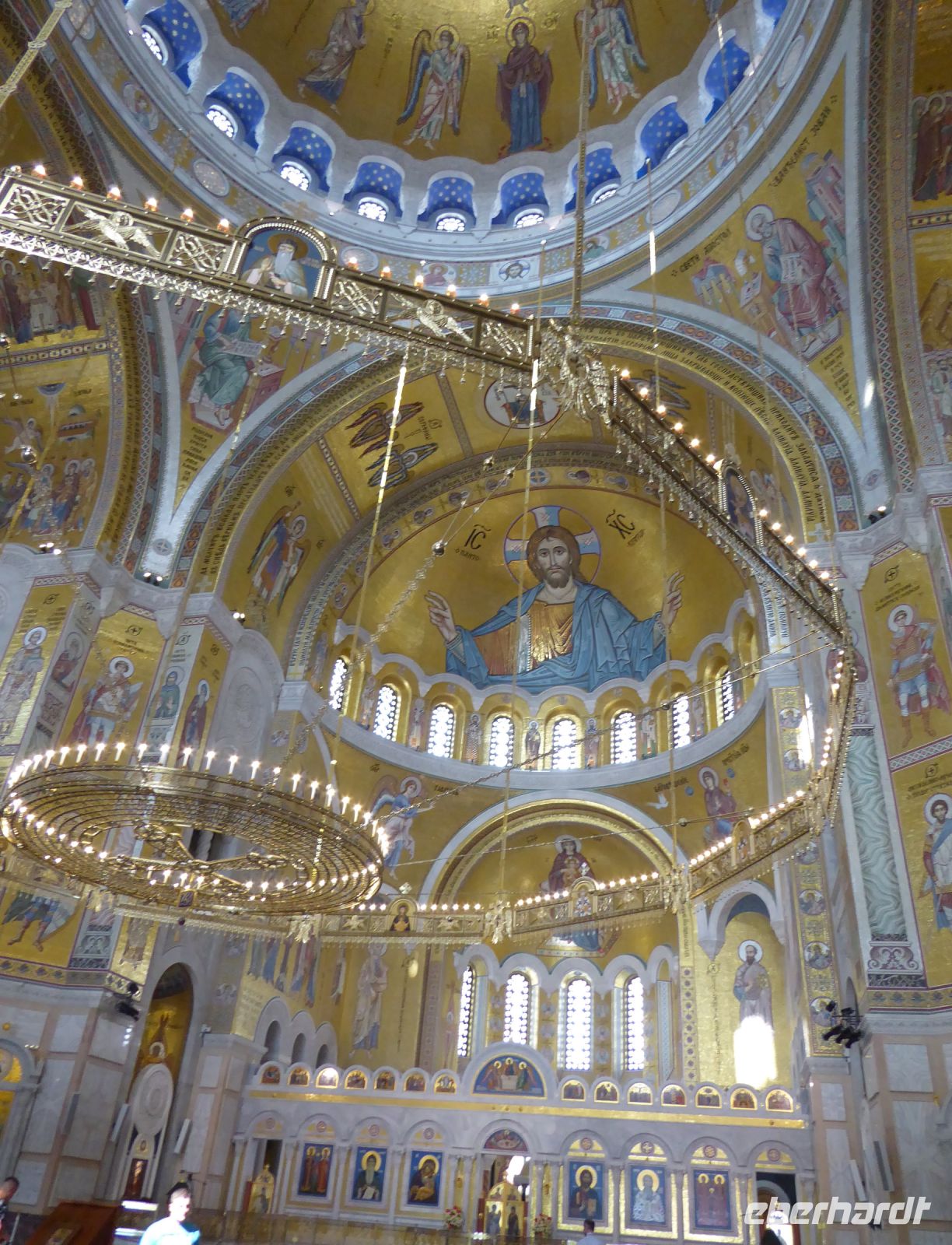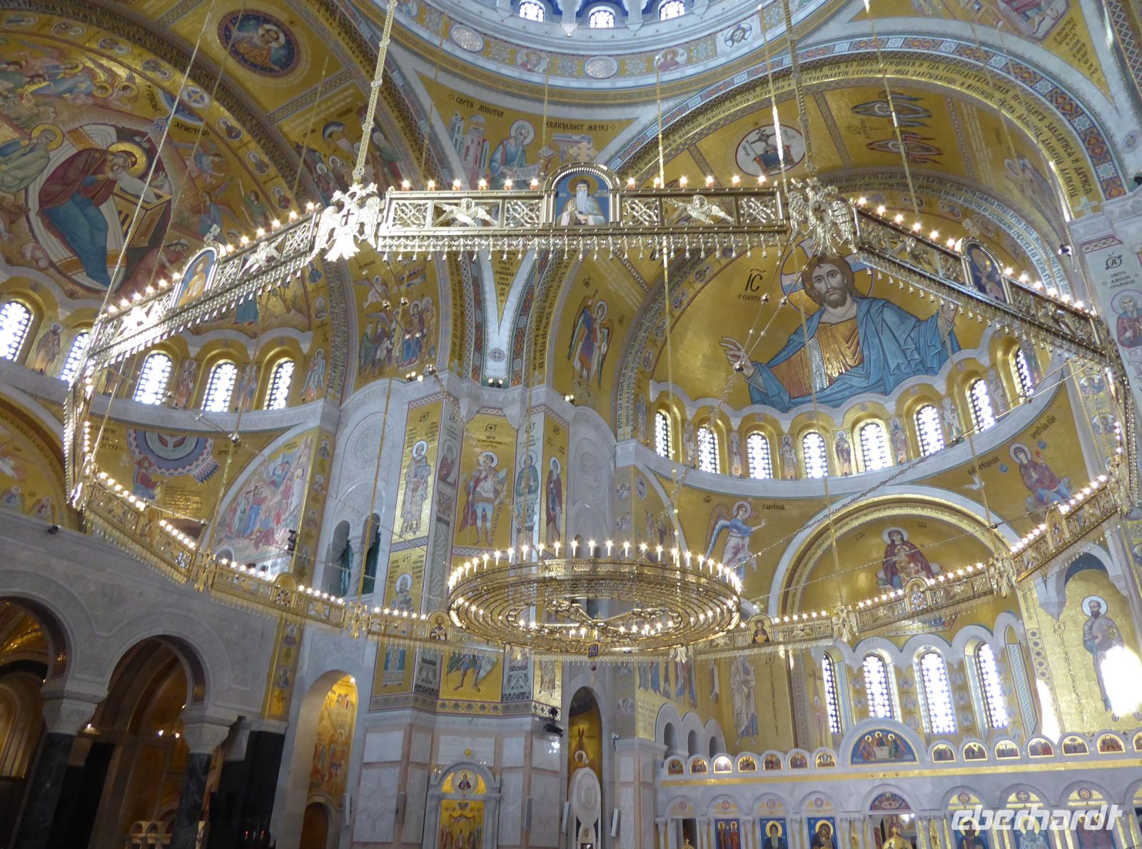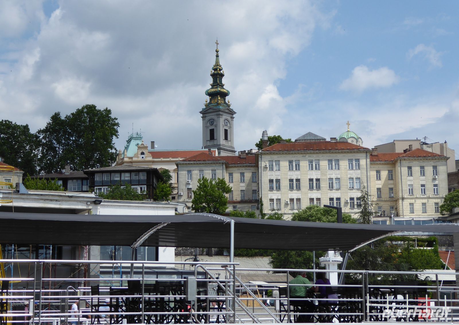Nach dem Mittagessen fuhr die die Prinzessin in die Save-Mündung ein und legte dort "im Päckchen" längsseits eines anderen Kreuzfahrtschiffes an. Dann kam der Serbische Zoll an Bord, und gegen 16.00 h war alles klariert, unsere Stadtbesichtigung konnte beginnen. Unsere hervorragende Stadtführerin Helena erklärte uns die Stadt auf der Fahrt zum orthodoxen Dom St. Sava. Dort gab es zeit zu fotografieren und eine sehr gute Innenführung.