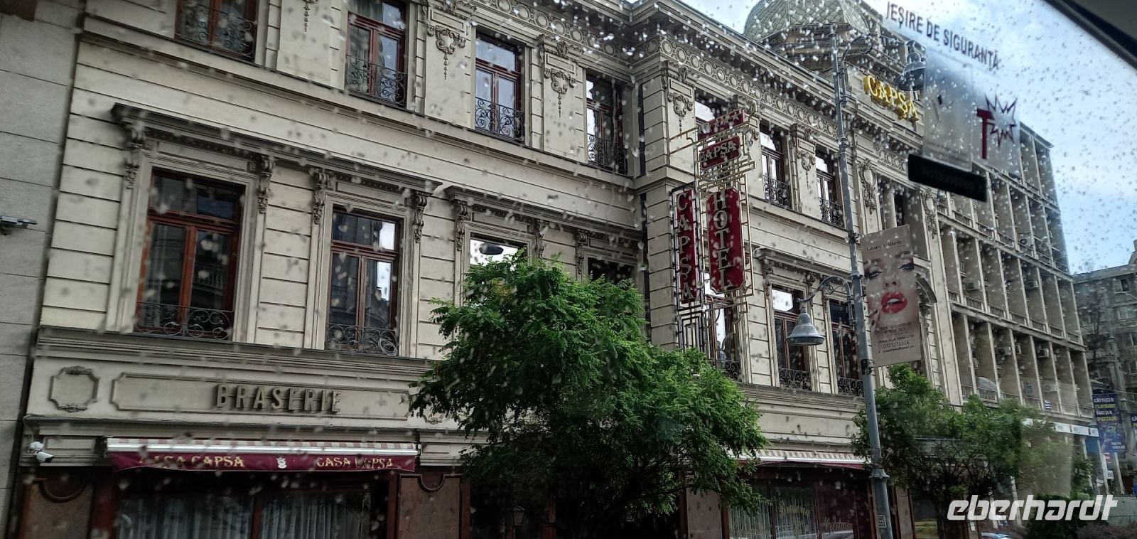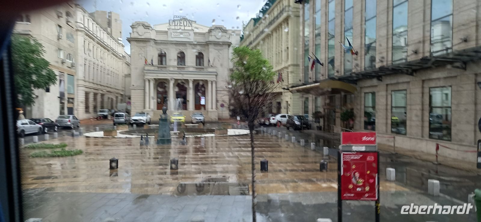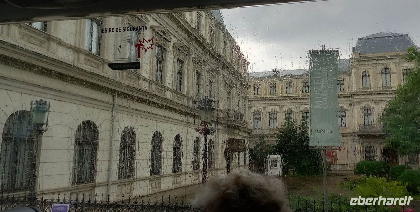 Wolkenbruchartige Regenfälle, die Straßen stehen voll Wasser. Wir sind froh, im Bus zu sitzen und nicht zu Fuß in der Stadt unterwegs zu sein. Durch überflutete Straßen verließen wir Bukarest und fuhren zurück zum Schiff.