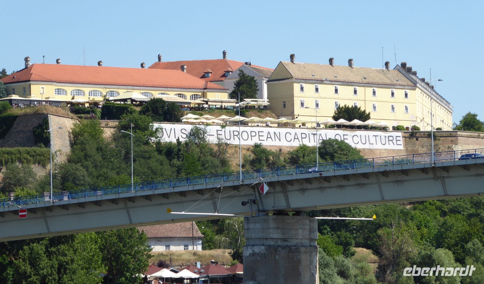 Nach dieser etwas unruhigen Nacht war genügend Zeit zum Frühstücken. gegen 10.00 h näherte sich unser Schiff der Stadt Novi Sad, an der wir heute aber nur vorbeifuhren. Unsere Hotelmanagerin Anna erklärte allerdings an Deck bereits, was zu sehen war. - Auf der Rückfahrt steht Novi Sad auf der Besuchsliste, da konnten wir mehr erfahren.