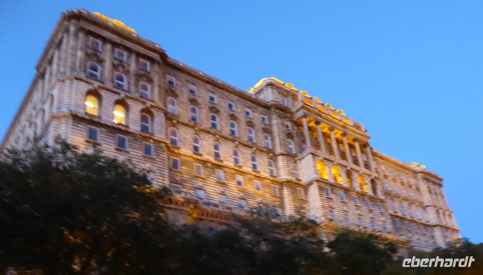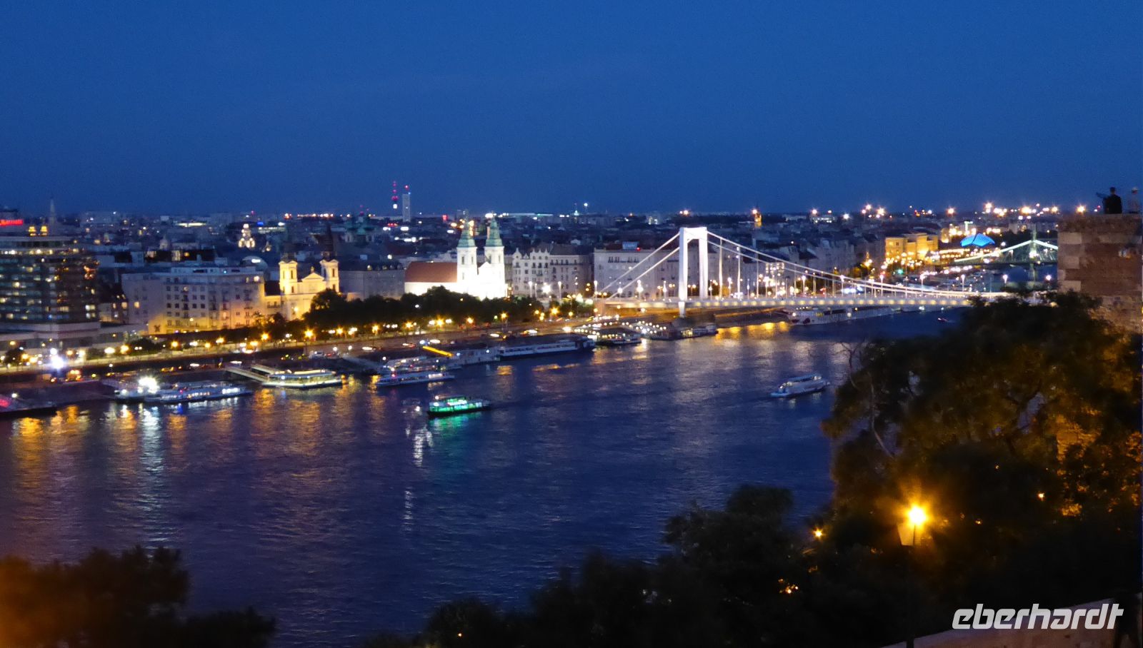 21.00 h Lichterfahrt fakult. – sehr schön: mit Fahrstühlen zur Burg auf der Buda-Seite war nur