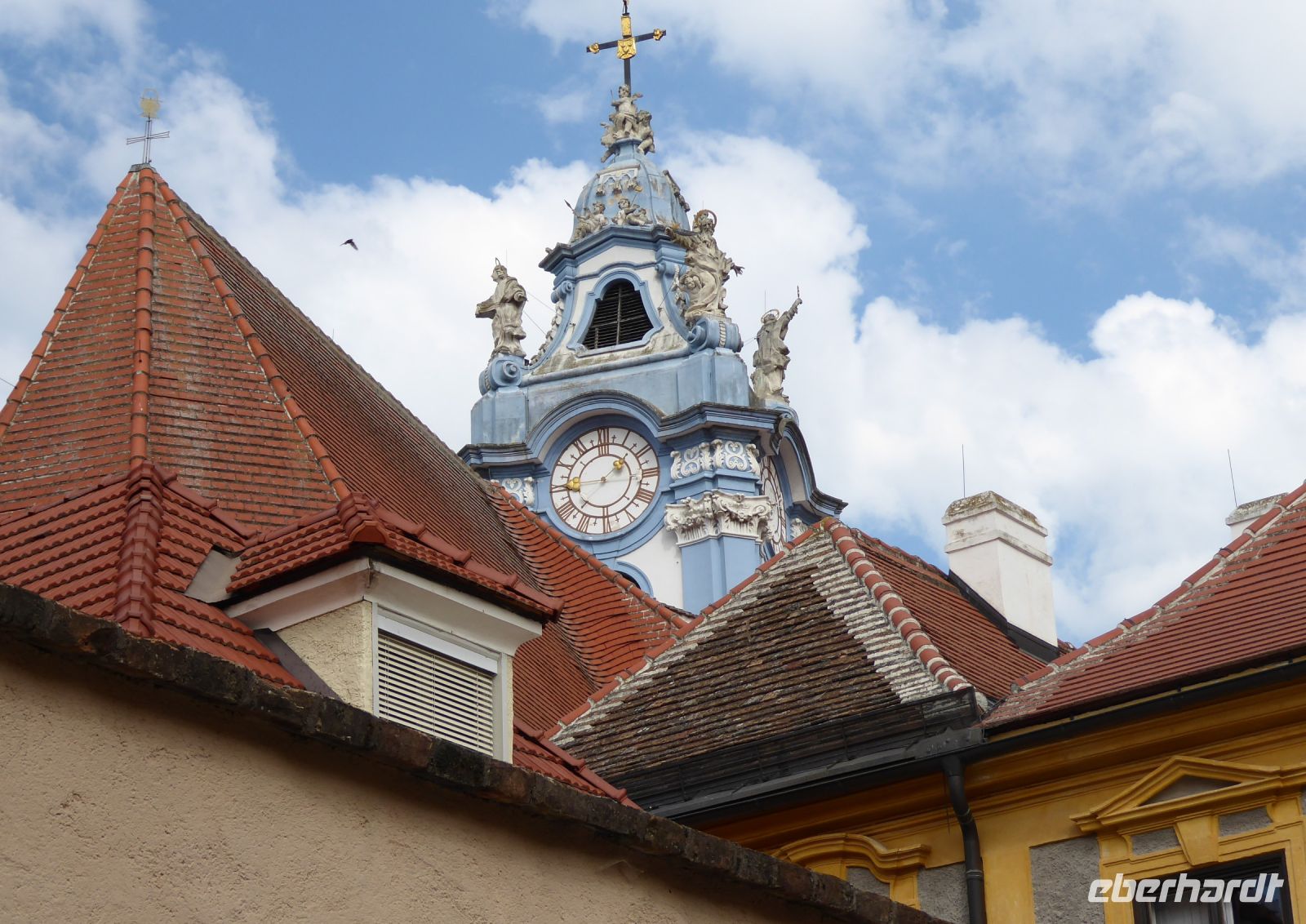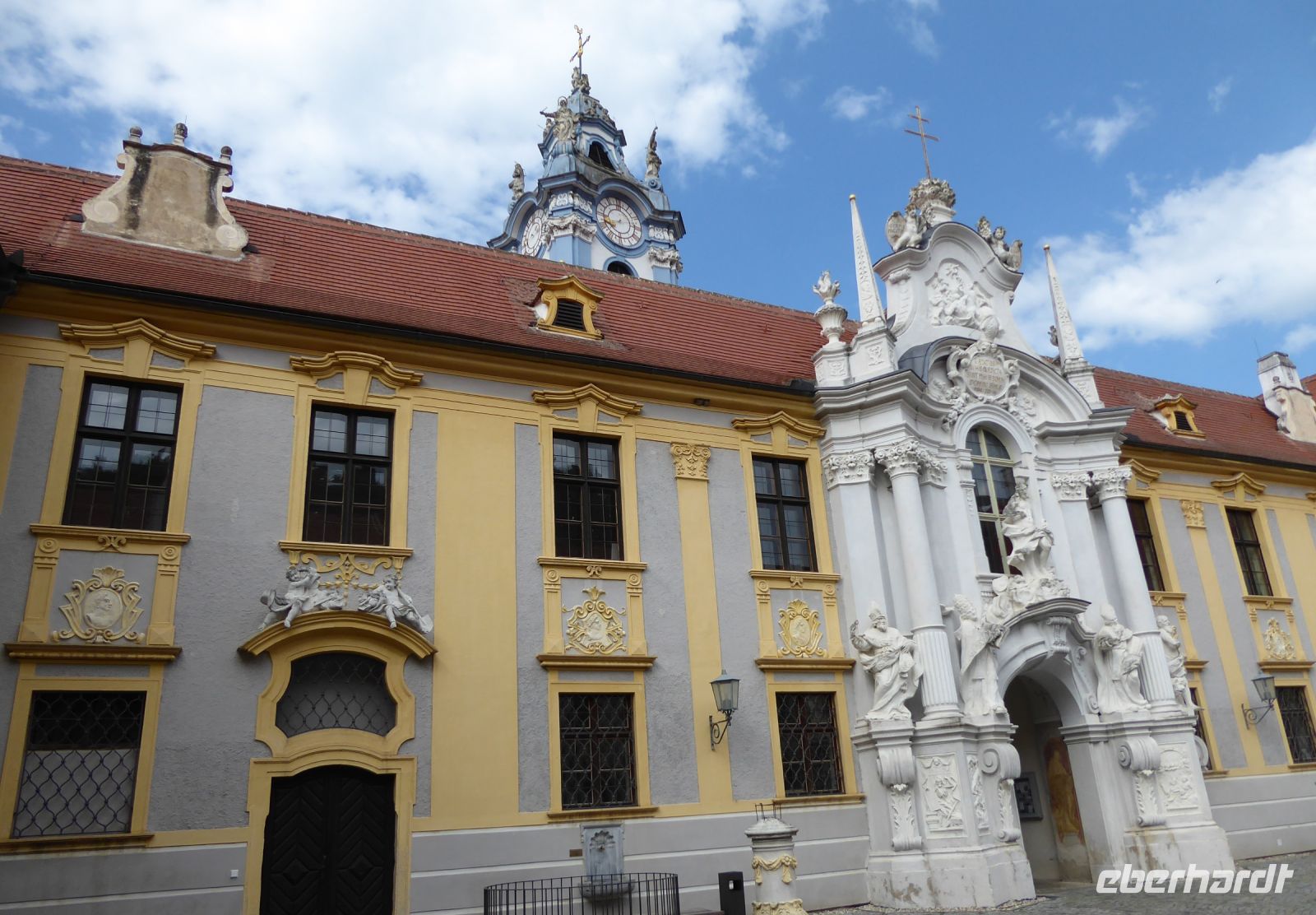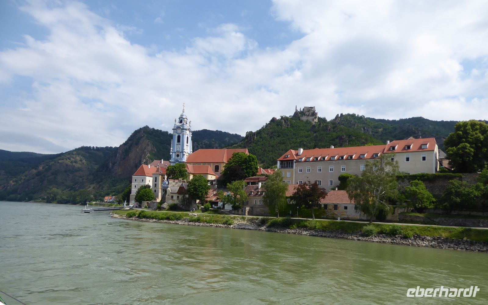 Nach dem Frühstück erfolgte die Abholung der Gäste durch die lokale Guides. Es gab auch die Möglichkeit, mit der „Bimmelbahn“ durch das Städtchen zu fahren, mit Guide an Bord. Wir gingen zu Fuß und hatten eine sehr gute Führung unseres jungen Guides. Wir gehen ein Stück auf der Promenade bzw. dem Donauradweg entlang. Von hier aus haben wir einen wunderschönen Blick auf die Ruine der Kuenringer Burg aus dem 12. Jahrhunder , in der einst Richard Löwenherz gefangen gehalten wurde. Durch schmale, steile Gassen erreichen wir das Zentrum des Städtchens Dürnstein.Wir sehen den Pranger und das Badhaus und das Kloster mit der barocken Stiftskirche. Unser lokale Führer zeigt uns noch das Rathaus und entlässt uns dann zu einer kurzen Erkundund des Städtchens auf eigene Faust mit anschließendem Fußweg zum Busparkplatz. Von hier aus bringt uns ein Bus nach Melk. Bekannt ist Melk für das wunderschöne, 2011 restaurierte Kloster aus dem 18. Jahrhundert. Das Stift gehört zu den herausragenden barocken Bauten Europas und thront oberhalb der Donau. Wir erkunden den frei zugänglichen Teil des Gartens und die Höfe dieser riesigen Anlage und können auch einen Blick in die grandiose baracke Stiftskirche werfen. Auch hier gibt es noch etwas Zeit zum Shoppen und Fotografieren. Dann wartet auch schon unser Bus, um uns zurück an Bord zu bringen.