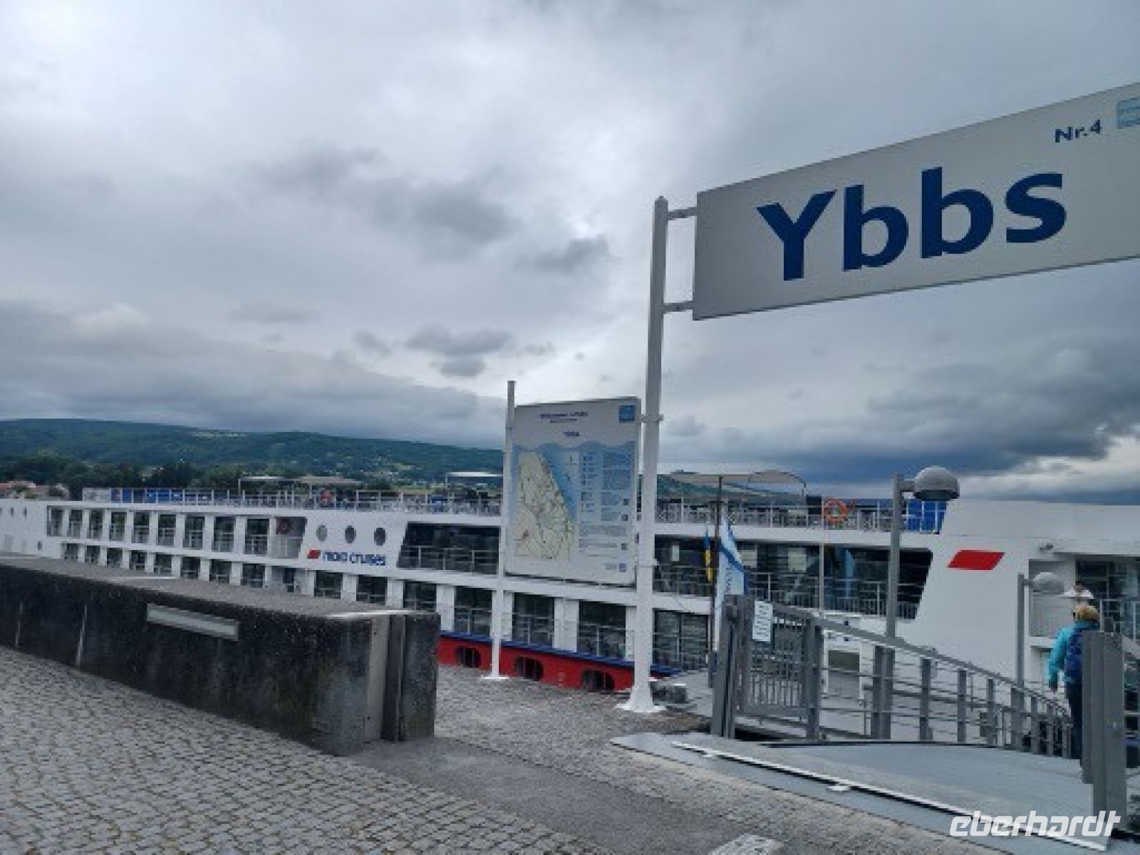 Der anschließende Rundgang mit Edeltraud im Ort Ybbs führt uns am Donauufer entlang. Nach der Durchquerung kleiner Gassen sehen wir das Rathaus u. besichtigen das alte Schiffsmeisterhaus, in dem Kunstschaffende heute eine Kunstgalerie betreiben. Hier wartet auch ein kleiner Marillenumtrunk auf uns. Sechs Gäste der Gruppe haben parallel zu unserem Ausflug die Schleuse Ybbs-Persenbeug besichtigt. Das 1959 fertiggestellte Kraftwerk dient hauptsächlich der Stromerzeugung, aber auch zur Sicherung der Donaudurchfahrt beiYbbs. Die Gäste, die das Laufkraftwerk besichtigen, finden es technisch sehr eindrucksvoll.