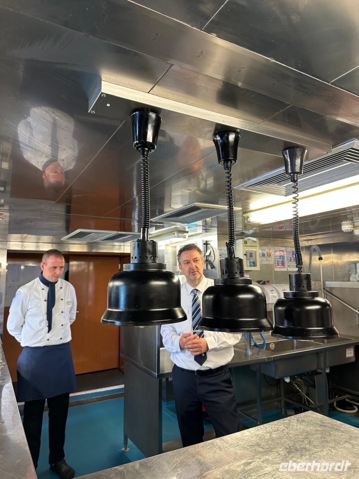 Am Nachmittag moderiert Steffi eine Bildpräsentation „Hinter den Kulissen“ der Viktoria. Die Gäste erfahren interessante Details über die Logistik in den Abteilungen des Schiffes: über Müllentsorgung, Wasserklärung, Stromerzeugung u. -verbrauch, über den Kiloverbrauch an Lebensmitteln auf unserer Reise u.a. technische Details. Außerdem erfahren die Gäste, wie man Kreuzfahrtleiterin wird.