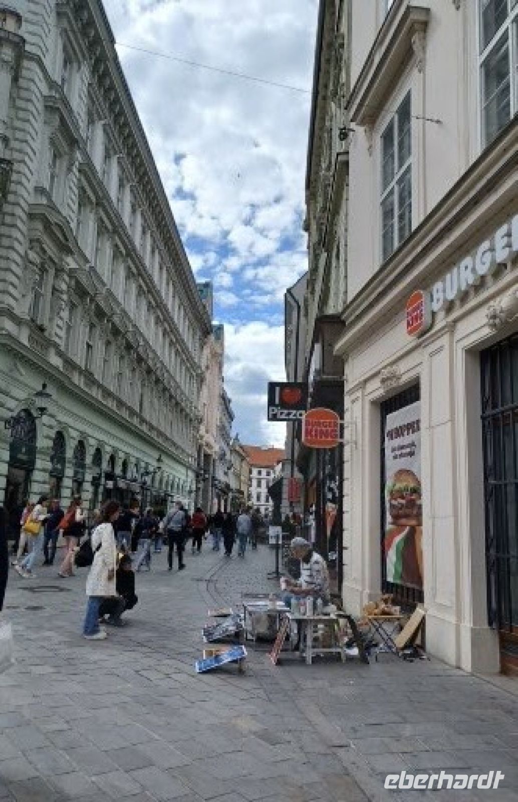 In der Altstadt sind wir überrascht von den schön restaurierten Gassen, der Lebendigkeit in den Straßen u. den, das Stadtbild prägenden, historischen Bauten (Michaelertor, Rathaus Krönungskirche, Nationaltheater). Im Caféhaus finden wir uns auf einen Espresso ein u. bestellen auf Empfehlung des Kellners eine ungarische Dessertspezialität u. man wünscht uns "guten Appetit" auf Ungarisch (Jó étvágyat). Immer wieder bewundern wir auf unserer Reise die selbstverständliche Mehrsprachigkeit der Einheimischen.