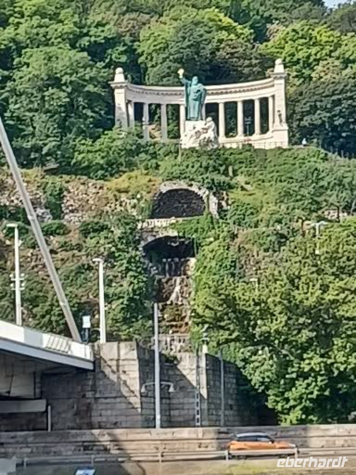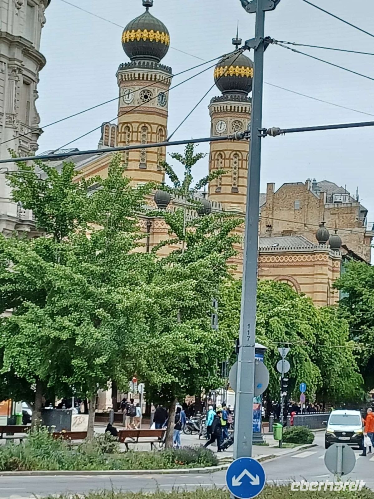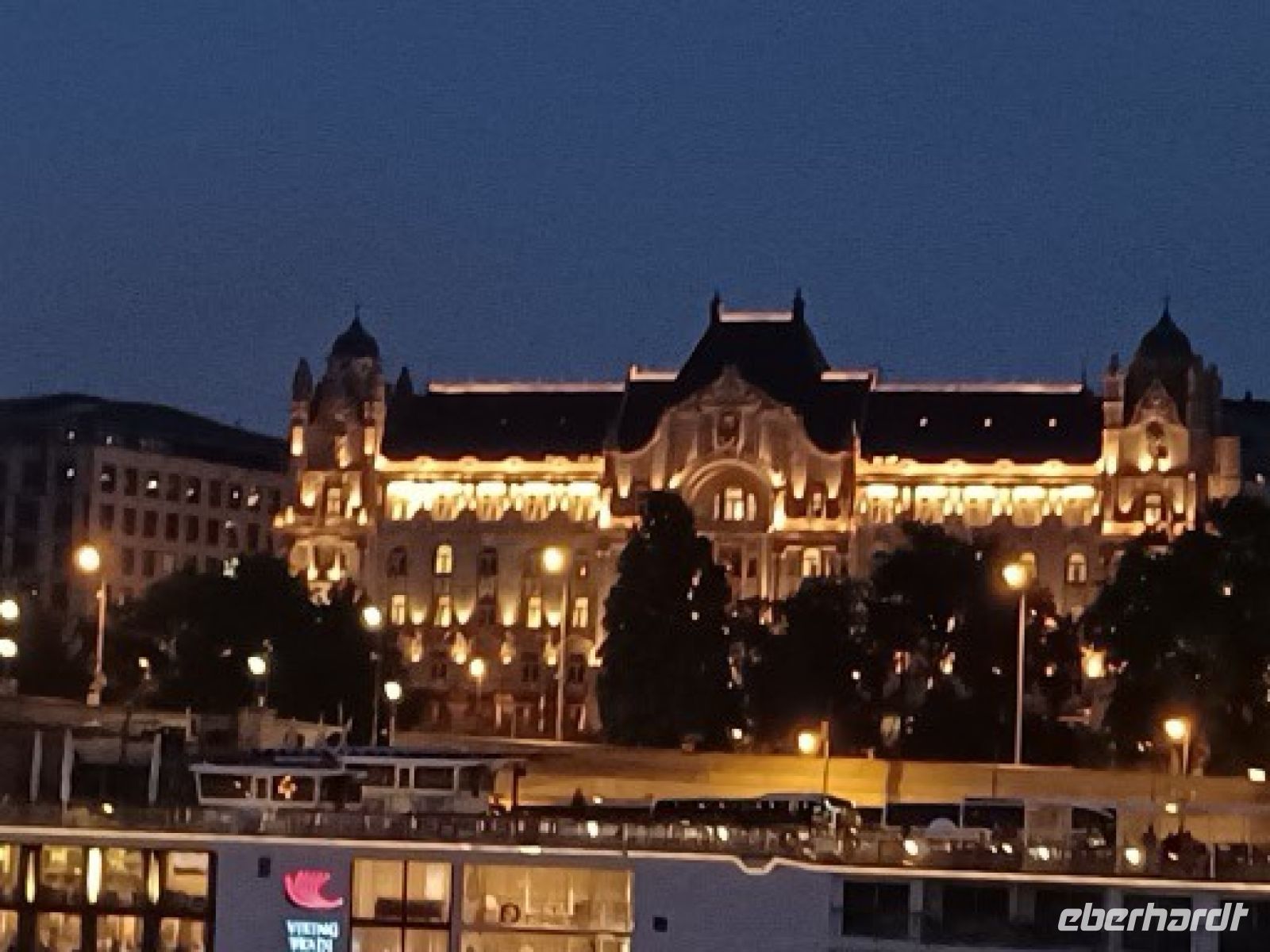 Markante Sehenswürdigkeiten auf der Pester Seite sind ebenfalls das Stadtwäldchen mit dem Heldenplatz u. den klassizistischen Museumsgebäuden, die Jüdische Synagoge u. das Opernhaus. Gästeführer Zoltan gibt zahlreiche Detailinfos zu allem Sehenswerten auf der Fahrt. Wir sind von der Fülle der Informationen beeindruckt u. die Aufnahmefähigkeit hat nach den drei Stunden fast die Grenze erreicht. Leider regnet es am Nachmittag in Strömen, so dass sich die Ausgangslust in Grenzen hielt. Zwei unserer Gäste trotzen dem Wetter, u. sie nehmen an dem 4-stündigen fußläufigen Spaziergang mit Bus, Metro u. Bahn teil. Auch der Auslauf aus Budapest als Lichterfahrt ist nur im Dauerregen erlebbar, so dass der Begleitaperitif in den ungarischen Landesfarben im Salon gereicht wurde.