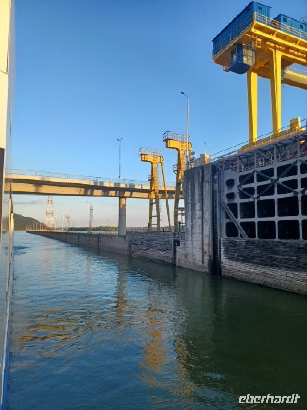 Die erste Nacht werden wir durch zahlreichen Schleusenfahrten geschüttelt, aber man gewöhnt sich daran u. an die Geräusche des Wellenschlages bei seichter u. bei stürmischer Fahrt. 19 Schleusen führt die Donau von der Quelle bis zur Mündung,; einige sind gleichzeitig mit einem Wasserkraftwerk gekoppelt. Nach einem guten Frühstück erfolgt die Vorstellung des 2. Programmblocks für die Ausflüge Solt/Mohács u. Belgrad.