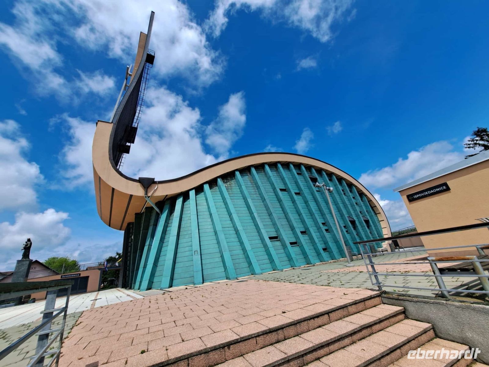 Anlandung in Almas` (Kroatien) am Morgen. Der Ausflug nach Osijek ist ein Zusatzangebot. Für Gäste, die nicht buchen, sie können durch das Dörfchen spazieren u. die moderne „Schwanenhals Kirche“ Außen u. Innen besichtigen (sehr sehenswert). Almás ist die ungarische Bezeichnung für "Apfel" u. ist ein kleiner Wallfahrtsort. Hieran erkennt man bereits die Mehrsprachigkeit in diesem Gebiet. Die Kinder lernen bereits in der 1. Klasse eine zweite u. auch dritte Sprache, wie Serbisch, Ungarisch oder Englisch. 24 Gäste haben den Ausflug gebucht. Wir fahren 30 Minuten durch Dörfer bis nach Osijek - einer touristisch weniger bekannten Stadt, aber sehr sehenswert u. daher zu empfehlen. Gästeführerin, Sermanta, führt sprachlich u. informativ sehr gut.