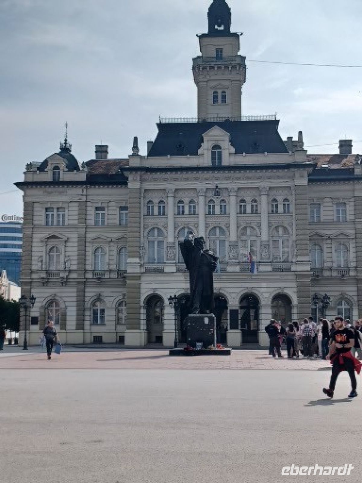 Am Vormittag führt die Flussfahrt vorbei an Belgrad mit einem schönen Stadtblick. Schließlich erreichen wir Novi Sad, die zweitgrößte Stadt Serbiens. Alle Eberhardtgäste erkunden Novi Sad individuell. Wir liegen bis 22:30 Uhr, so dass nach dem Abendessen die beleuchtete Stadt noch einmal besucht werden kann. Die Stadt gefällt allen sehr gut. Sie ist einladend, übersichtlich, mit vielen Restaurants, die sich wie eine Perlenkette aneinander reihen. Bemerkenswert ist die Konzentration von bedeutenden Museen in der Nähe des Schiffsanlegers. Hier kann man neben Kunst auch alles über die Serbische Geschichte erfahren sowie über die Nationalkultur. Einige Gäste erkunden das Burgviertel u. die Innenstadt, die Mehrheit konzentriert sich für zwei Stunden lauftechnisch auf die Innenstadt. Auf der Burg genießt man den Blick auf die Stadt u. Landschaft. Auch hier gibt es ein Museum über die Burggeschichte. Am Abend genießen wir die Ausfahrt durch beleuchtete Brücken u. vorbei an der Burg. Es ist regnerisch.
