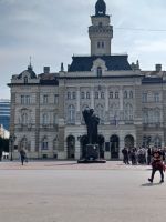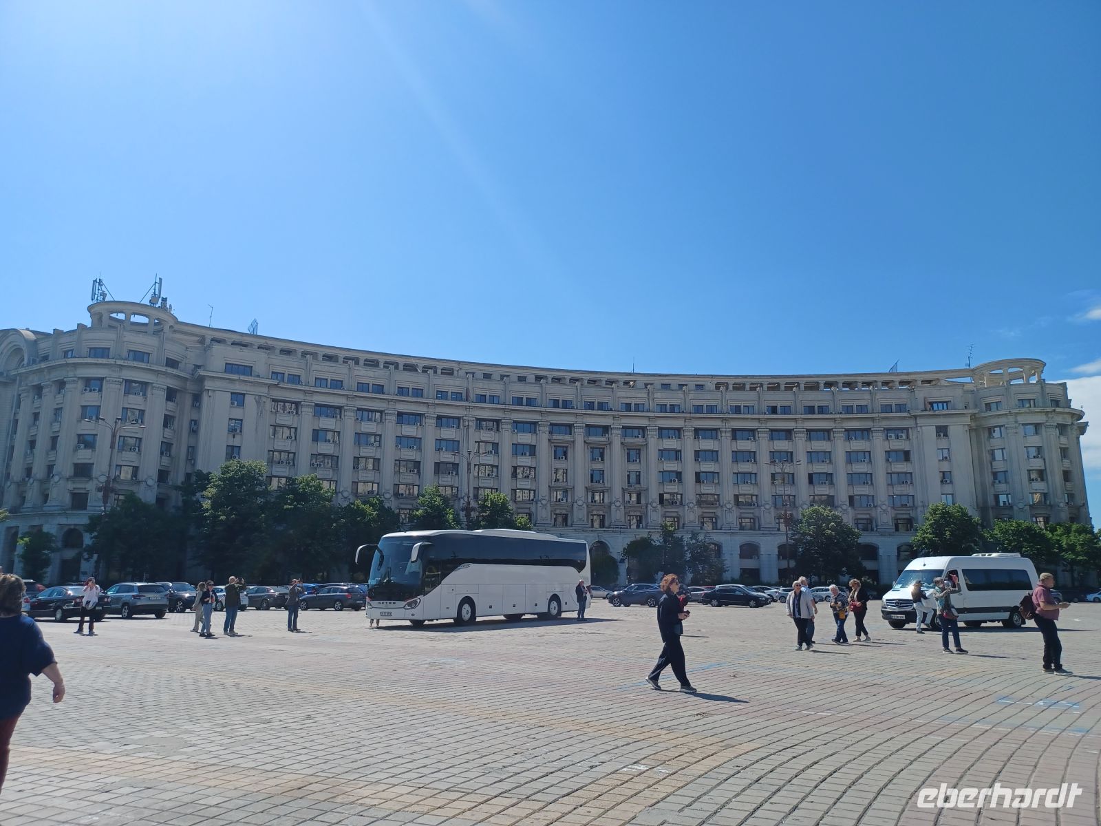In der Altstadt verlassen wir wieder den Bus und spazieren vorbei an der Nationalbank, zum ehemaligen Schloss. Auf dem Revolutionsplatz hören wir von der Protestbewegung in der Wendezeit, die auf dem Platz auch Todesopfer zu beklagen hatte.