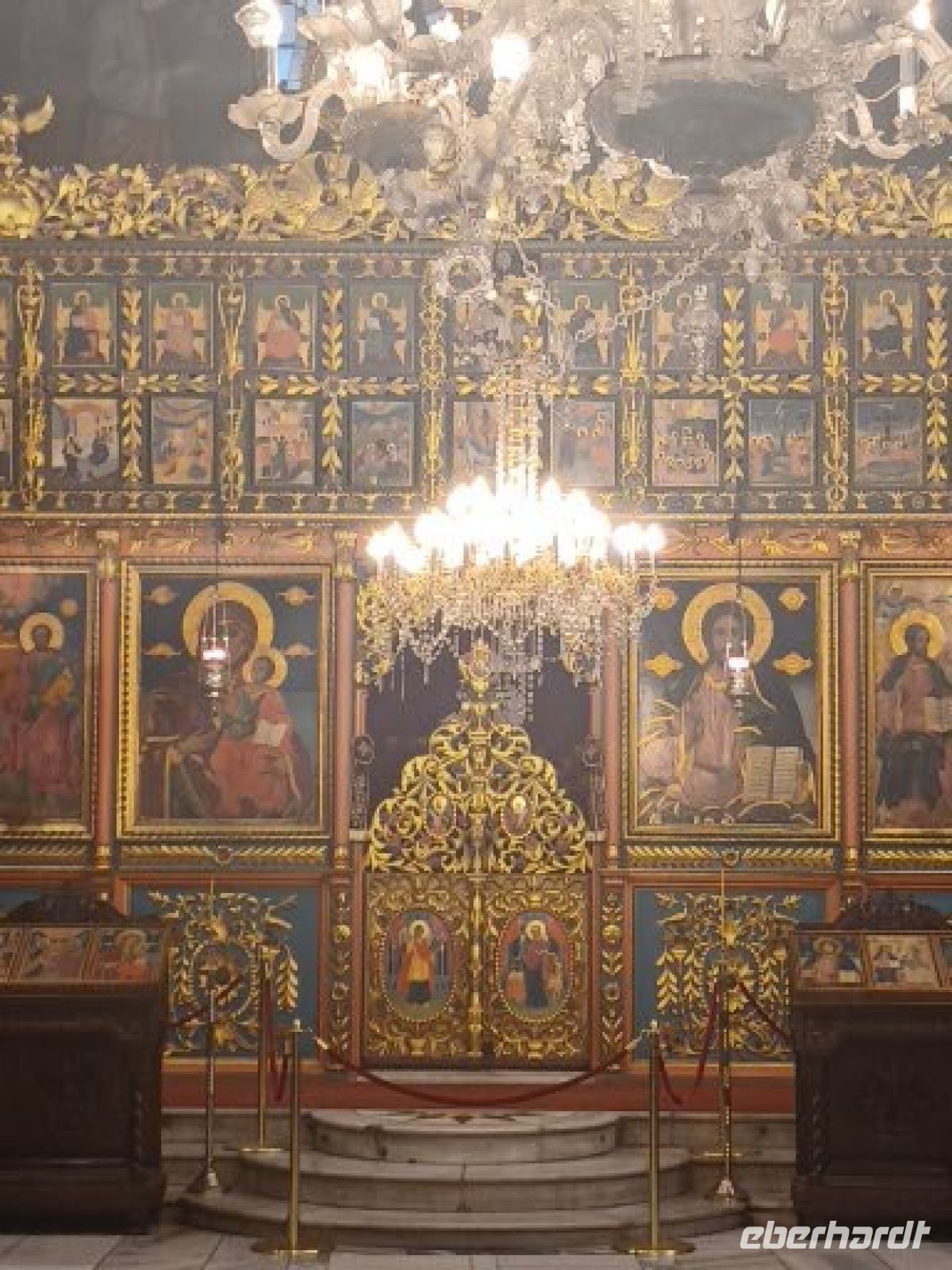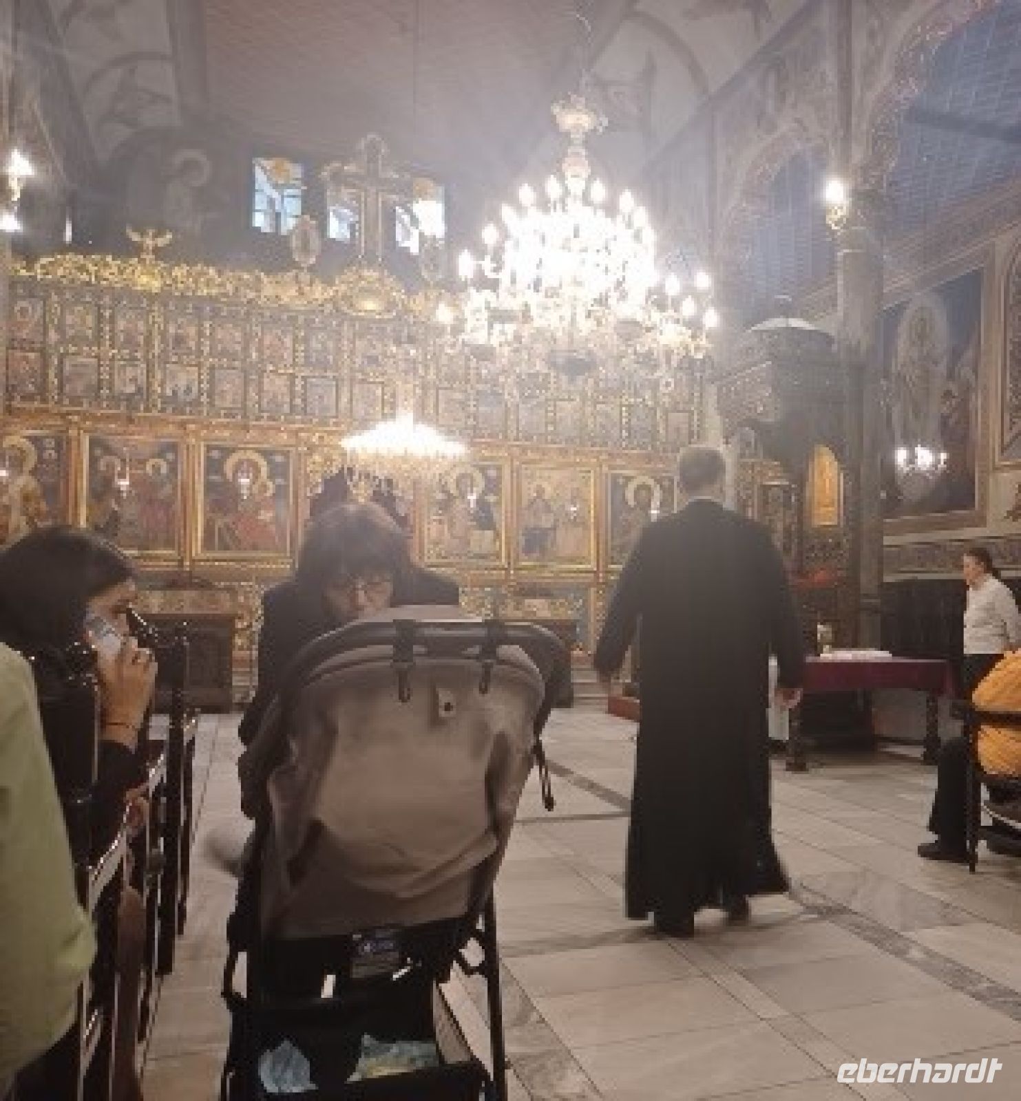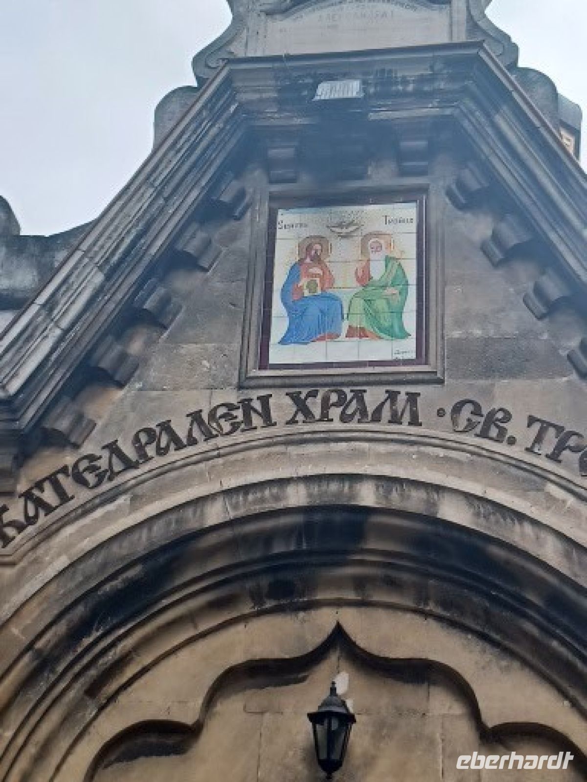 Am Vormittag werden wir mit einem Lied über Rousse, die Stadt der Rosen, auf unsere Stadtexkursion eingestellt. Überhaupt sei hier zu erwähnen, dass die Schiffsreiseleitung der MS Voktoria zu jeder Stadt u. jedem Abschnitt Songs in Auftrag gegeben hat, die wir am Ende der Reise mit einem Schiffsstick erwerben können. Gästeführerin, Kornelia aus Rousse, führt informativ u. ist leidenschaftlich engagiert, ihre Heimatstadt mit positiven Eindrücken vorzustellen. Uns imponieren die vielen Grünstreifen entlang der Straßen u. die zahlreichen Parks, die im Sommer die Hitze erträglicher machen. Zunächst halten wir in einem Restaurant zum 2. Frühstück mit einer Spezialität, Banistsa - eine landestypische Quarktasche. Es beginnt eine Folkloredarbietung, die auch einen Maskentanz zur Vertreibung böser Geiser einschließt. Am Ende wird die Reiselebegleiterin zur Schrittübung eingeladen, wobei sie über den eigenen Schnüsenkel fast zu Fall kommt. Aber immerhin schließen sich weitere Gäste dem Reigentanz an. Ein Spaziergang durch die Altstadt folgt: durch die Hauptstraße der Altstadt mit dem Freiheitsdenkmal, und auch das Rathaus u. die Oper sind sehenswert. Wir besichtigen die älteste orthodoxe Kirche der Stadt. Da unter der türkischer Herrschaft orthodoxe Gebetsräume nicht neben Moscheen ebenerdig geduldet wurden, hat man die, mit Ikonen geschmückten religiösen Räume unter die Erde gebaut. So steigen wir auch hier die Treppen in den Gebetsraum hinab. Eine Taufe wird vorbereitet.