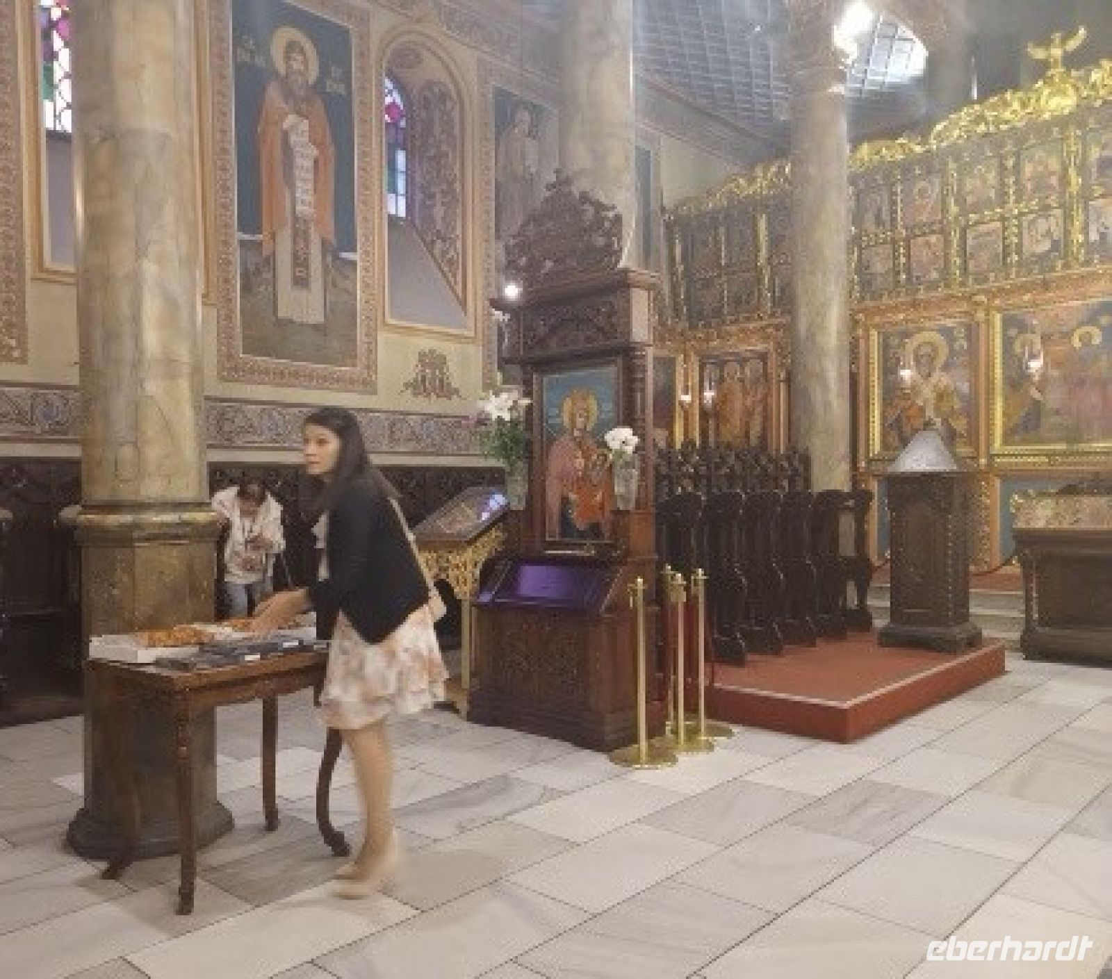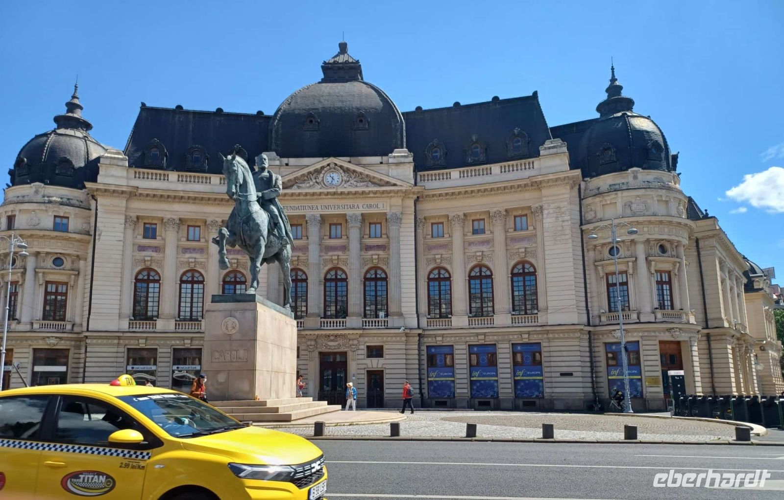 Unser Bus wird im Kreisverkehr von einem PKW angefahren. Die Unfallregelung erfolgt während unseres Ausstiegs am Revolutionsplatz. Wir spazieren durch die Innenstadt bis zum Kloster im byzantinischen Stil. Wir haben dort Freizeit mit einer Empfehlung, Innenfotos im ältesten Restaurant „Caru`cu bere“ (`1879) zu machen oder ein landestypisches Dessert zu probieren.