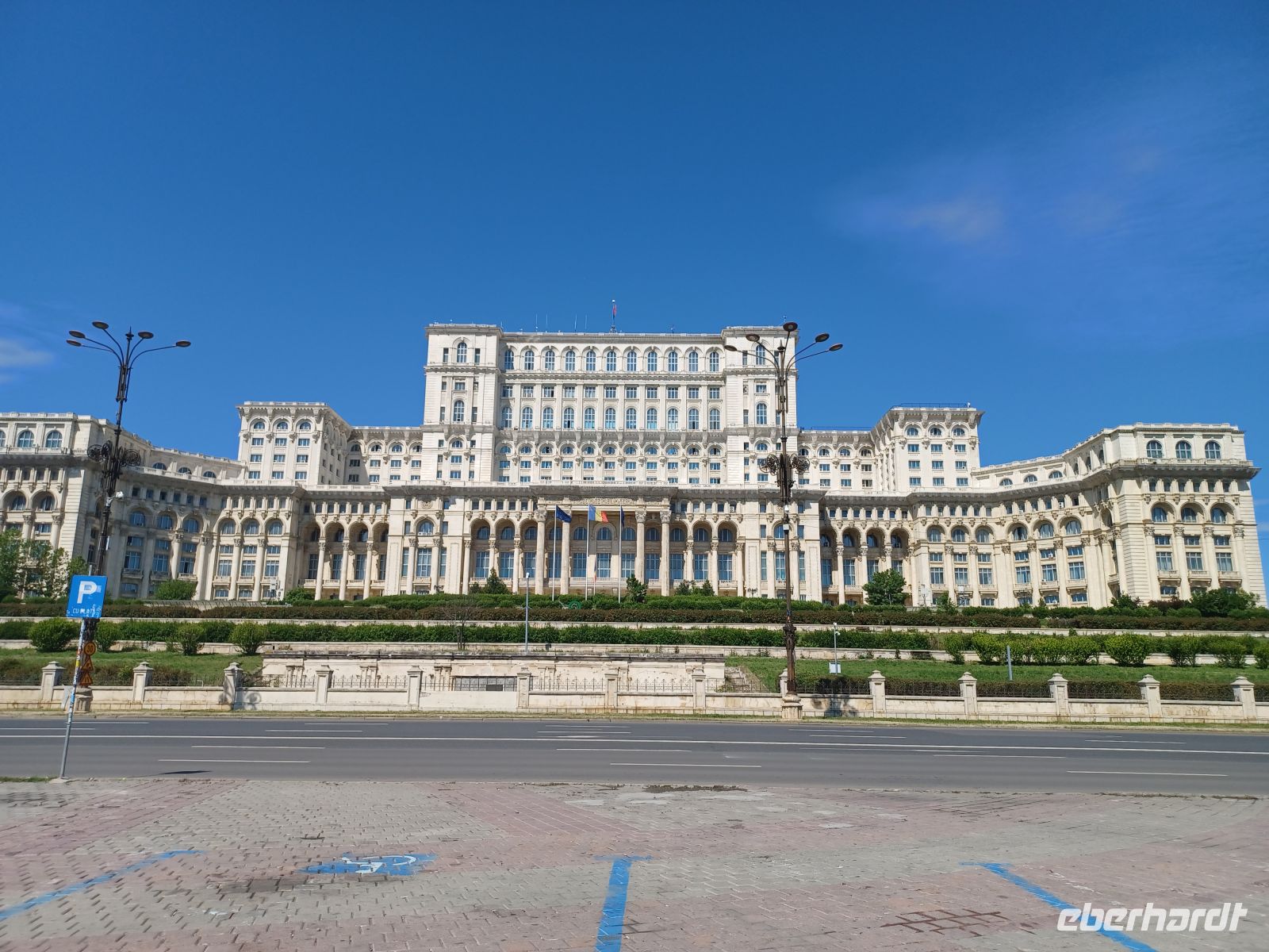Unseren ersten Halt mach wir am monströsen Parlamentspalast, den Ceausescus erbauen ließ, der jedoch unvollendet bis heute blieb. Das ehemalige Staatsoberhaupt lies damals für den Bau etwa ein Fünftel der Altstadt abreißen und 40.000 Einwohner wurden umgesiedelt. Noch heute ist es das zweitgrößte Gebäude der Welt mit 260.000 qm und zählt etwa 6000 Räume. Es gibt 12 Stockwerke, davon 6 unterirdisch, z.B. zum Verteidigungsministerium oder zur U-Bahn.