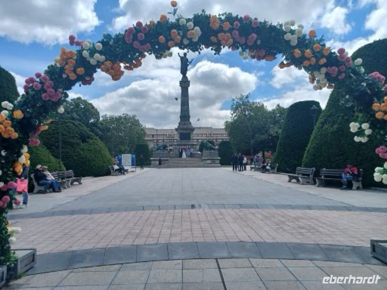 Wir fahren von der Donauanlegestelle Wien-Nussdorf entlang des Donaukanals nach Wien u. zu den bekanntesten Sehenswürdigkeiten an der Ringstraße, die 4,5 km das Stadtzentrum umsäumt u. durch Parks u. Prachtbauten glänzt: die Karlskirche, der Wiener Musikverein, die Staatsoper, das Parlamentsgebäude und das Rathaus. Wir setzen nach einer Fahrtstunde die Besichtigung fußläufig fort, spazieren durch den Volksgarten mit 3300 Rosenstöcken. Ein Teil von ihnen hat Bürgerpaten. Diese erhalten im Gegenzug die Möglichkeit eine persönliche Botschaft an einen lieben Menschen in Gravur an den Rosenstock zu setzen. Über Sissi werden wir von unserem Gästeführer etwas ernüchternd aufgeklärt. (Das gleicht der Gästeführer später in Budapest nach unseren Wunschvorstellungen über das Idealbild Sissi wieder aus). Am Kanzleramt folgen einige Anmerkungen zur aktuellen Kanzlerwahl in Wien seitens des Gästeführers. Schließlich gelangen wir zum Innenhof der Hofburg und zum Michaelerplatz. Natürlich erinnert das Wiehern der Fiakerpferde an die Tradition der Spanischen Hofreitschule. Wir passieren den Kohlmarkt und den Graben mit der Pestsäule zum Stephansdom. Wir besichtigen individuell das gotische Bauwerk u. nutzen die Freizeit für einen Wiener Kaffee oder einen Blick in ein Souvenirgeschäft. Später fahren wir zurück vorbei am Prater mit dem gigantischen Riesenrad. Die Schiffsausfahrt führt wieder auf die Donau u. wir erblicken den modernen Stadtteil von Wien - die UNO-City mit den zwei fertigen Bürotürmen. Der Dritte befindet sich in Vollendung.
