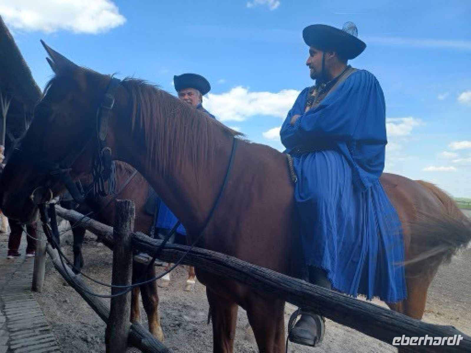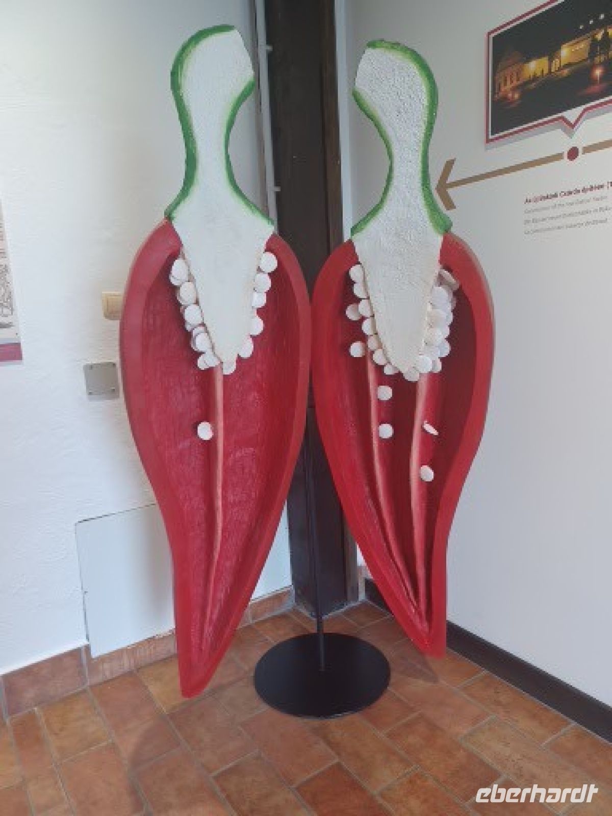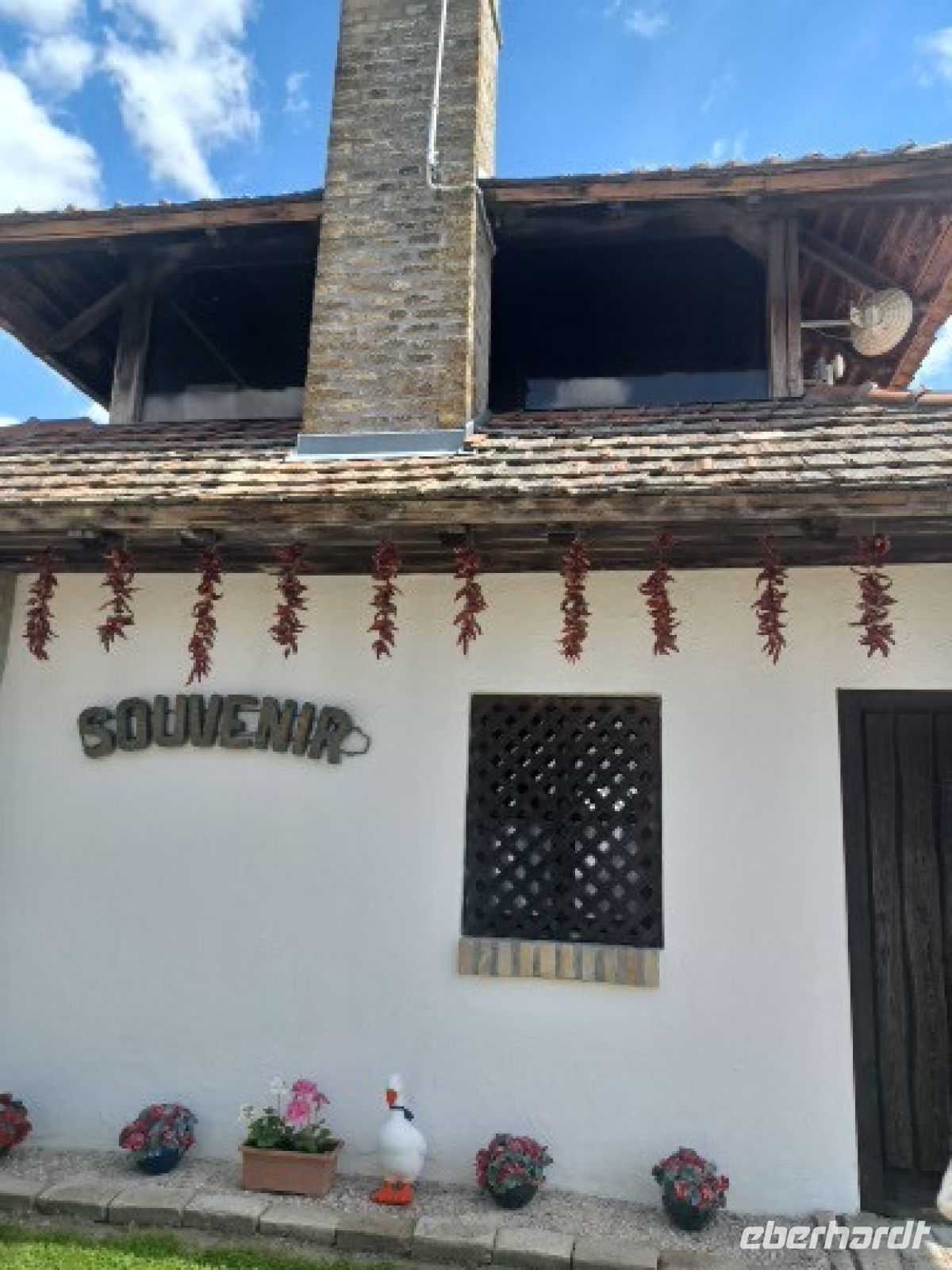 Wie ergeht es den anderen 16 Gästen, die den Ausflug in die Puszta gewählt haben? Der Weg ist das Ziel...wir fahren durch einen Teil der ungarischen Tiefebene u. erfahren von der Gästeführerin, Viktoria, über Probleme der Landwirtschaft, des Klimawandels, wie Trockenheit. Auch der Fachkräftemangel ist ein durchgehendes Problem in Südosteuropa. All diese Themen führen letztlich dazu, dass Ungarn als bekanntes Lebensmittelexportland nun auch Lebensmittel importieren muss. Viktoria stimmt uns über die Besonderheiten der Puzsta ein bis wir schließlich in Kalocsa, die berühmte Paprikagegend mit der Bacos Puszta, erreichen. Pferde -u. Kutschenvorführungen werden von Gästeführern kommentiert; ebenfalls der Besuch des Paprikamuseums. Es bietet sich die Gelegenheit zur Besichtigung der Stallungen u. zum Erwerb von traditionellen ungarischen Produkten. Schmalzbrote u. Getränkesäfte sowie Wein- u. Marillenschnaps (Barask Palinka) werden verkostet. Nun dürfen wir selbst die Kutschen besteigen, u. werden über Weiden direkt zu den Rindern, Schafen u. Pferden gefahren. Alle Tiere werden in Freilandzucht gehalten. An der Kutschfahrt nehmen bei schönem Wetter alle Gäste teil.
