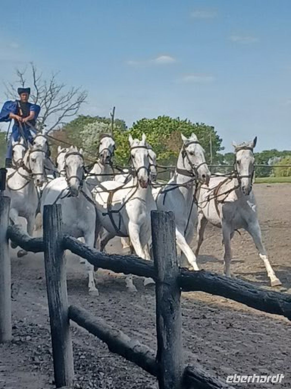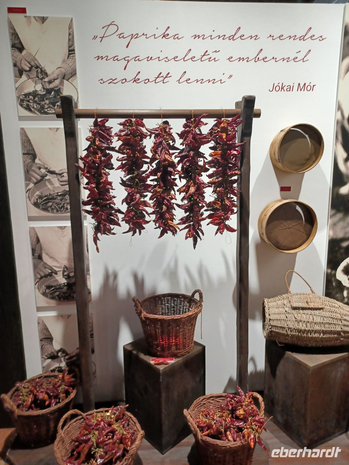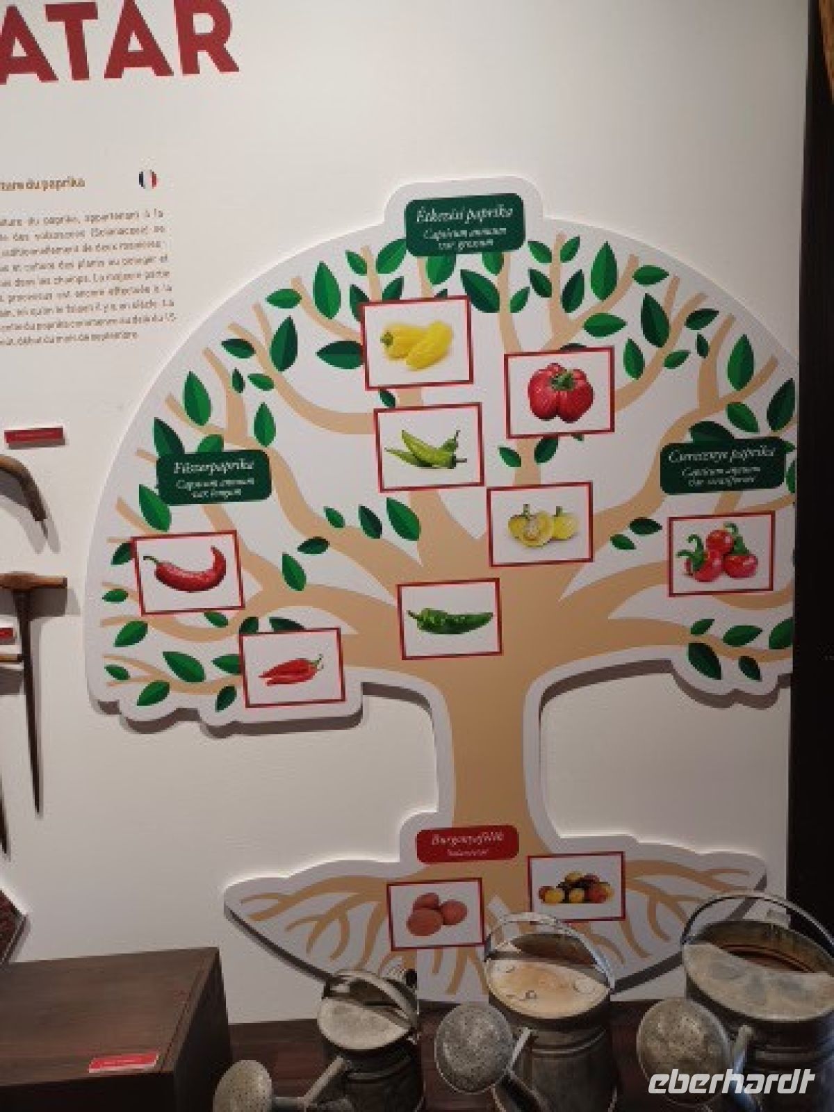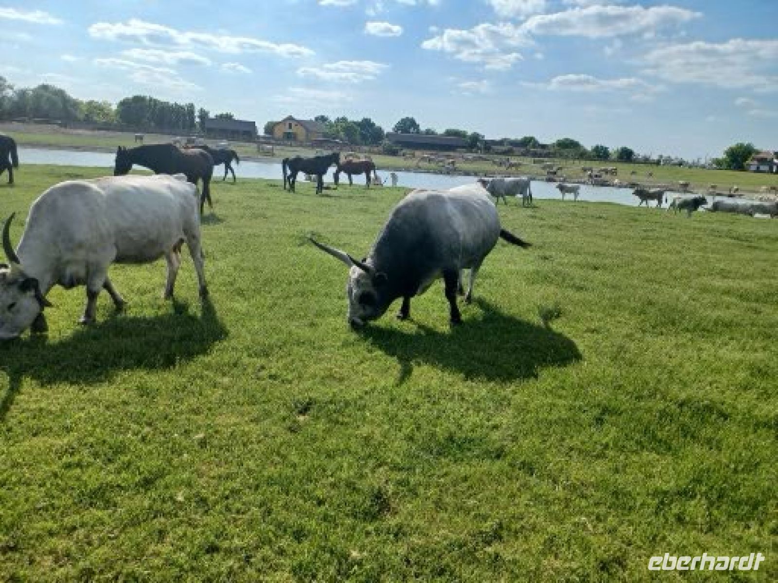 Wie ergeht es den anderen 16 Gästen, die den Ausflug in die Puszta gewählt haben? Der Weg ist das Ziel...wir fahren durch einen Teil der ungarischen Tiefebene u. erfahren von der Gästeführerin, Viktoria, über Probleme der Landwirtschaft, des Klimawandels, wie Trockenheit. Auch der Fachkräftemangel ist ein durchgehendes Problem in Südosteuropa. All diese Themen führen letztlich dazu, dass Ungarn als bekanntes Lebensmittelexportland nun auch Lebensmittel importieren muss. Viktoria stimmt uns über die Besonderheiten der Puzsta ein bis wir schließlich in Kalocsa, die berühmte Paprikagegend mit der Bacos Puszta, erreichen. Pferde -u. Kutschenvorführungen werden von Gästeführern kommentiert; ebenfalls der Besuch des Paprikamuseums. Es bietet sich die Gelegenheit zur Besichtigung der Stallungen u. zum Erwerb von traditionellen ungarischen Produkten. Schmalzbrote u. Getränkesäfte sowie Wein- u. Marillenschnaps (Barask Palinka) werden verkostet. Nun dürfen wir selbst die Kutschen besteigen, u. werden über Weiden direkt zu den Rindern, Schafen u. Pferden gefahren. Alle Tiere werden in Freilandzucht gehalten. An der Kutschfahrt nehmen bei schönem Wetter alle Gäste teil.