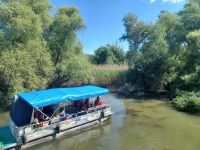 Ankunft in Braila (Rumänien) u. um 6:30 Uhr Frühstück. Bereits um 7:30 Uhr starten die Ausflüge zunächst per Bus ins Donaudelta. Die Schiffe dürfen aus Sicherheitsgründen aufgrund der Kriegssituation in der Ukraine nicht mehr bis Tulcea fahren, daher starten die Ausflüge ins Delta per Bus ab Braila bis Tulcea. Als Ausgleich wurde die Deltafahrt mit dem großen Schiff für alle Gäste an Bord ins Ausflugspaket includiert. 17 Gäste nehmen die Tour mit dem Ausflugsschiff, 11 Gäste fahren mit den Schnellbooten. Für den Bus mit der Schiffsgruppe führt Cosmin, Er moderierte nicht nur die Busfahrt durch die Walachei, sondern gibt auch die onthologischen Informationen auf dem Donaudelta.