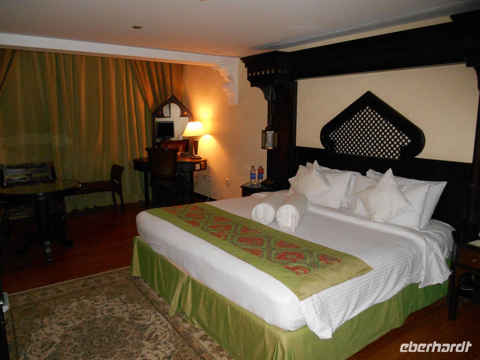 Einen Großteil unserer Gruppe traf ich bereits gegen 9 Uhr am Flughafen in Dresden, wo wir uns bei einem gemeinsamen Frühstück schon etwas kennen lernen konnten. Gut gestärkt ging es anschließend nach Frankfurt, wo wir mit dem Rest unserer insgesamt "24-köpfigen Reisefamilie" zusammen kamen und es aufgrund einer nebelbedingten Flugverspätung gerade so schafften, unseren Anschlussflug nach Dubai pünktlich zu erreichen. Nichts desto trotz, alles klappte letztendlich prima und nach einem angenehmen 6-stündigen Flug mit Lufthansa landeten wir am Abend in Dubai. Nachdem wir alle Einreiseformalitäten erledigt hatten, wurden wir von unserer sympathischen örtlichen Reiseleiterin Anja (übrigens aus dem sächsischen Döbeln stammend!) herzlich begrüßt. Kurz nach 23 Uhr kamen wir im zentral gelegenen Hotel Arabian Courtyard Hotel & Spa, unserem Domizil für die nächsten zwei Nächte, an. Es befindet sich direkt gegenüber vom Dubai Museum und ist ganz einfach der ideale Ausgangspunkt, um Sehenswürdigkeiten zu besuchen. Die geräumigen Zimmer sind komfortabel und im arabischen Stil eingerichtet.