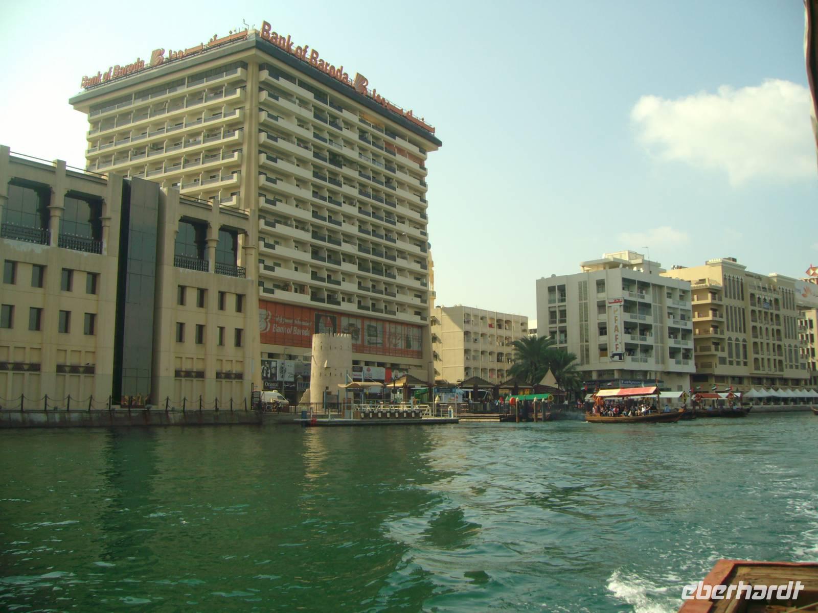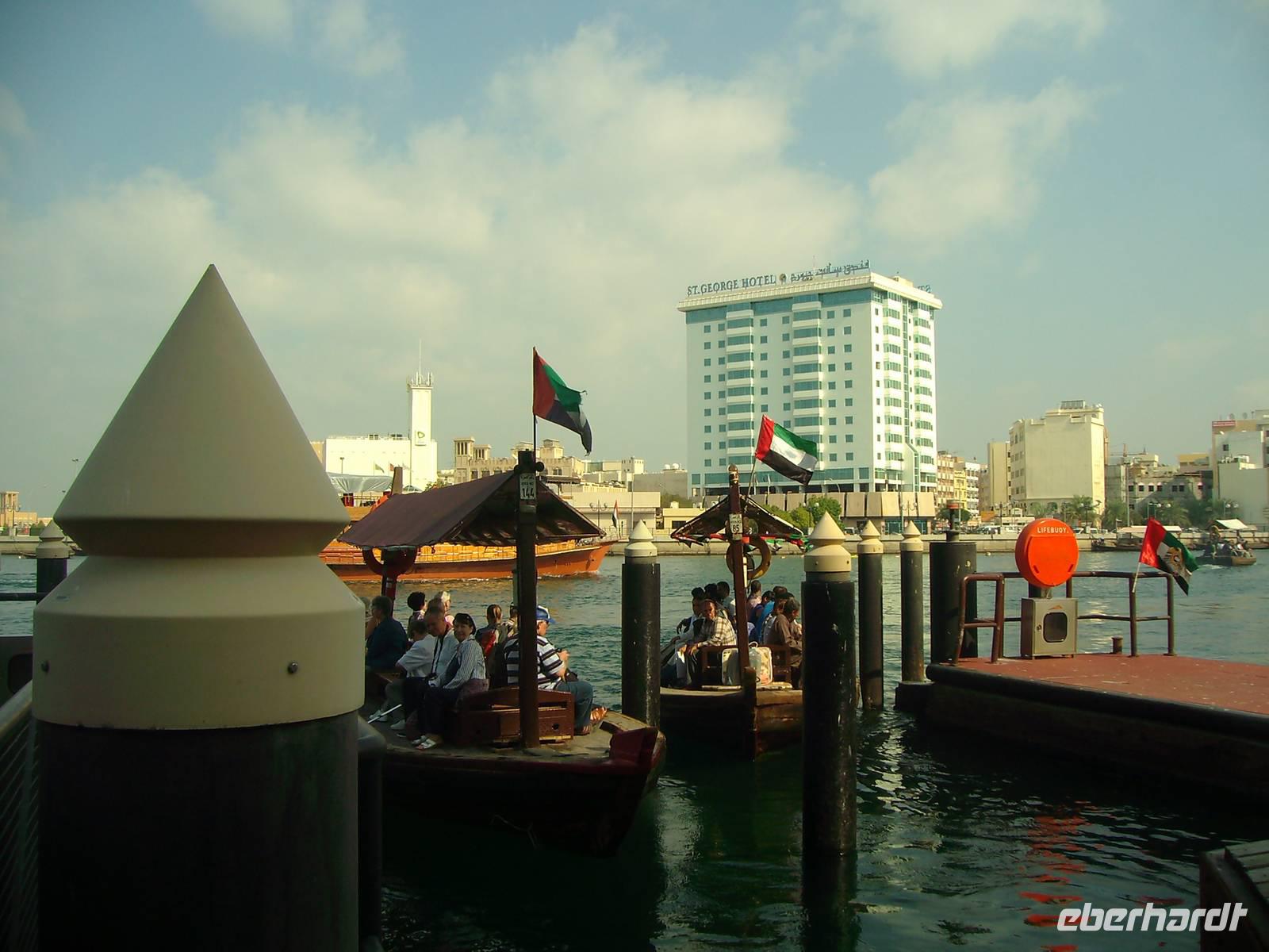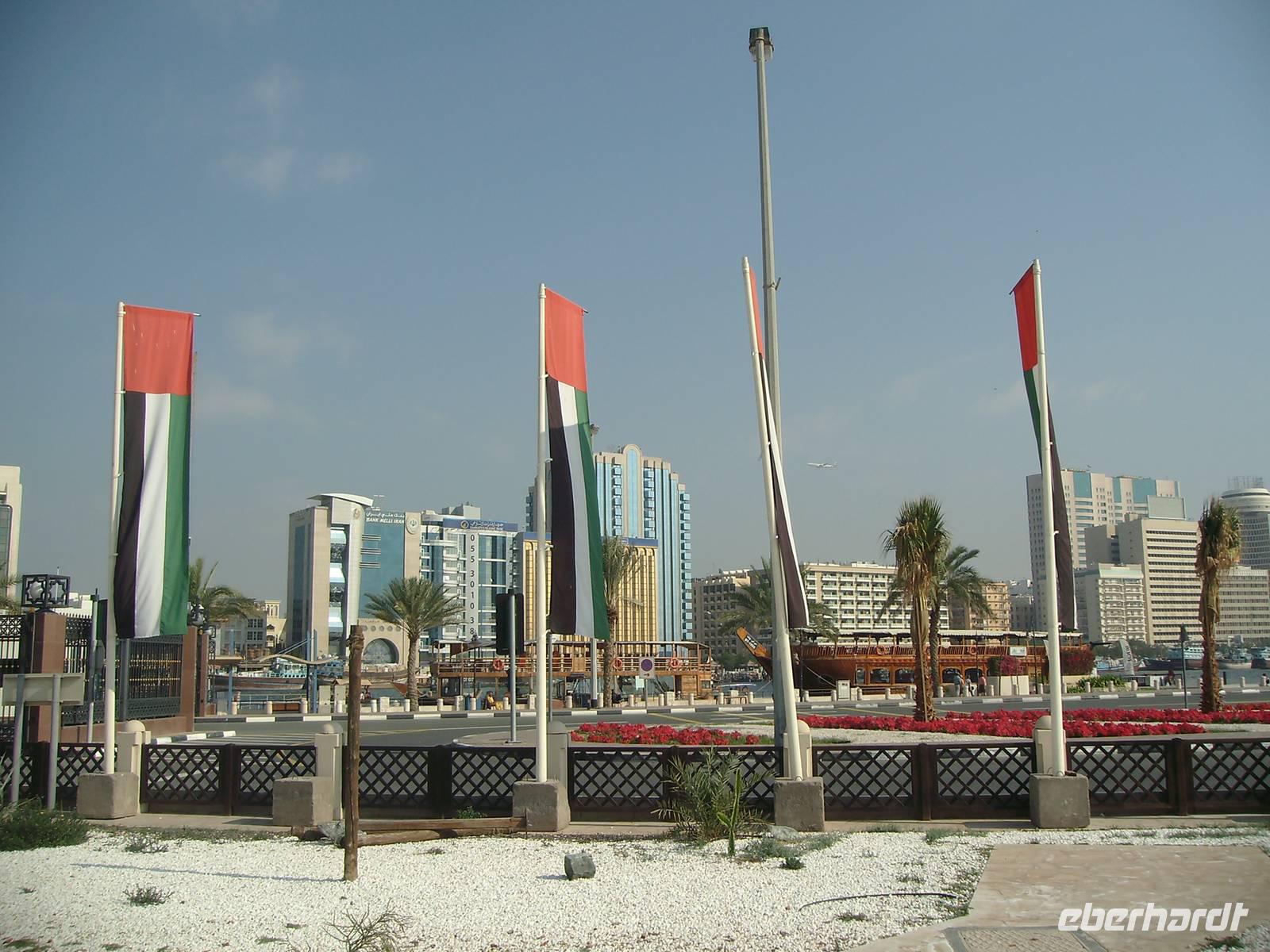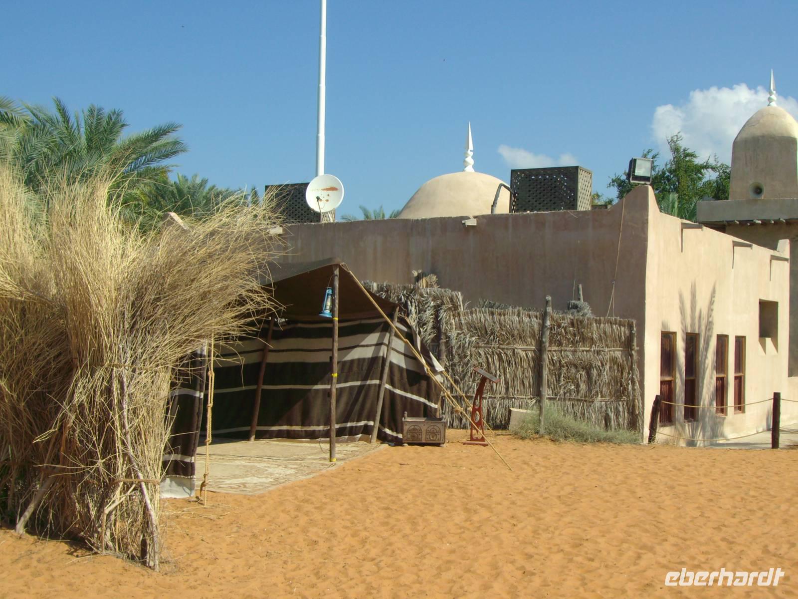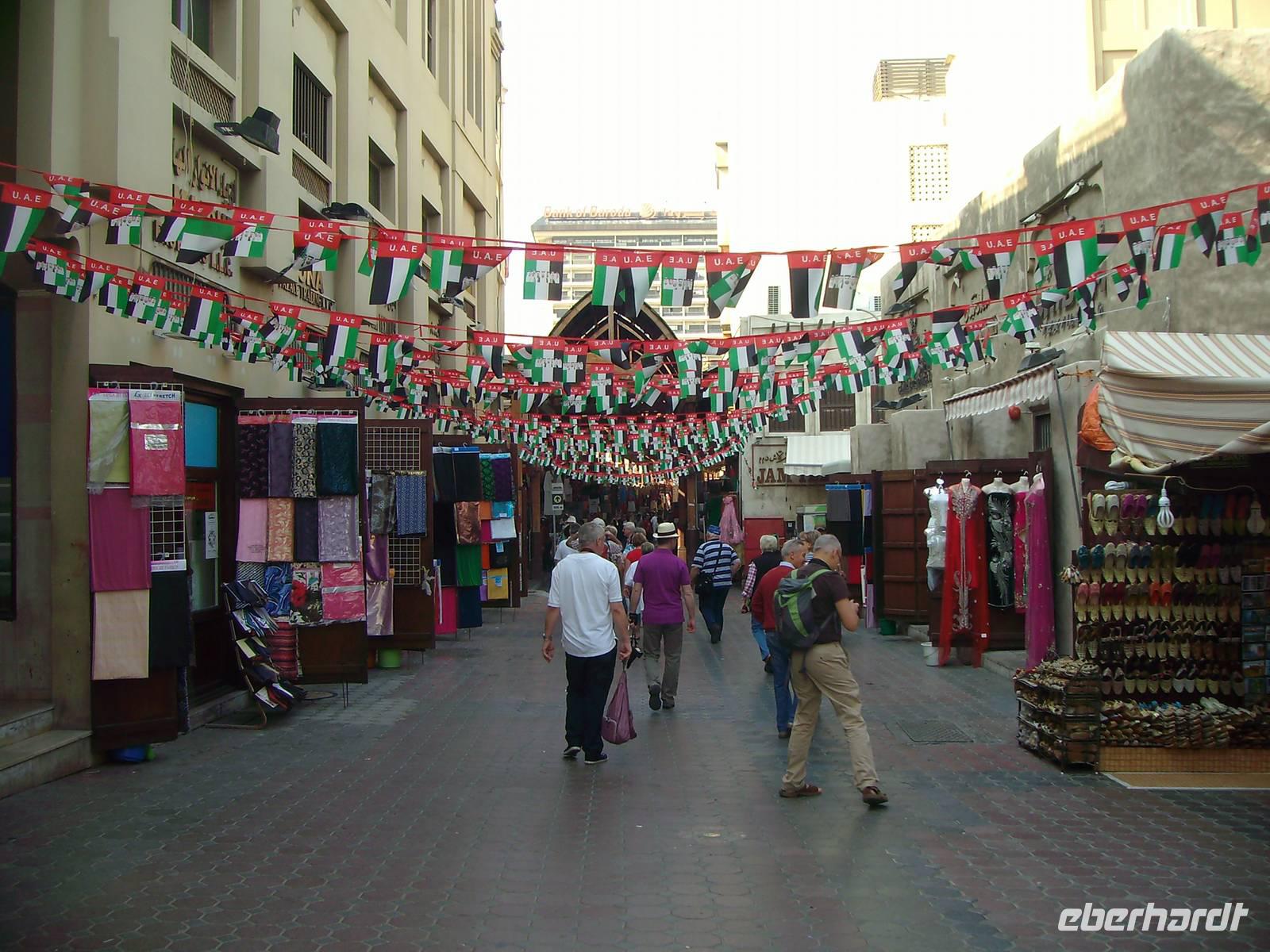 Nach einem reichhaltigen Frühstück im Hotel spazierten wir ganz gemütlich zum Dubai-Museum. Das Gebäude, in dem das Museum untergebracht ist, ist eines der ältesten Gebäude der Stadt und neben dem Museum selbst eine Sehenswürdigkeit. Nahe dem Creek auf der Bur Dubai-Seite befindet sich das Al-Fahidi-Fort, das 1799 erbaut und in dem 1970 das Dubai Museum eröffnet wurde. Das Museum zeigt wie das Leben in Dubai vor dem Ölboom ursprünglich aussah. Die Ausstellungsstücke reichen von Kunsthandwerk über Ausgrabungsfunde sowie Boote, Waffen und Ausrüstungen für Perlentaucher. Anschließend besuchten wir, außerhalb unseres eigentlichen Programms, eines der ältesten Stadtviertel Dubais. Das sogenannte Bastakia Viertel, historisches Zentrum von Dubai und nach dem Jahr 2000 komplett restauriert, vermittelte uns stimmungsvolle Eindrücke aus vergangenen Zeiten. Alte Häuser, deren Windtürme zum Teil noch vollständig erhalten sind, haben hier den "Bauboom" überlebt. Beim Spaziergang durch die verwinkelten und malerischen Gassen (Sikkas) kann man übrigens auch einige leer stehende Häuser innerhalb des Viertels besuchen. Weiter führte uns unser Spaziergang über den traditionellen Old-Souk, wo es eine große Auswahl an Stoffen, Kleidern, Gewändern und Haushaltsgeräten gibt. Schließlich erreichten wir den Dubai Creek, einen ca. 11 Kilometer langer Wasserarm, auf welchem immer geschäftiges Treiben herrscht und beide Stadthälften - das historische Bur Dubai und das insgesamt moderne Deira - zusammenhält. Wir wollten von Bur Dubai nach Deira und nahmen uns hier eine Abra, ein hiesiges Wassertaxi, für die Überfahrt. Was für Venedig die Gondel, ist für Dubai nämlich die Abra! Zugegeben, der Vergleich hinkt etwas, aber auch Dubai ist ohne die Abra nicht denkbar. Die Abra ist ein Wassertaxi für bis zu 20 Personen und wirkt vielleicht auf den ersten Blick für einen Urlauber nicht immer vertrauenswürdig. Das täuscht aber, denn für jede Abra gelten strenge Sicherheits-Vorschriften - es gibt Schwimmwesten, Rettungsbojen, Erste-Hilfe-Kästen und Feuerlöscher! Der „Kapitän" sitzt meist auf einem alten Autositz in der Mitte des Bootsrumpfes vor seinem Lenkrad, durch das er geschickt mit einem undurchschaubaren Geflecht von Seilen und Rollen das hölzerne Ruder steuert. Leider ist die Überfahrt ein Vergnügen von nur wenigen Minuten, begleitet von Rempeleien der Boote, wenn zu viele gleichzeitig an- oder ablegen. Keine Angst, das gehört ganz einfach zu einer Abra-Fahrt dazu! Auf der anderen Seite des Dubai Creeks und somit in Deira angekommen, ging es gleich zu einem weiteren traditionellen Markt, dem farbenprächtigen Gewürz- Spice Souk. Er ist mit seinen duftenden Gewürzen ein absolutes Muss, denn einen solchen Markt wird man in Europa so nicht ein zweites Mal finden! Hier duftet es überall sehr verführerisch und allerlei Gewürze werden aus offenen Säcken verkauft. Immer wieder wird Dubai auch als "Glitzerwelt" beschrieben. Zwar glitzert es überall, aber das einzig wahre Glitzern kann man nur im Gold-Souk erleben, den wir nunmehr besuchten. Zu Recht hat dieser Souk auch den Beinamen "City of Gold" bekommen, denn alles, was man hier sieht, ist pures Gold, und zwar in solchen Mengen, dass der Besucher des Souks regelrecht davon erschlagen wird. Gegen Mittag waren wir vorerst mit ersten interessanten Eindrücken im Hotel zurück, um uns auf das nächste Highlight der Reise, die Wüstensafari einzustimmen.