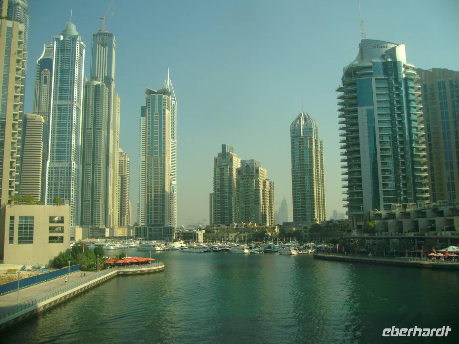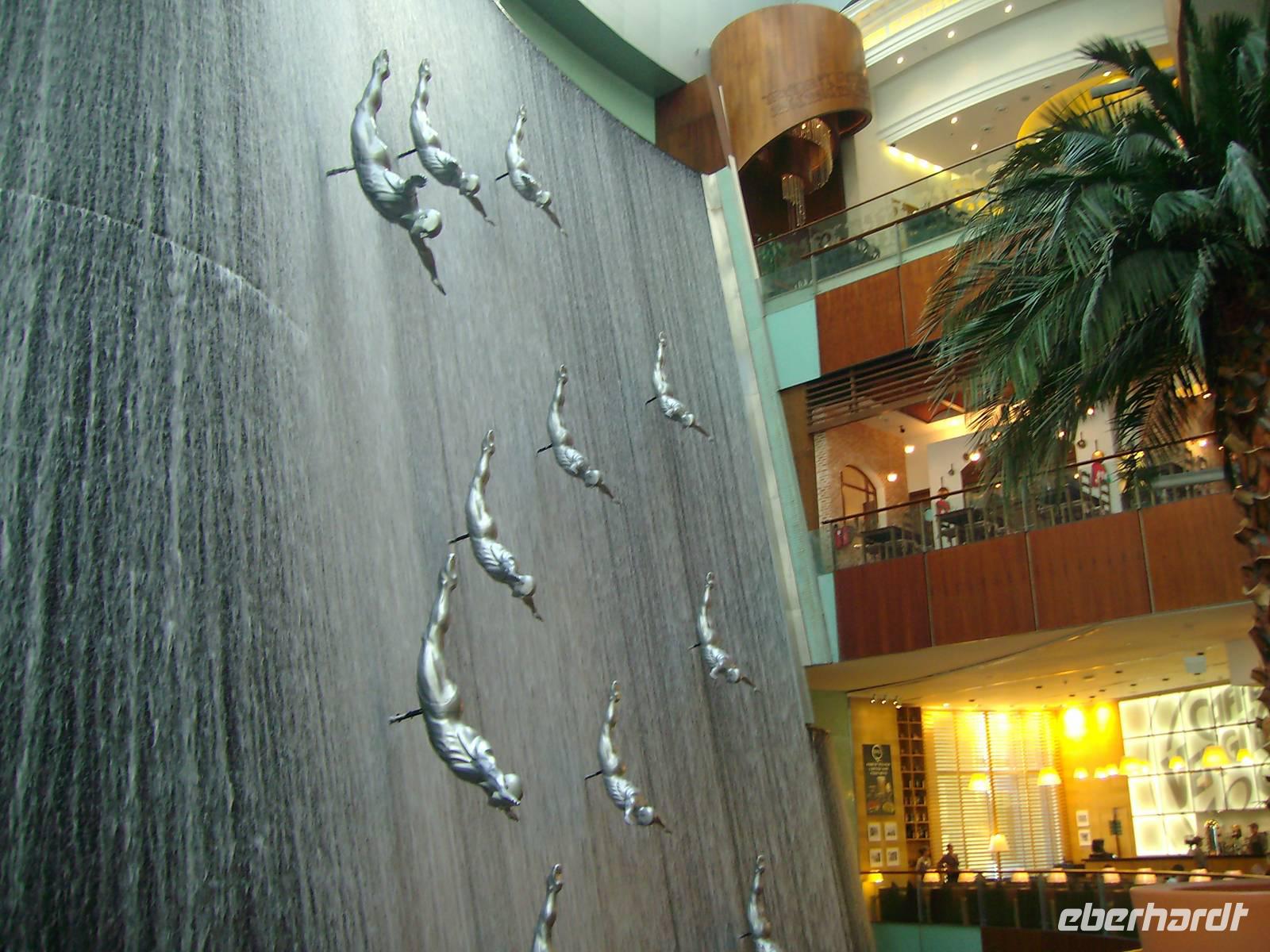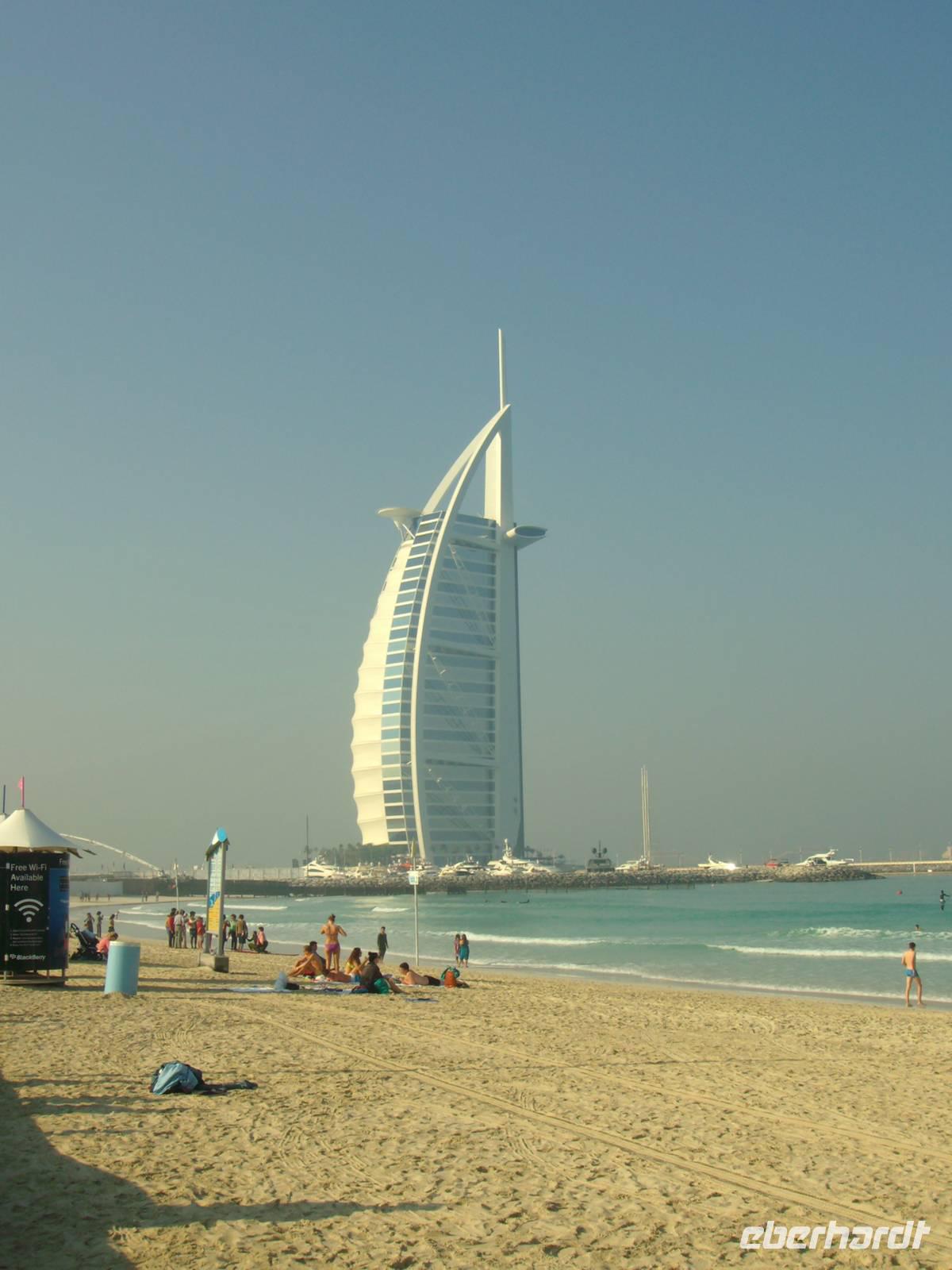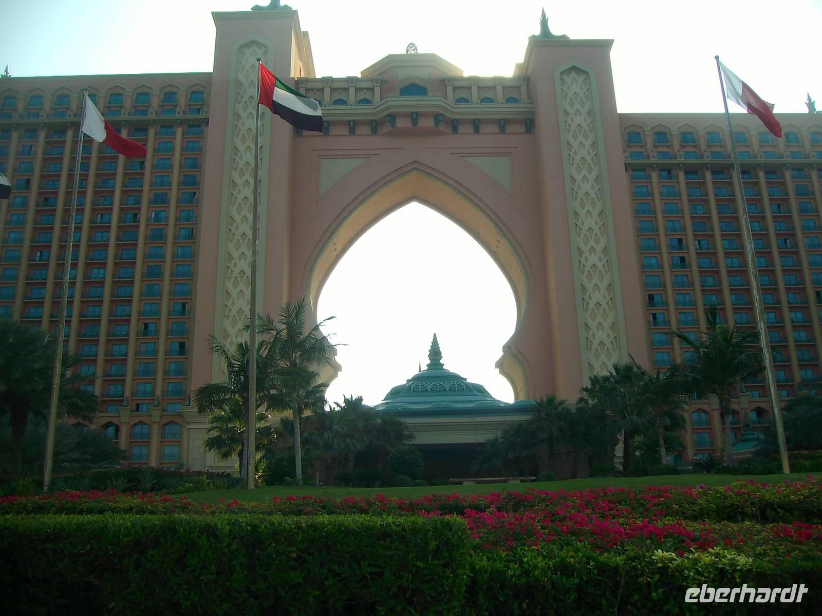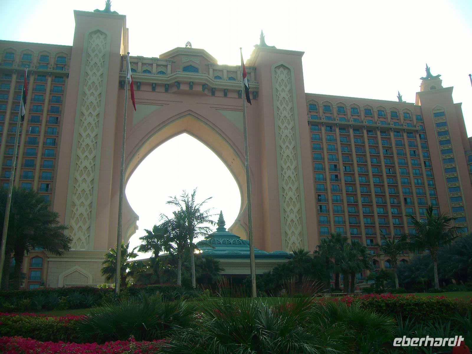 Heute erwartete uns eine Stadtrundfahrt durch das moderne Dubai. Vorbei an der Jumeirah Moschee gelangten wir zum berühmten Hotel "Burj al Arab", das mit seiner segelförmigen Silhouette ein Symbol des modernen Dubai ist. Ein Fotostopp am dortigen herrlichen Sandstrand und wenig später erreichten wir bereits die Palmeninsel - sogar im Weltraum soll sie zu erkennen sein! The Palm Jumeirah - das ist den Visionen von Scheich Mohammed Bin Rashid Al Maktoum zu verdanken, der die Idee hatte, die künstliche Palmeninsel vor Jumeirah in Dubai in ihrer beeindruckenden Form anlegen zu lassen. Ganze sieben Jahre (2001-2008) dauerte das 1,5 Milliarden US-Dollar teure Bauprojekt an, das heute zu den Highlights in Dubai gehört. Warum nicht direkt im Wasser, an der Küste, dachten sich die Investoren. Gesagt, getan. The Palm Jumeirah, die künstliche Palmeninsel, erstreckt sich über eine Fläche von 560 Hektar. Die Insel wurde in Form einer Palme angelegt, den Stamm, der eine Länge von 4 km aufweist, 17 Palmwedel und einen Halbmond. Die künstliche Palmeninsel bietet alles für einen anspruchsvollen Urlaub: Luxushotels, Villen, Appartements, Shoppingzentren, Freizeiteinrichtungen, Spa´s und Wellness-Center sowie Restaurants und Nachtclubs - man kommt aus dem Staunen einfach nicht mehr heraus! Zu den Highlights der künstlichen Palmeninsel zählt der renommierte Hotelkomplex "Atlantis The Palm", welcher direkt auf dem Sichelmond thront - auch hier legten wir übrigens einen Fotostopp ein. Entlang der Dubai Marina, einer neu entstandenen Wohngegend, begaben wir uns weiter zur Mall of the Emirates. Die Mall of the Emirates ist ganz einfach gigantisch und einfach ein Knüller! Man findet hier den Cinestar-Kinokomplex, ein riesiges Spielautomaten- und Vergnügungszentrum mit Bowlingbahnen, und natürlich unzählige Geschäfte. Des Weiteren wartet hier eine absolute Attraktion auf - "Ski Dubai", wo man als Besucher zwischen Skifahren, Snowboarden, Rutschen oder Schneeballschlachten im Snow Park wählen kann - einfach unglaublich, aber dennoch wahr! Das nächste Einkaufszentrum der Superlative erwartete uns nun - die Dubai Mall, welche alles bietet, was das Shopping-Herz begehrt. Auch wenn man nicht einkaufen will, gibt es reichlich zu bestaunen. Es ist schon gigantisch, was es dort alles zu finden, zu sehen und zu bestaunen gibt: einen großen Wasserfall, Wasserspiele und eine Eislaufbahn, um nur drei Sachen zu nennen.