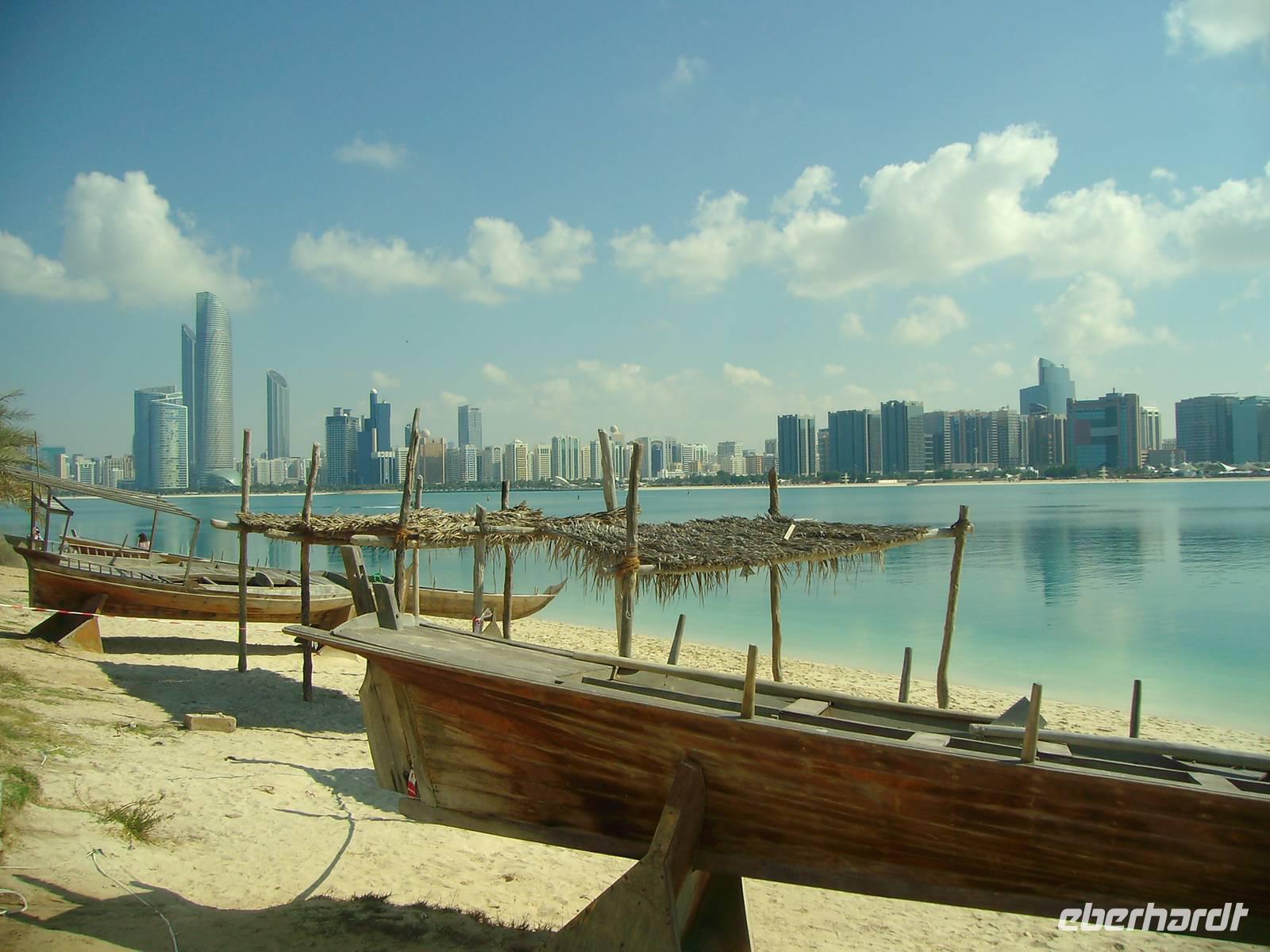 Unsere bestens vertraute örtliche Reiseleiterin Anja (wir kannten sie ja bereits von Dubai!) ließ uns gleich am Morgen erst einmal etwas warten, aber letztendlich waren wir froh, dass sie uns nicht vergessen hatte! Eine Überraschung hatte sie auch dabei, denn gleich zu Beginn unserer Stadtrundfahrt sagte sie uns, dass wir zu allererst die Formel1-Strecke auf Yas Island besuchen werden - das stand eigentlich nicht auf unserem Programm, aber wir freuten uns sehr darüber! In Abu Dhabi sprudelt nämlich nicht nur Öl, sondern auch Geld und deshalb entstand dort auch die vielleicht beeindruckendste Rennstrecke der Welt! Wir bekamen zumindest einen Eindruck des technisch erstklassig ausgestatteten Yas Marina Circuit - Ausrichter des jährlichen Großen Preises von Abu Dhabi. Am Herzstück der Strecke liegt das Yas Viceroy Abu Dhabi, ein ikonisches Fünf-Sterne Hotel - das einzige weltweit, das eine Formel 1-Strecke überspannt und auf atemberaubende Weise halb auf dem Land und halb auf dem Wasser erbaut ist! Weiter ging es anschließend mit etwas Stau zu einem der zweifelsohne eindrucksvollsten Bauwerke der Vereinigten Arabischen Emirate, zur Sheikh Zayed Moschee. Aus weißem Marmor gefertigt und verziert mit floralen Mustern, goldenen Akzenten sowie Perlmutt, strahlt die Sheikh Zayed Moschee einen ehrwürdigen Charme aus. Vor allem auf die kleinen Details legten die Erbauer viel Wert. Beeindruckend ist der kunstvoll handgearbeitete Teppich aus dem Iran, der eine Fläche von circa 5.600 Quadratmetern bedeckt. Die prachtvollen, mit Swarowski-Kristallen besetzten Kronleuchter aus Messing und Edelstahl wurden in Deutschland gefertigt. Die Moschee trägt den Namen des Gründers und ersten Präsidenten der VAE Scheich Zayid Bin Sultan Al Nahyan, dessen Grabstätte sich auf dem Gelände befindet. Von ihr dürfen keine Fotos und Filmaufnahmen gemacht werden. Es war sein letzter Wille, dass in Abu Dhabi eine wahrhaft große Moschee entstehen sollte und dazu hinterließ er etwa 350 Mio. Euro aus seinem Privatvermögen - das ist ihm gelungen, es ist eine der schönsten Moscheen weltweit! Tief beeindruckt setzten wir unsere Stadtrundfahrt fort - wir erreichten über einen Teil der Corniche, der berühmten und sehr gepflegten Strandpromenade, das Heritage Village. Dieser Nachbau eines traditionellen Oasendorfs gewährte uns einen interessanten Einblick in die Vergangenheit des Emirats. Traditionelle Aspekte der Lebensweise in der Wüste werden ansprechend im offenen Museum zur Schau gestellt, darunter ein Lagerfeuer mit Kaffeekanne, ein Zelt aus Ziegenhaar und ein Faladsch-Bewässerungssystem. Es gibt viele Workshops, in denen Handwerker traditionelles Handwerk demonstrieren, wie z. B. Metallschmiedearbeiten und Töpferei, während Frauen weben und spinnen. Die Handwerker freuen sich, ihre Fähigkeiten zu demonstrieren, und geben gelegentlich die Möglichkeit, es selbst zu probieren.
