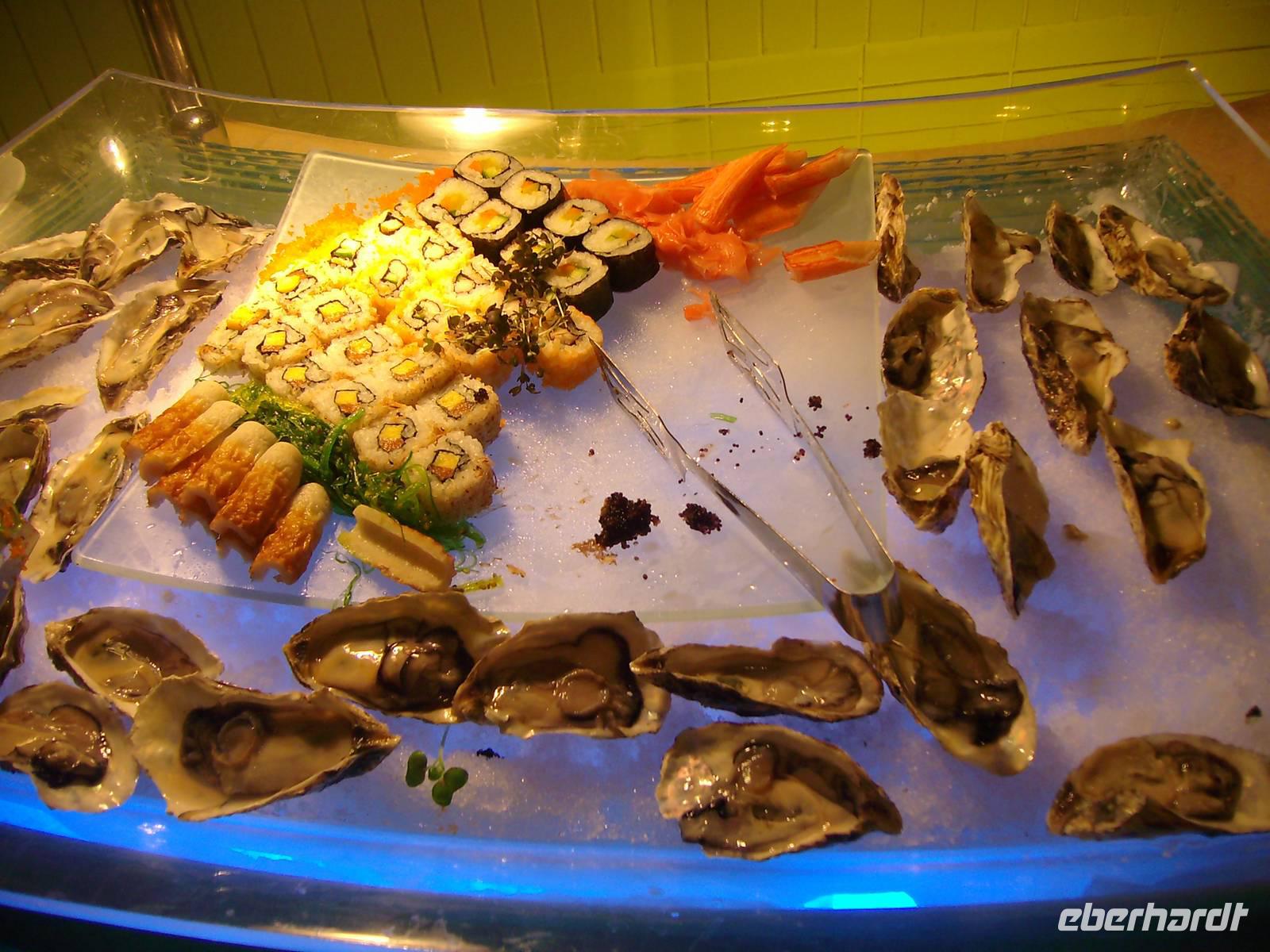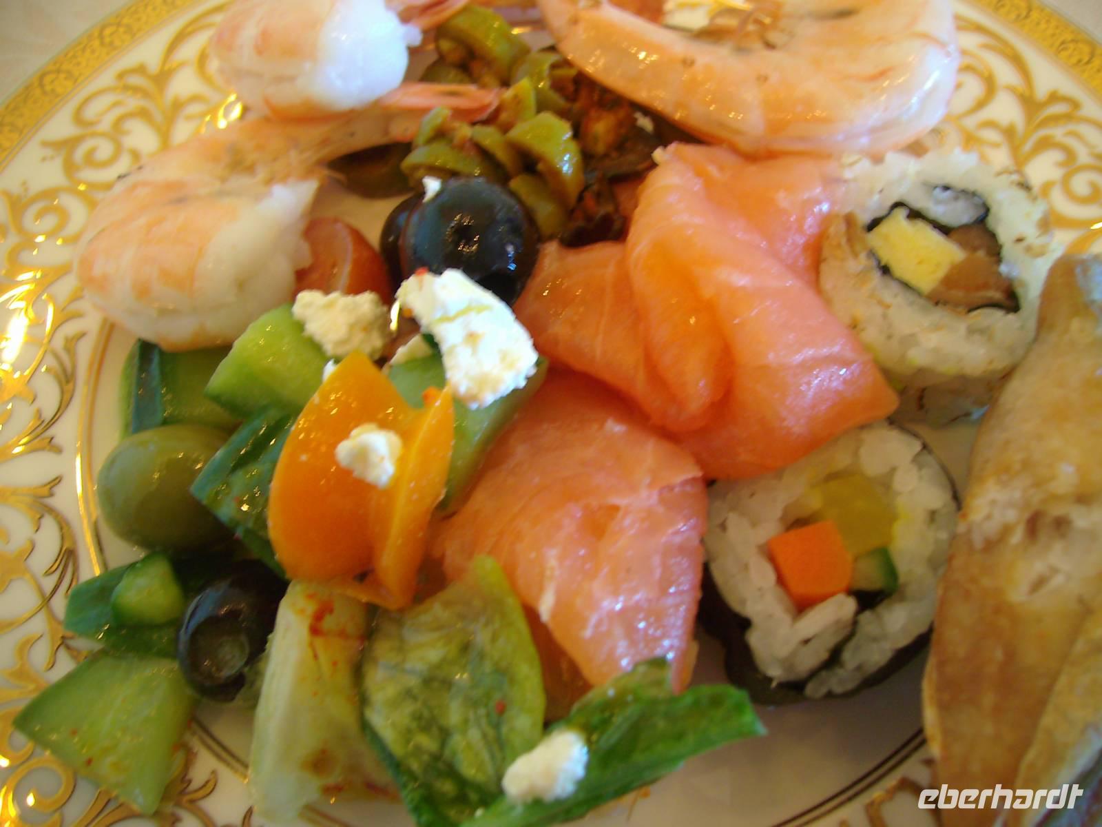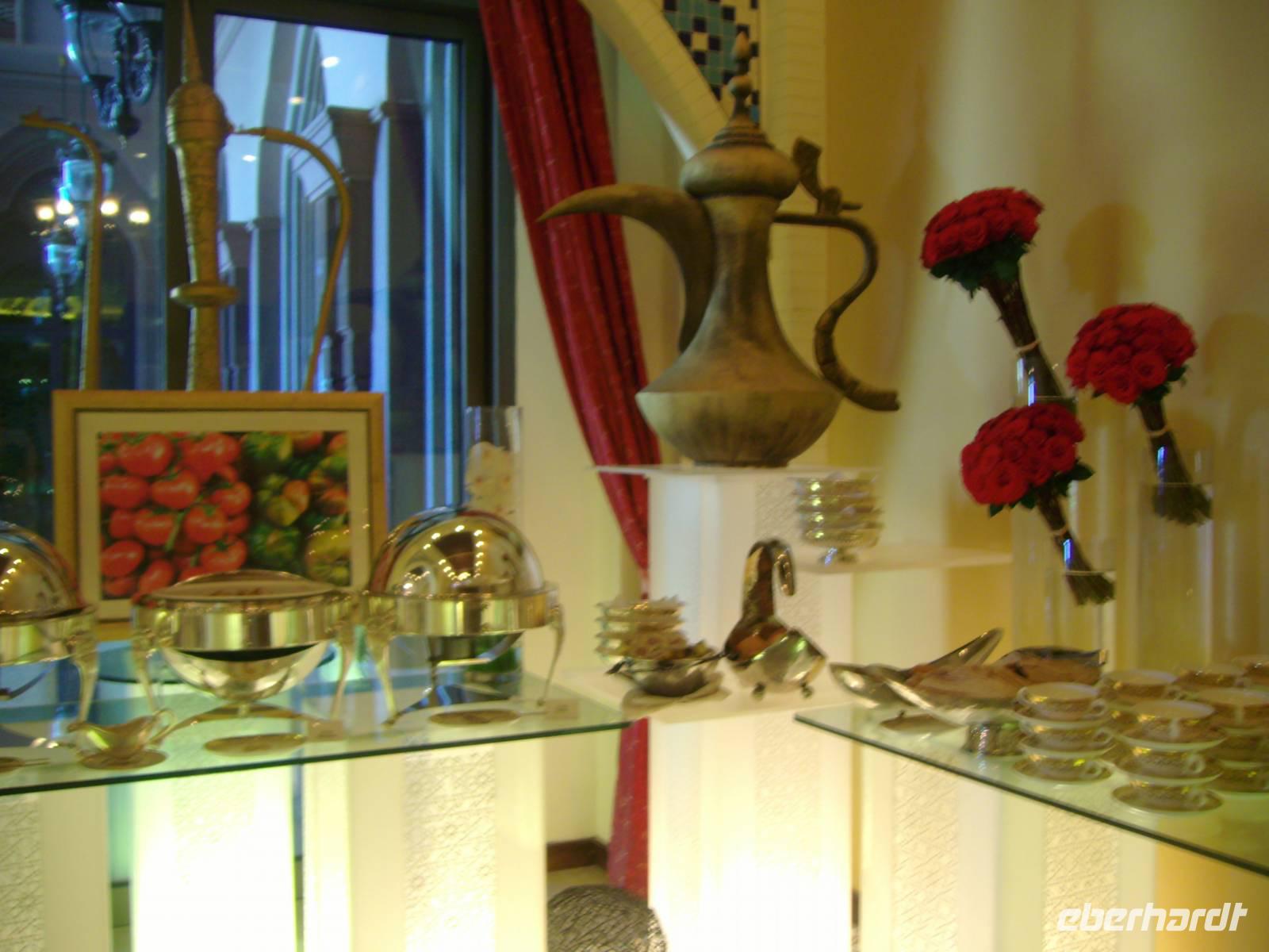 So langsam knurrten unsere Mägen - es war bereits Mittagszeit und etwas ganz Besonderes erwartete uns nun. Wir hatten einen Termin im exklusiven Luxushotel "Emirates Palace", welches am westlichen Ende der Corniche und direkt am weißen Sandstrand gelegen ist - genau hier nahmen wir nämlich heute unser Mittagessen ein! Es gab einfach alles was das Herz begehrt und hier ging ganz sicher niemand hungrig wieder raus - was immer man probierte, einfach nur lecker ...! Gut gestärkt konnten wir uns hier noch etwas umschauen und danach ging es bereits zum Hafen zurück, denn die AIDAdiva verließ bereits am Nachmittag den hiesigen Hafen - weitere 460 Kilometer auf See sollten bewältigt werden!