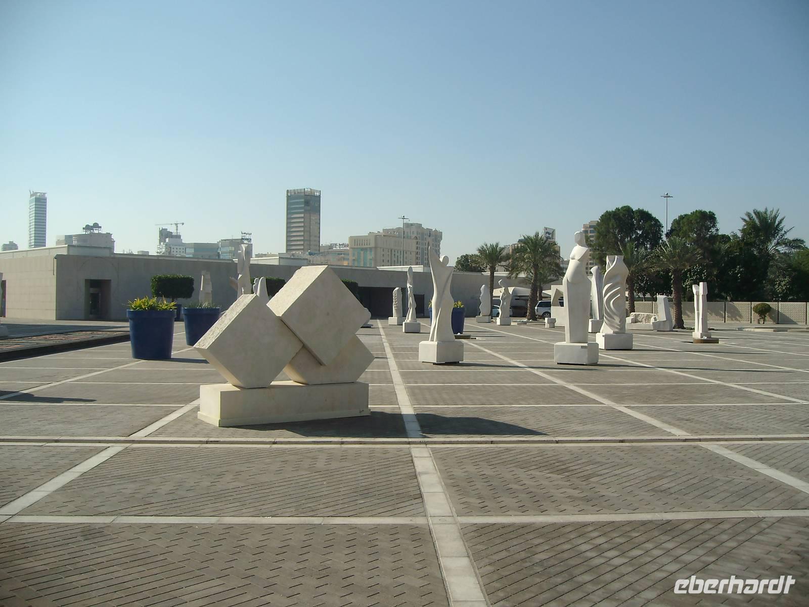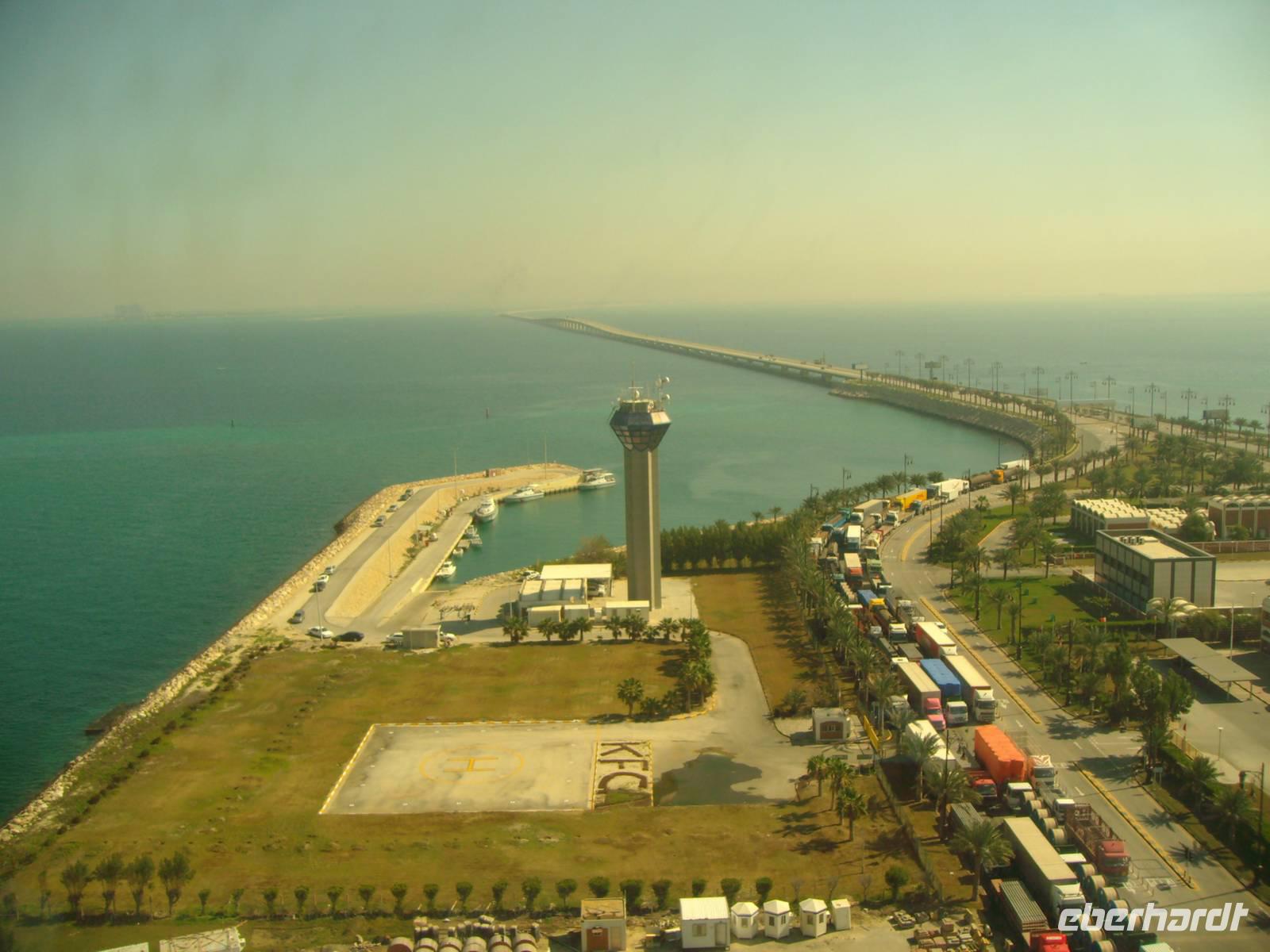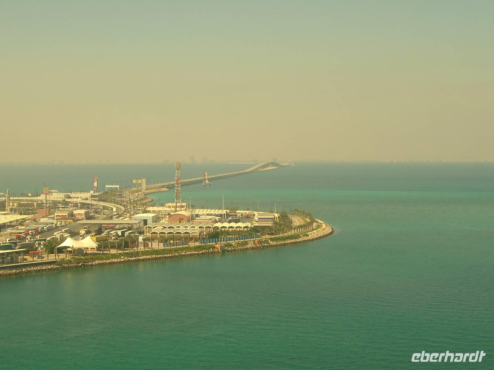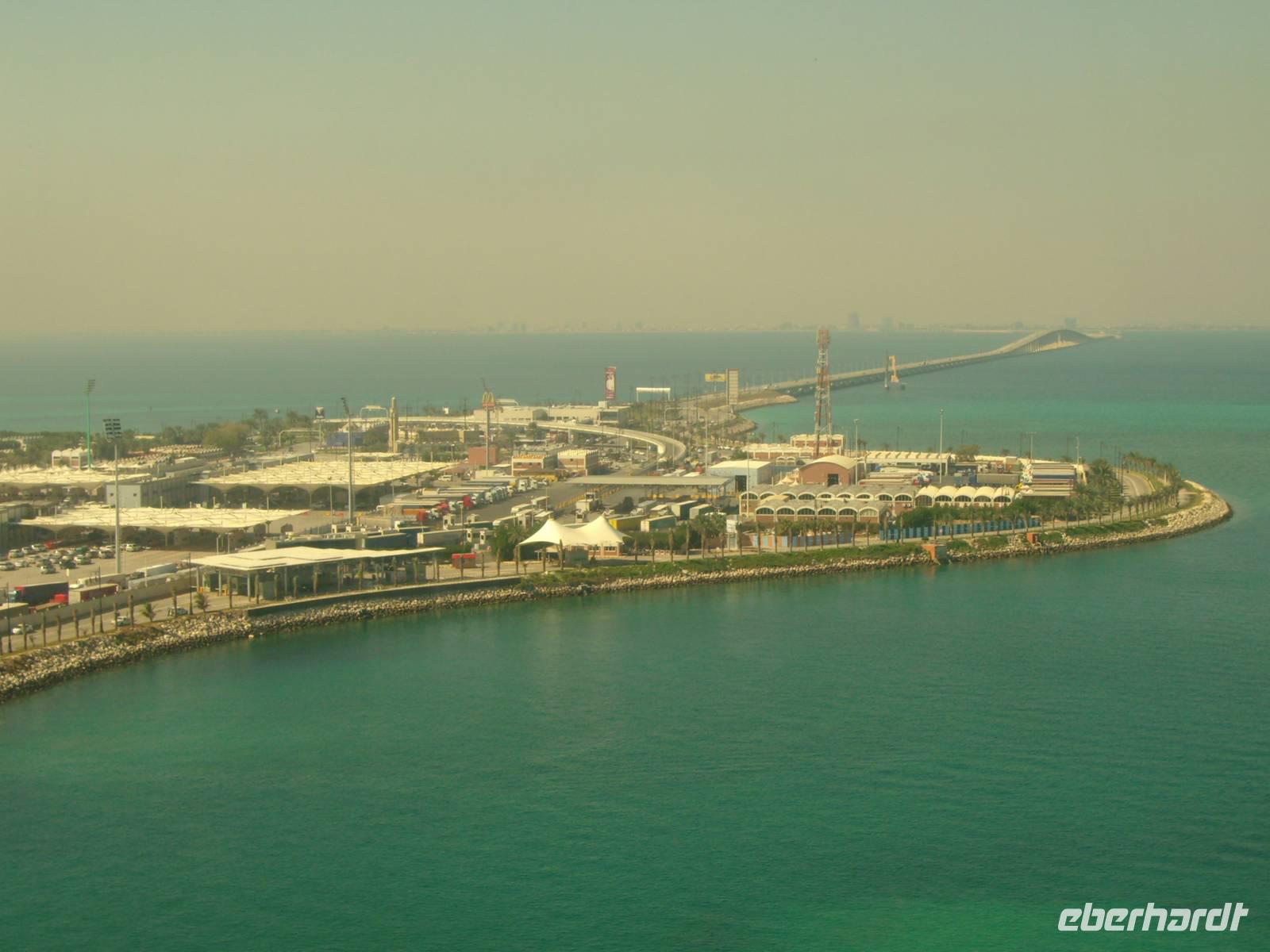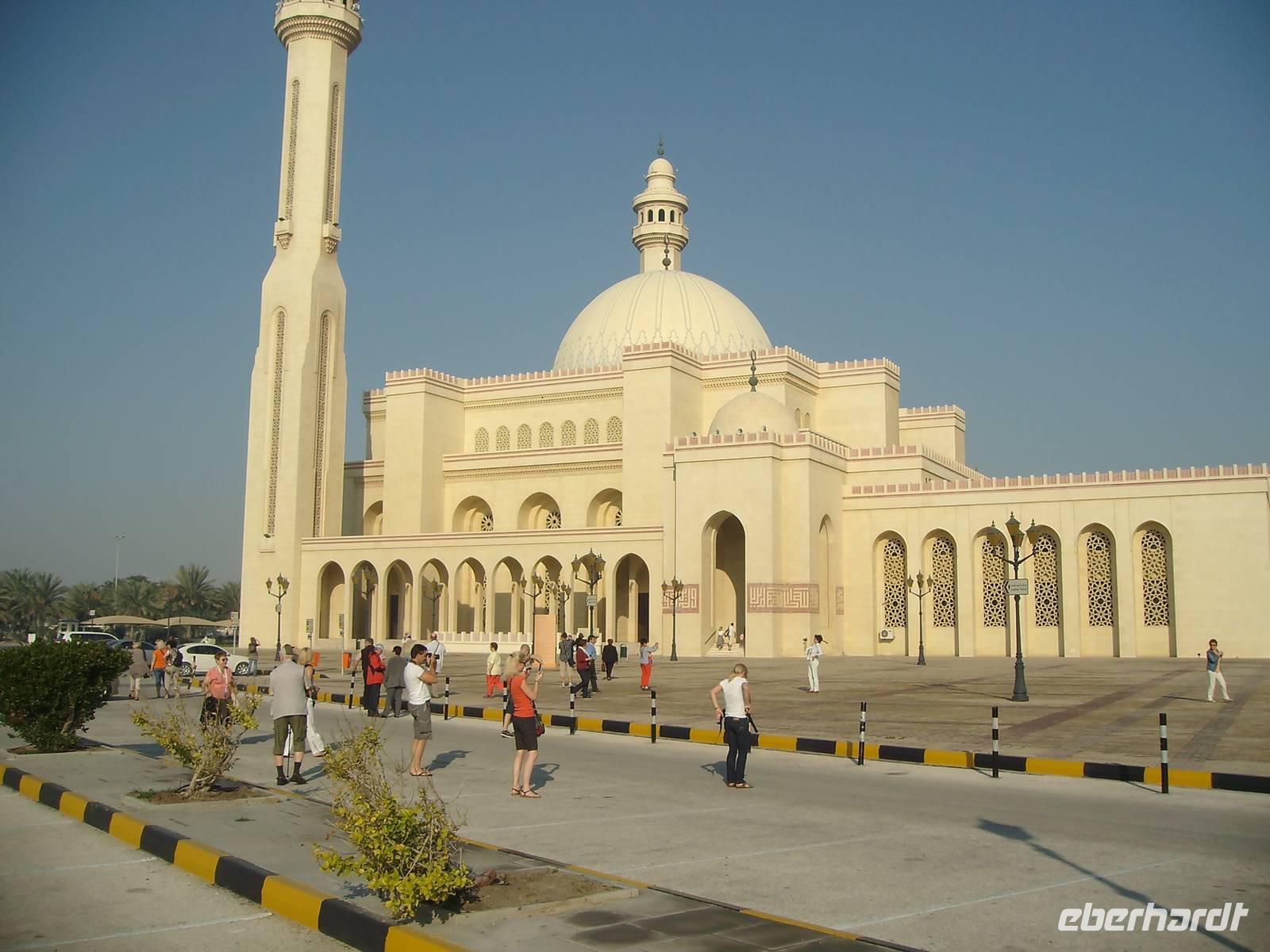Eine ruhige Nacht auf See, der Himmel leicht bewölkt und um die 21 Grad - was wollten wir mehr...! Im Hafen von Bahrain liefen wir bereits gegen 8 Uhr ein - hier wurden wir auch direkt von unserer örtlichen Reiseleiterin Rehna (einer gebürtigen Inderin!) in Empfang genommen und unser Eberhardt-Ausflug konnte beginnen! Einen ersten Fotostopp legten wir an der 1986 erbauten Al-Fateh-Moschee in Manama, dem größten Gotteshaus Bahrains, ein. Anschließend besichtigten wir gemeinsam einen Teil des Nationalmuseums im Nordosten Manamas, welches eines der bedeutendsten der Golfregion ist und die ganze tausendjährige wechselvolle Geschichte und die Kultur Bahrains aufbereitet - sehr faszinierend und anschaulich! Leider blieb uns nicht so viel Zeit, das ganze Museum zu besuchen - dazu bräuchten wir mit Sicherheit einen ganzen Tag - aber immerhin hatten wir einen Eindruck dieses umfangreichen Museums! Mit dem Bus fuhren wir zum Bahrain Fort, einer wichtigen archäologischen Stätte auf Bahrain. Der Ruinenhügel war wohl über lange Zeit der Hauptort der Insel und mittlerweile steht diese gesamte Festungsanlage sogar in die UNESCO-Welterbe-Liste. Wir spazierten gemütlich die Festung hinauf und oben angekommen, durften wir einen herrlicher Blick auf das alte Bahrain mit dem unteren Teil der Festungsanlage, der modernen Skyline der Hauptstadt Manama und dem Blau des Meeres, erleben - eine wirklich tolle Mischung! Wiederum nur eine kurze Fahrt, dann erreichten wir eine Kamelfarm, die der Onkel des Königs von Bahrain betreibt - die Kamele werden hier nur hobbymäßig gezüchtet und nicht für Rennen genutzt. Kamele zählen zu den wertvollsten Tieren im Königreich Bahrain und interessant ist auch, dass wenn einer Frau gesagt wird, dass sie wie ein Kamel aussieht (bei uns in Europa höchst beleidigend!), dieser Satz hier als Kompliment zu bewerten ist - dann ist sie nämlich ganz einfach nur schön! Naja, hier im Orient ist eben alles etwas anders! Der letze Höhepunkt unseres Halbtages-Ausfluges stand jetzt noch an - die Fahrt auf einem Teil des King Fahad Causeway, einer reichlich 25 Kilometer langen Damm- und Brückenverbindung, die Bahrain mit dem Nachbarland Saudi-Arabien verbindet. Das 1986 eröffnete und vollständig von Saudi-Arabien finanzierte Bauwerk ist für Bahrain die einzige Straßenverbindung zum Festland. Eine 66 Hektar große künstliche Insel wurde auf halber Strecke aufgeschüttet. Auf dieser Insel, die jeweils zur Hälfte Saudi-Arabien und Bahrain gehört, verläuft jetzt die einzige Landgrenze des Inselstaates. Dort fuhren wir auf den Aussichtsturm und hatten einen gigantischen Blick auf dieses interessante Bauwerk, in der Ferne waren sogar Hochhäuser auf der saudi-arabischen Seite zu sehen! Für uns war auf der Insel Schluss, denn wir hatten kein Visum für Saudi-Arabien! Pünktlich an Bord der AIDAdiva angekommen, verließen wir am Nachmittag Bahrain, um weitere reichlich 500 Kilometer im Persischen Golf und damit zurück nach Dubai zu absolvieren.