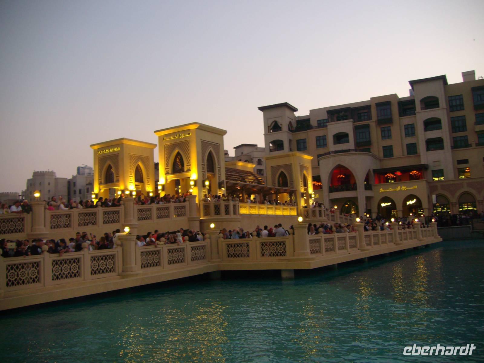 Ein ruhiger letzter Tag an Bord unseres AIDA-Schiffes stand an - auch heute wieder bei Sonnenschein und um die 23 Grad! Wir hörten von Schneefällen in der Heimat, aber das wollte hier eigentlich heute niemand wissen...! Bereits am Vormittag kamen wir an unserem Ausgangshafen in Dubai an. Einen Teil unserer Gäste traf ich am Nachmittag und wir fuhren mit dem Taxi nochmals zur Dubai Mall - Taxi fahren ist hier übrigens extrem preiswert und somit war das in jeder Hinsicht eine tolle Sache! Letzte Einkäufe wurden getätigt und wir erlebten nochmals unterhalb des Burj Khalifas die größte Wasserfontäne der Welt auf dem sogenannten "Lake Burj Dubai", einem künstlich angelegten See. Täglich, gegen 18 Uhr, startet die Wasser- Licht- und Klangshow - im halbstündigen Rhythmus und jeweils für die Dauer eines ausgewählten Musiktitels. Auf 275 Meter Länge präsentiert sich die Dubai-Fontäne und die einzelnen Fontänen schießen permanent 100 000 Liter Wasser in die Luft. Die Höhe variiert zwischen 1 Meter und 150 Metern (dies entspricht der Höhe eines 50-stöckigen Hochhauses!!). Das Wasser bewegt sich dabei rhythmisch zur Musik mit ca. 3 - 4 Minuten Länge. Rund 1.000 einzelne Fontänen arbeiten gleichzeitig, begleitet von rund 6.600 Lichtquellen und 50 Farbprojektoren - besonders am Abend ist dies ein tolles Erlebnis und für uns war es der perfekte Abschluss einer gelungenen Reise! Zurück an Bord ließen wir uns ein letztes schmackhaftes Abendessen vom Buffet in einem der zahlreichen Restaurants schmecken!