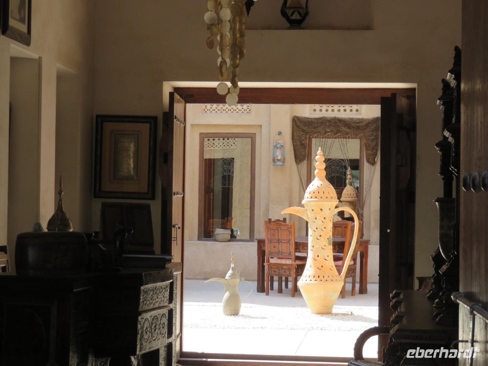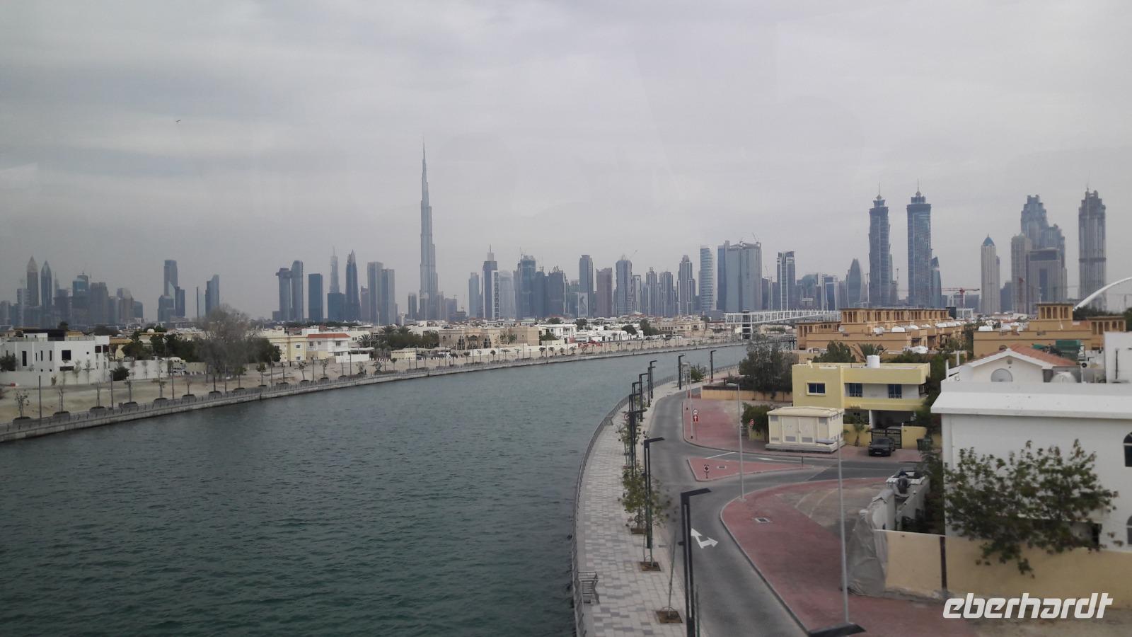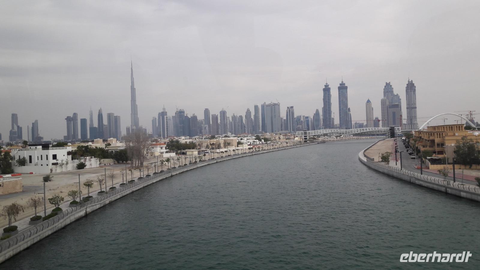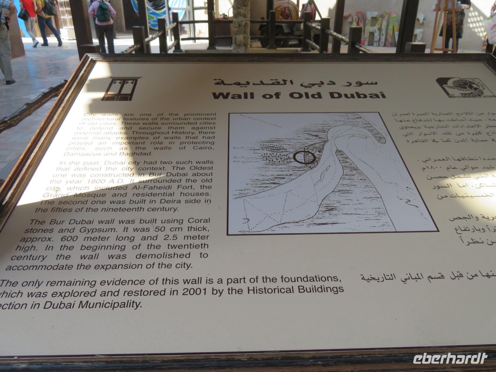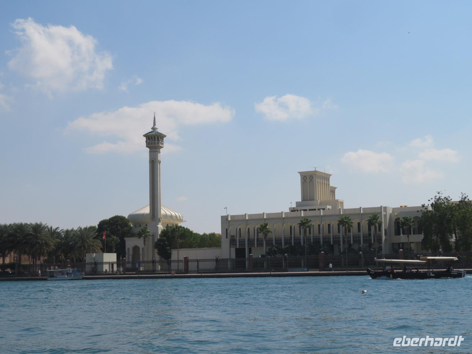 Nach einem gemütlichen Frühstück bummelten wir gemeinsam mit Anja in den historischen Stadtteil Al Fahidi. Um 1800 wurden hier wunderschöne Windturmhäuser von persischen Stoff- und Perlenhändlern erbaut, welche heute restauriert zu besichtigen sind. Hier wurden wir von einem einheimischen „abgefangen" der uns in seinem kleinen Büro zu einem orientalischen Kaffee einlud & uns alles wissenswerte über die bevorstehende „EXPO 2020" erzählte. Über den traditionellen Old-Souk, wo eine große Auswahl von Stoffen, Kleidern und Tüchern feilgeboten werden, erreichten wir den Dubai Creek, einem ca. 11 Kilometer langer Wasserarm, auf welchem immer geschäftiges Boots-Treiben herrscht und beide Stadthälften - das historische Bur Dubai und das eher moderne Deira - verbindet. Wir wollten von Bur Dubai nach Deira und nahmen uns hier eine Abra (Wassertaxi), ein hiesiges traditionelles Holzboot für maximal 20 Personen, zur wenige Minuten dauernden Überfahrt. Was für Venedig die Gondel, ist für Dubai die Abra!