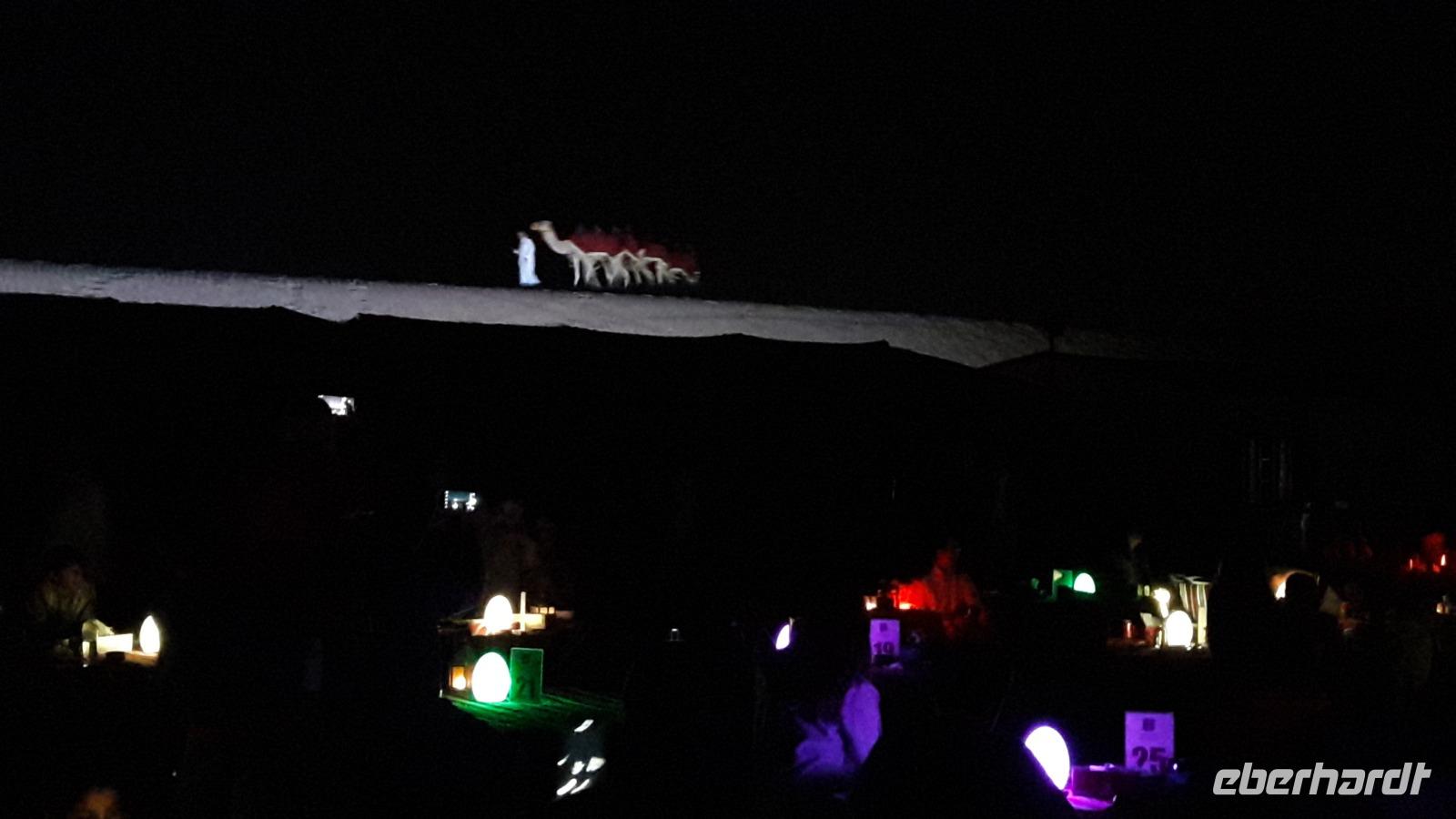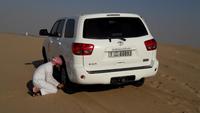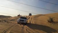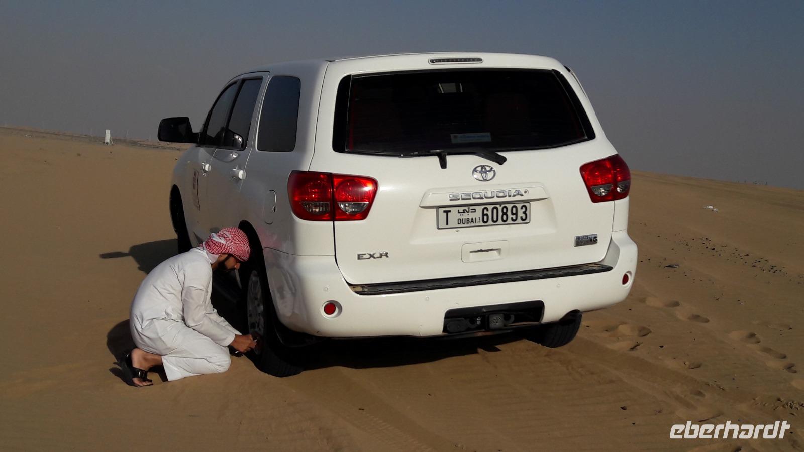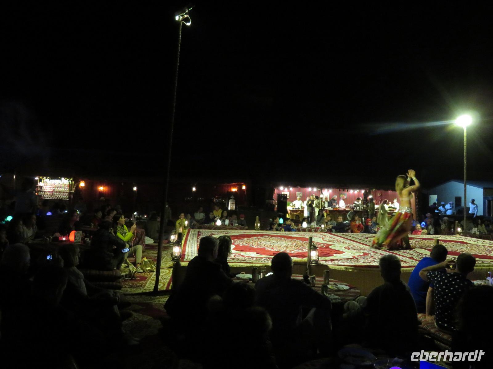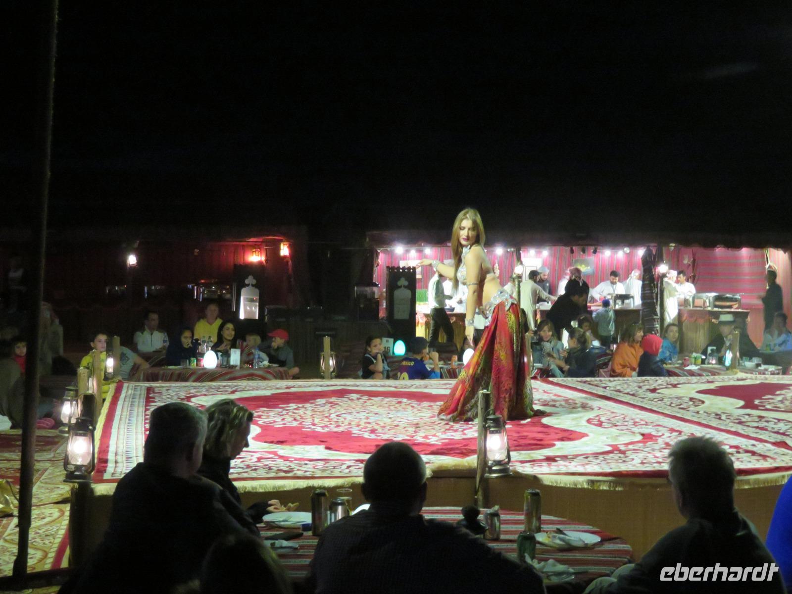 Am Nachmittag holten uns 5 Jeeps vom Hotel ab und nach ca. 45 Minuten Fahrt durch die Stadt standen wir, wortwörtlich, im Wüstensand. Der Reifendruck wird dann auf ein Minimum abgelassen, um ein stecken bleiben der Fahrzeuge im Sand zu vermeiden ... los ging die rasante Fahrt durch die Sanddünen! Dann erreichten wir das Wüstencamp unter freiem Himmel, leider ohne Sterne. Wir erlebten eine Falkner-Show, Henna-Lady's zauberten kleine Kunstwerke auf Hände & Arme, man konnte genüsslich eine Shisha rauchen und das Barbecue schmeckte in dieser Atmosphäre natürlich umso besser! Ein Darwish-Tänzer und eine naja weniger orientalische Bauchtänzerin rundeten den schönen ab. Mit den Jeeps ging es dann zurück nach Dubai und ins Hotel.