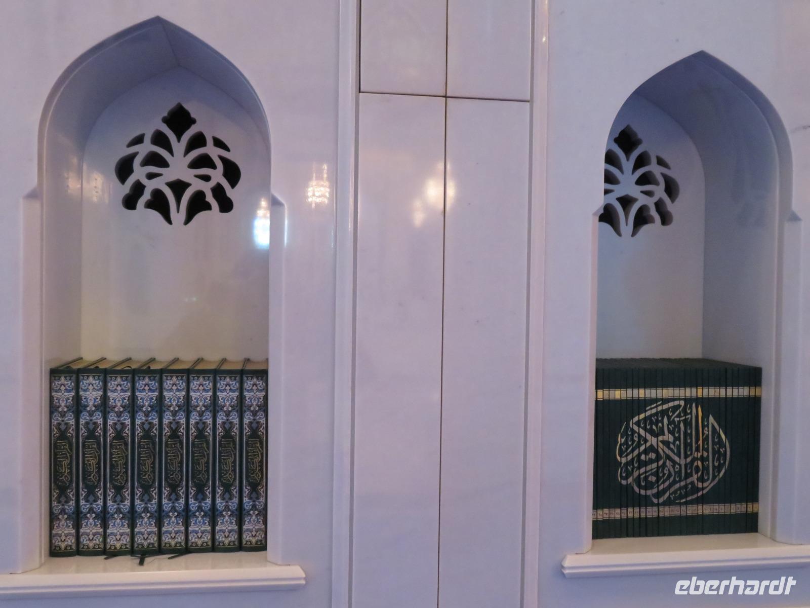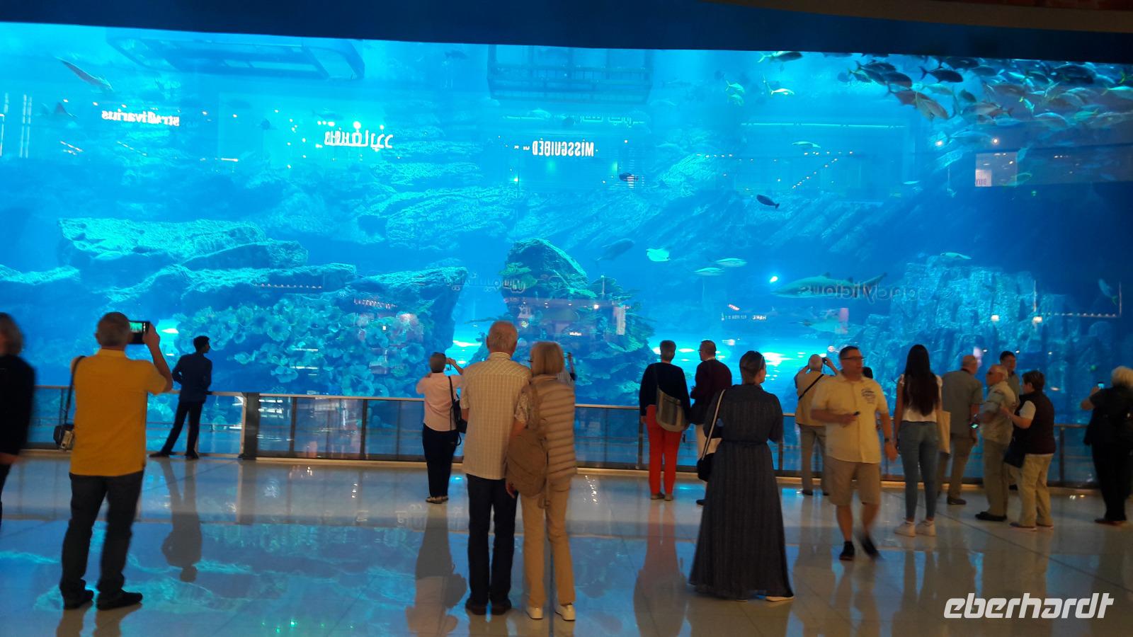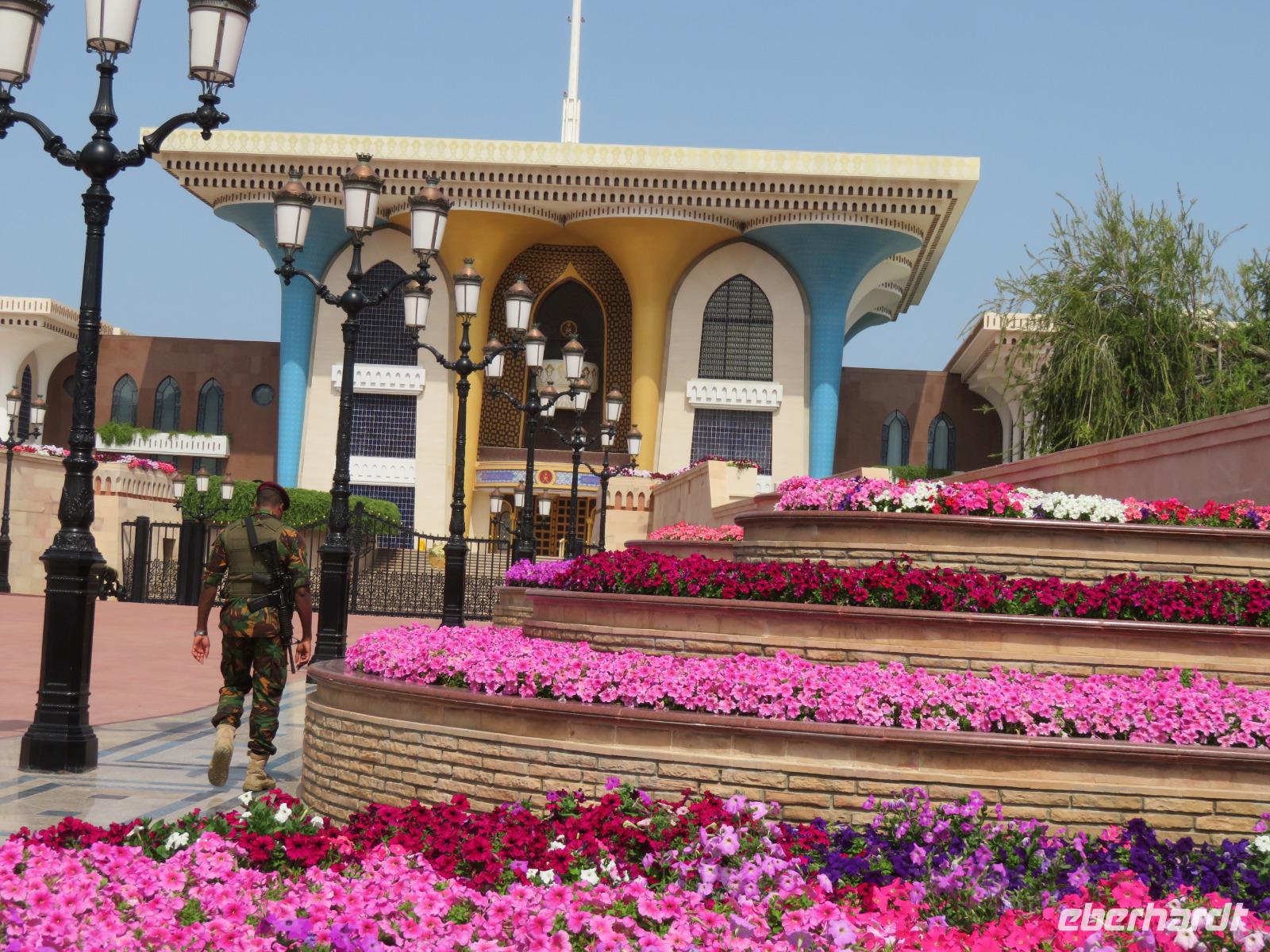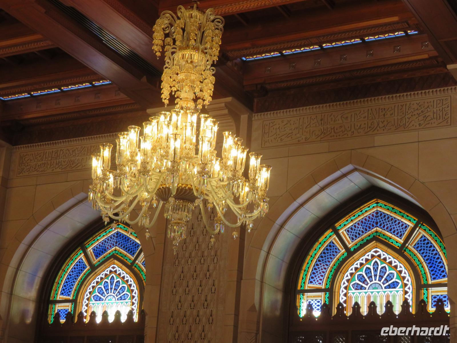 Der Großteil unserer Eberhardt Gruppe hatten für heute den AIDA-Ausflug "Mystisches Muscat" gebucht. Am Morgen erreichten wir das Sultanat Oman bzw. den Hafen der Hauptstadt Muscat bei Sonnenschein und ca. 25 Grad Wärme! Die Stadt liegt in einer geschützten Bucht an der vulkanisch geprägten Küste des Golfs von Oman. Alle Eberhardt'ler saßen gemeinsam im Bus und die Entdeckungstour konnte starten. Nach einer kurzweiligen Fahrt erlebten wir den Besuch einer der wichtigsten Sehenswürdigkeiten im Oman, der Sultan Qaboos Grand Mosque. Die Hauptmoschee gehört zu den hervorragendsten Baudenkmälern im Oman. Als Standort, der im Jahre 2001 eingeweihten Moschee, wurde ein Gebiet an der Hauptstraße zwischen Muscat und Seeb, die Al Qaboos Street, gewählt. Die Moschee besteht aus einer großen Hauptgebetshalle, einer kleineren Frauengebetshalle, fünf Minaretten, zwei großen Bogengängen, einem islamischen Informationszentrum und Institut, sowie einer Bibliothek mit über 20.000 Büchern. Die Moschee bietet Platz für sage und schreibe bis zu 20.000 Gläubigen!